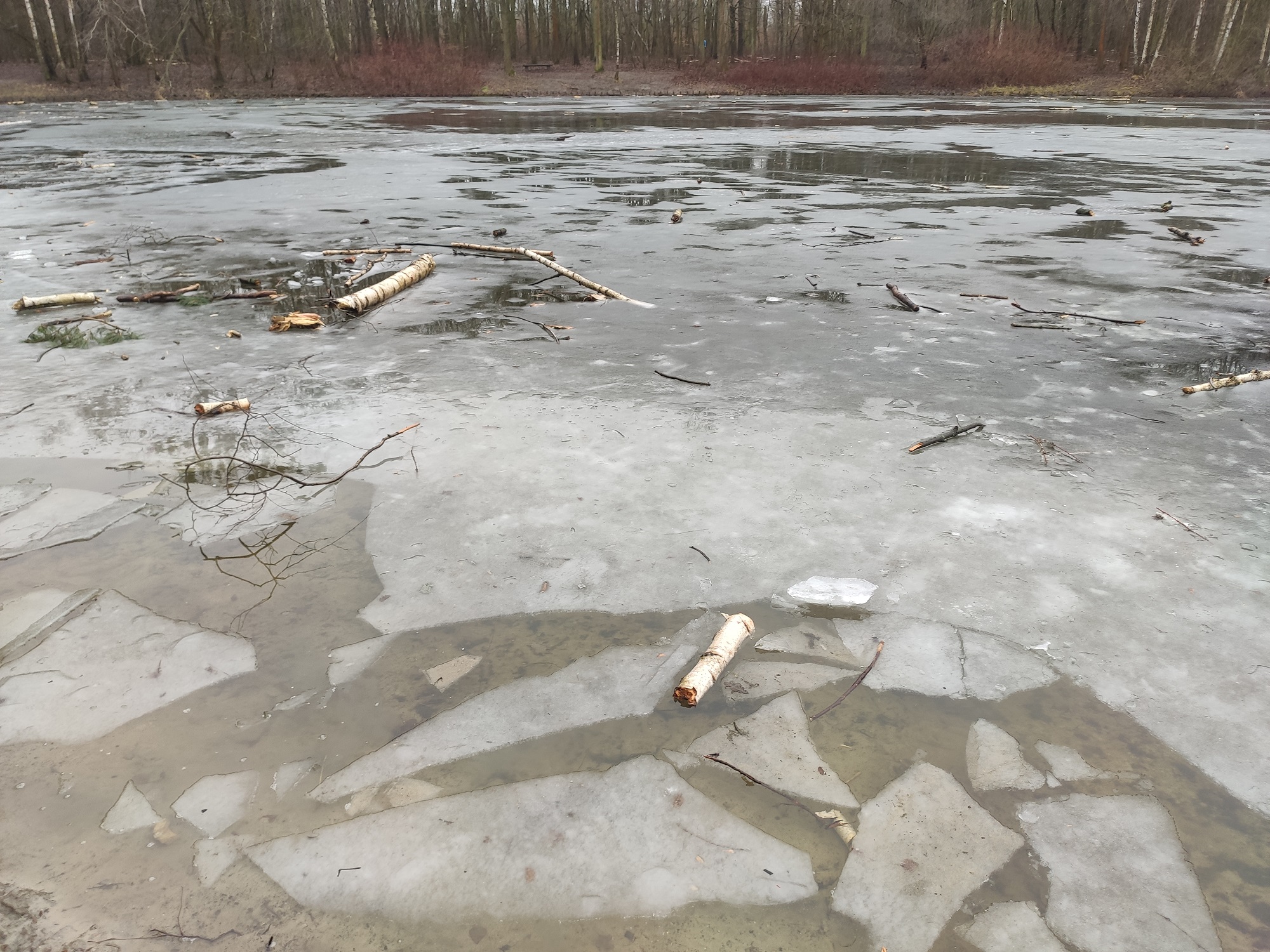 Zgodnie z oczekiwaniami lód na akwenach wciąż się utrzymywał, jego grubość wynosiła w niektórych miejscach nawet 8 cm. W normalnych warunkach taki lód jest w stanie utrzymać człowieka. Niech nas jednak grubość lodu nie zmyli, ponieważ równie ważna jest jego struktura. Roztapiający się lód ma dużo mniejszą wytrzymałość i mimo swojej grubości może się pod nami zapaść w sposób nieoczekiwany.