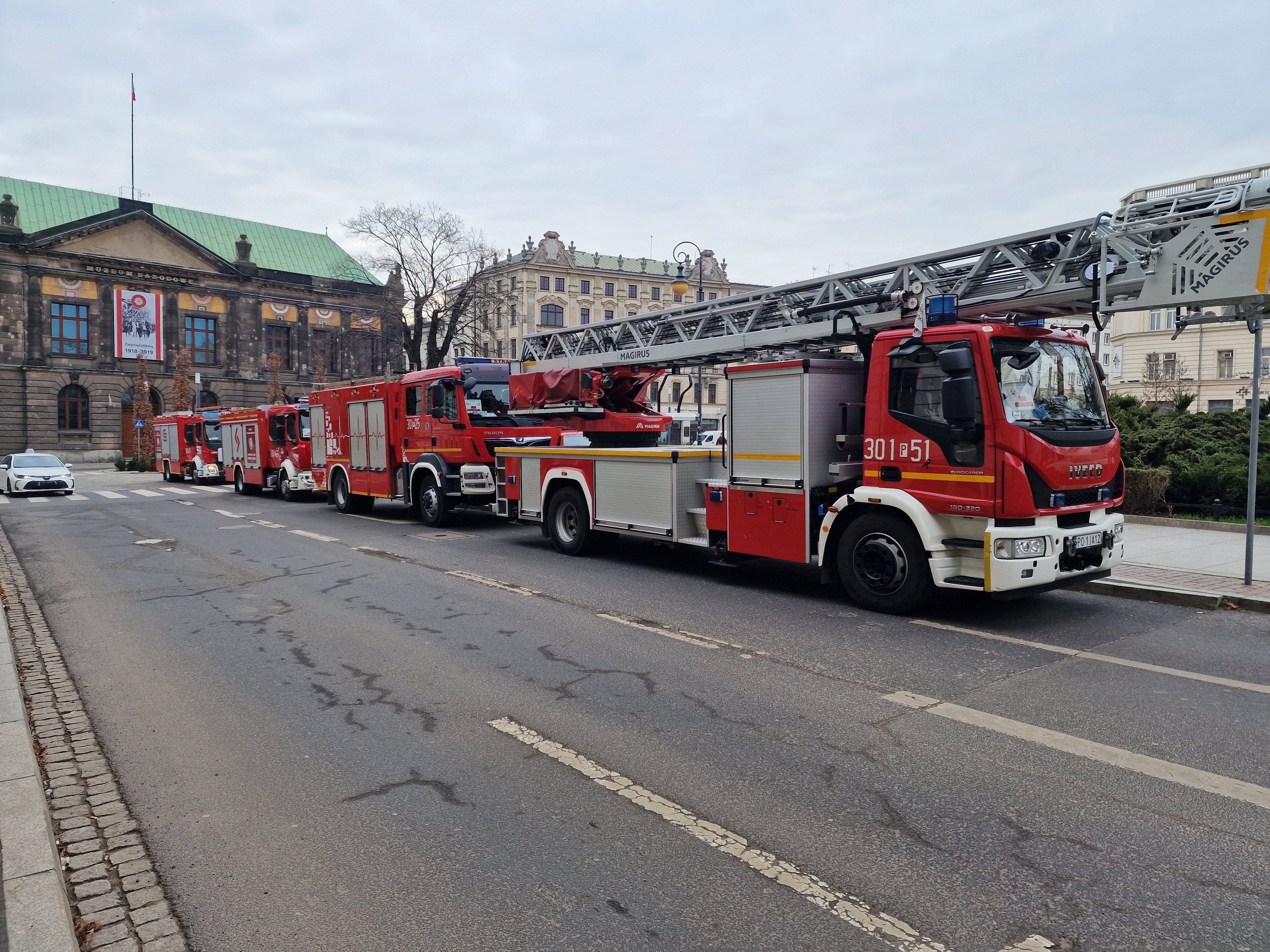 w Poznaniu. W trakcie ćwiczeń strażacy zapoznali się z drogą dojazdową do parkingu, układem pomieszczeń, ilością i rozmieszczeniem dróg ewakuacyjnych w obiekcie, rodzajem