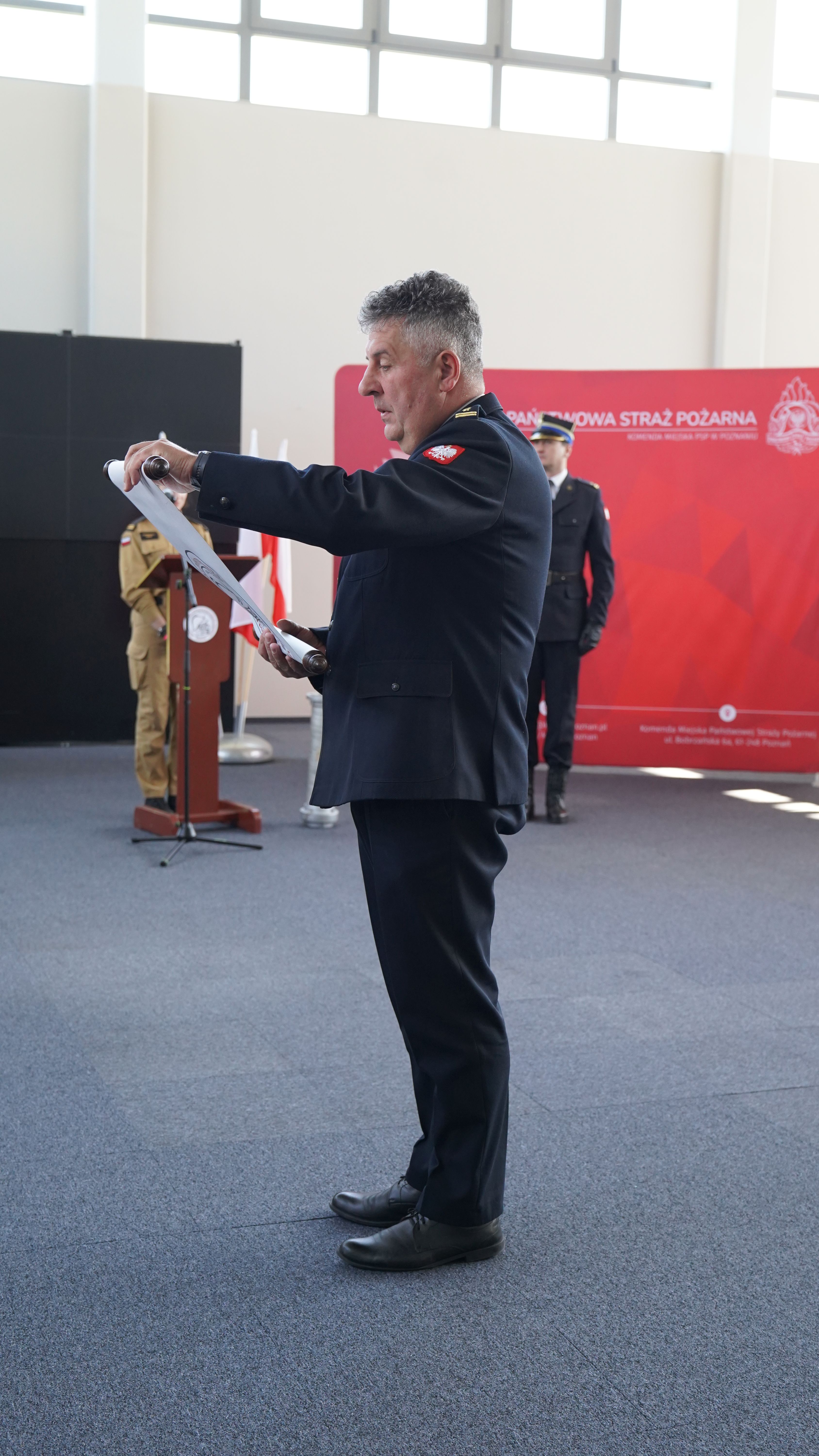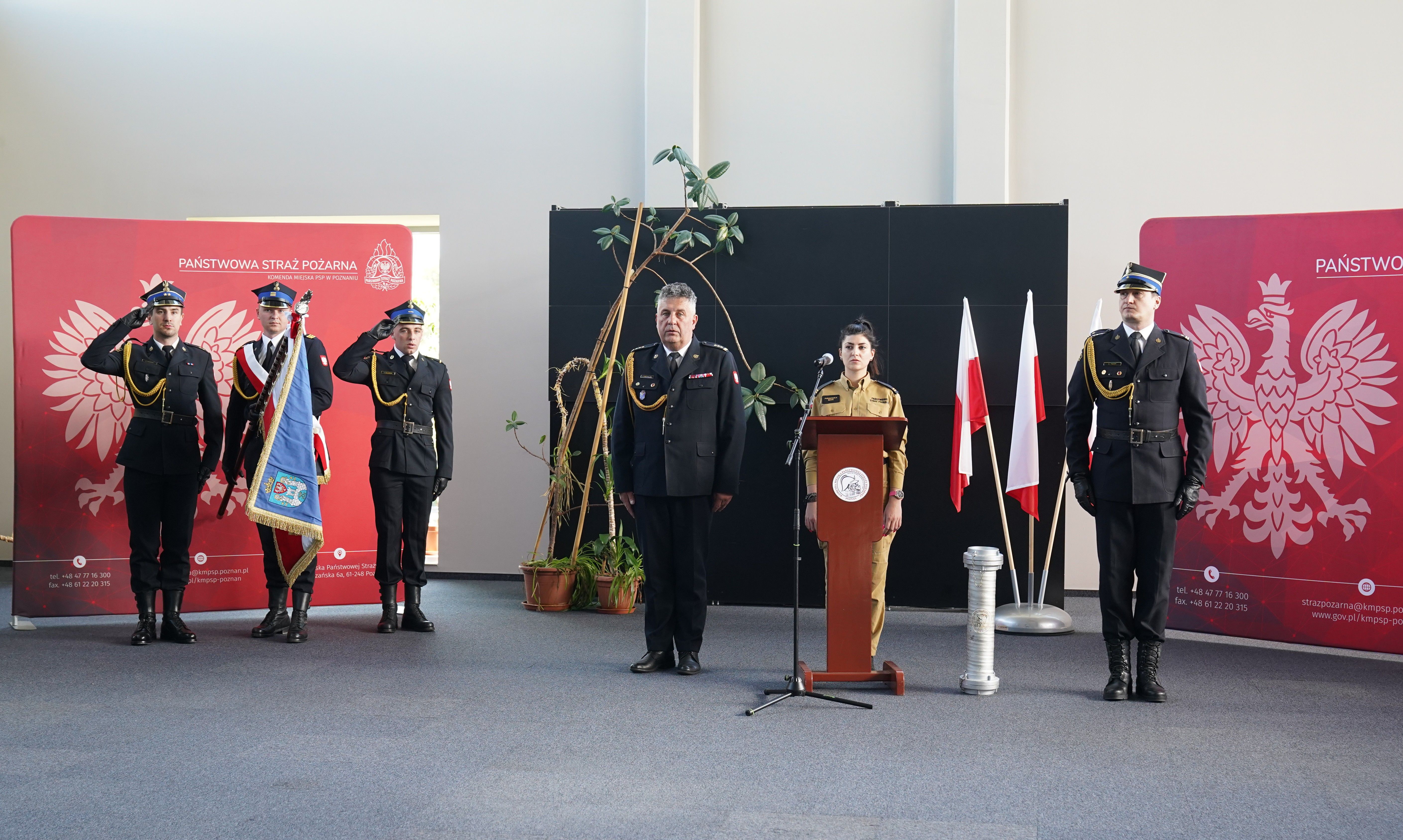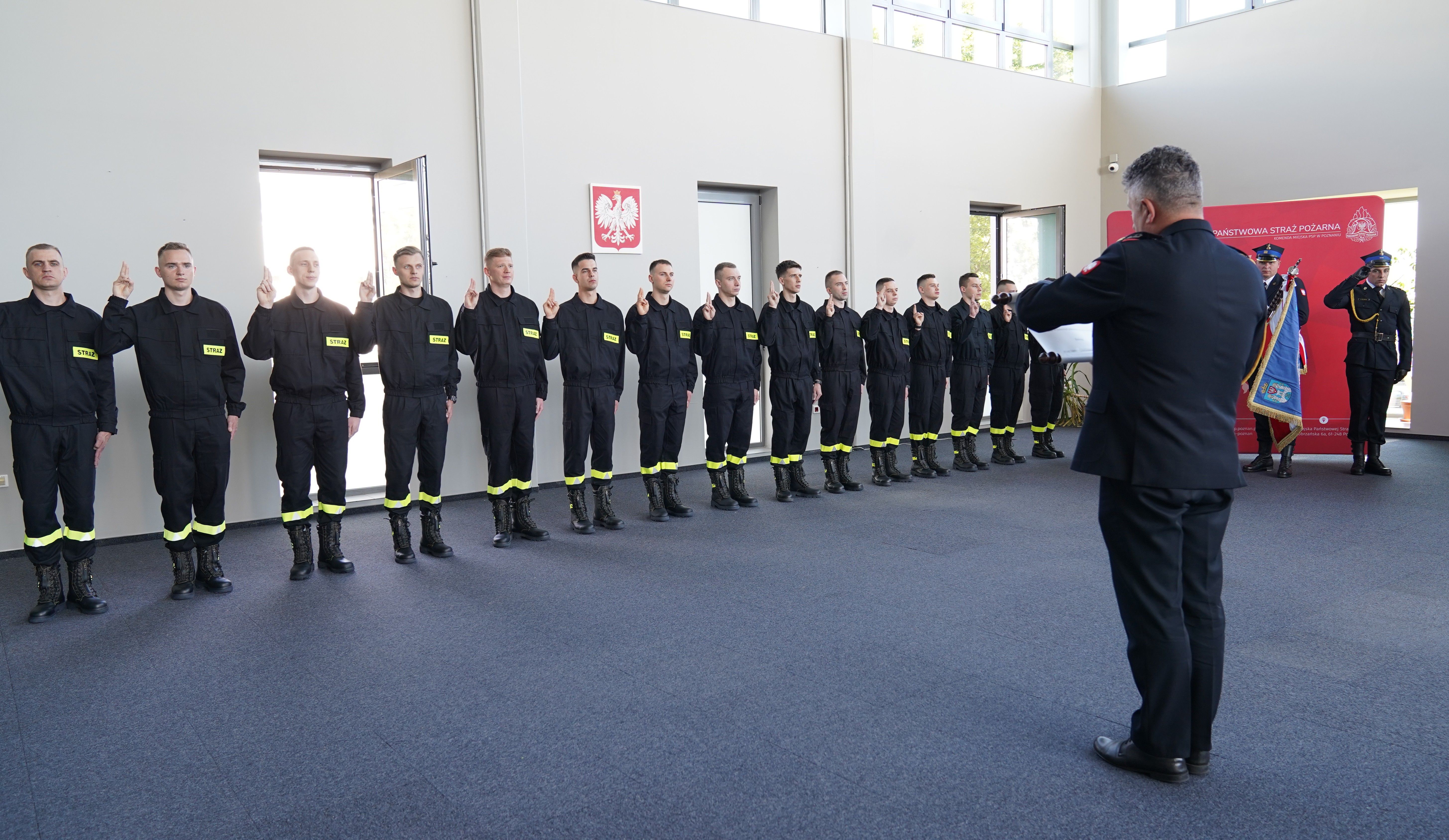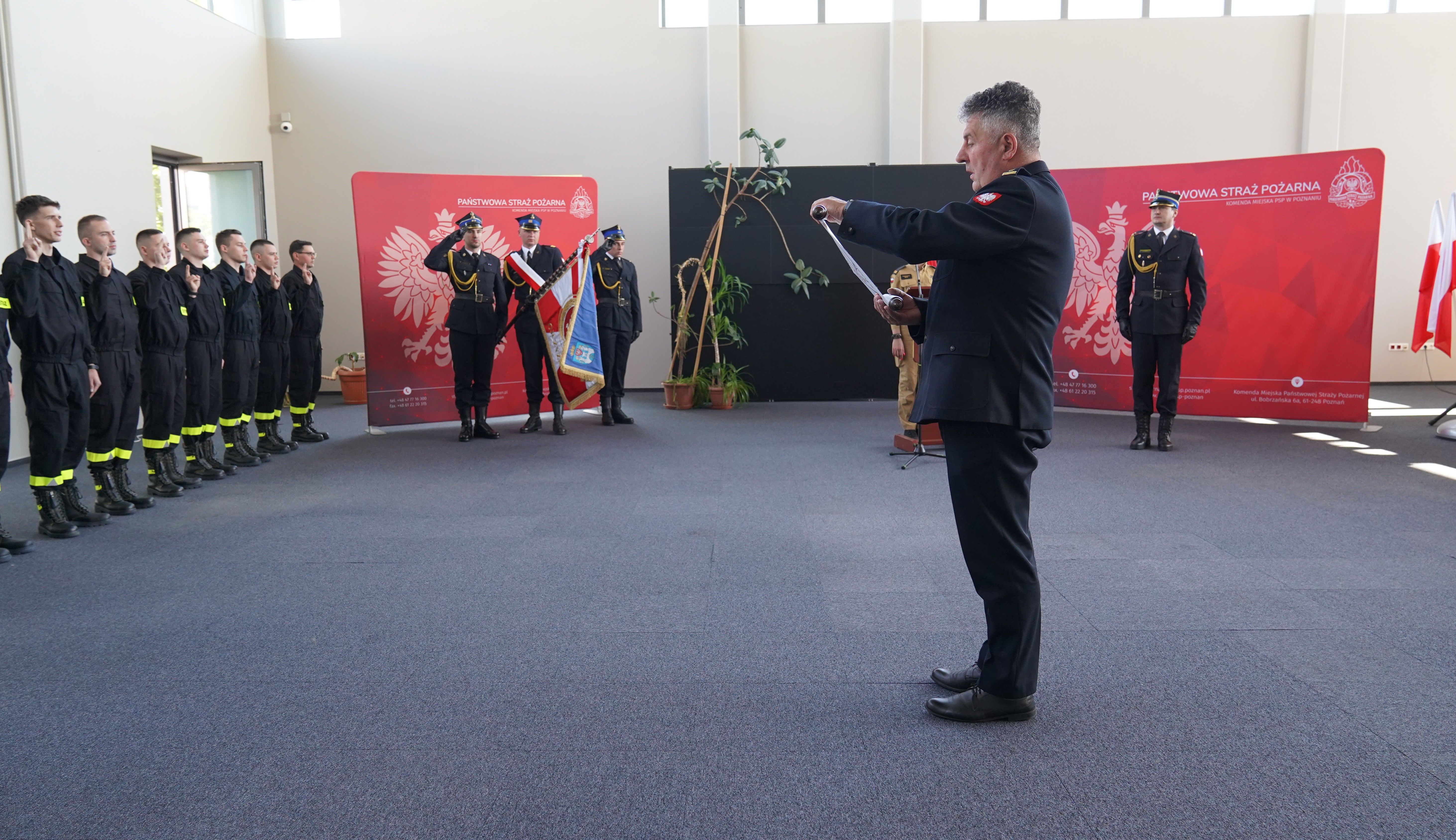 Ślubowanie przyjął Komendant Miejski Państwowej Straży Pożarnej w Poznaniu st. bryg. Jacek Michalak w obecności funkcjonariuszy i pracowników cywilnych komendy.
