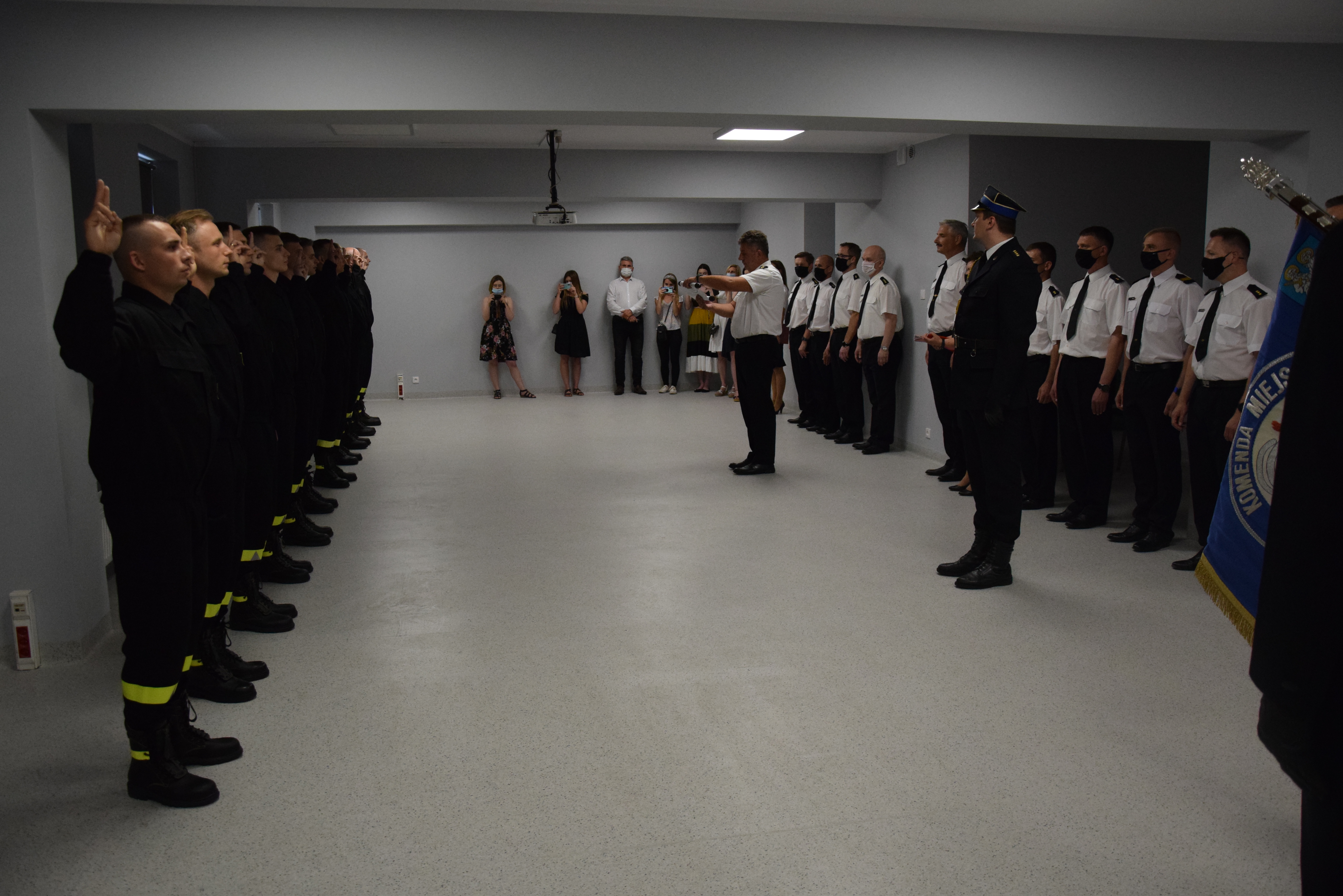 Ślubowanie przyjął Komendant Miejski PSP w Poznaniu st.bryg. Jacek Michalak w obecności zastępcy Komendanta Miejskiego mł.bryg. Radosław Hurnika oraz kadry kierowniczej KM PSP Poznań.