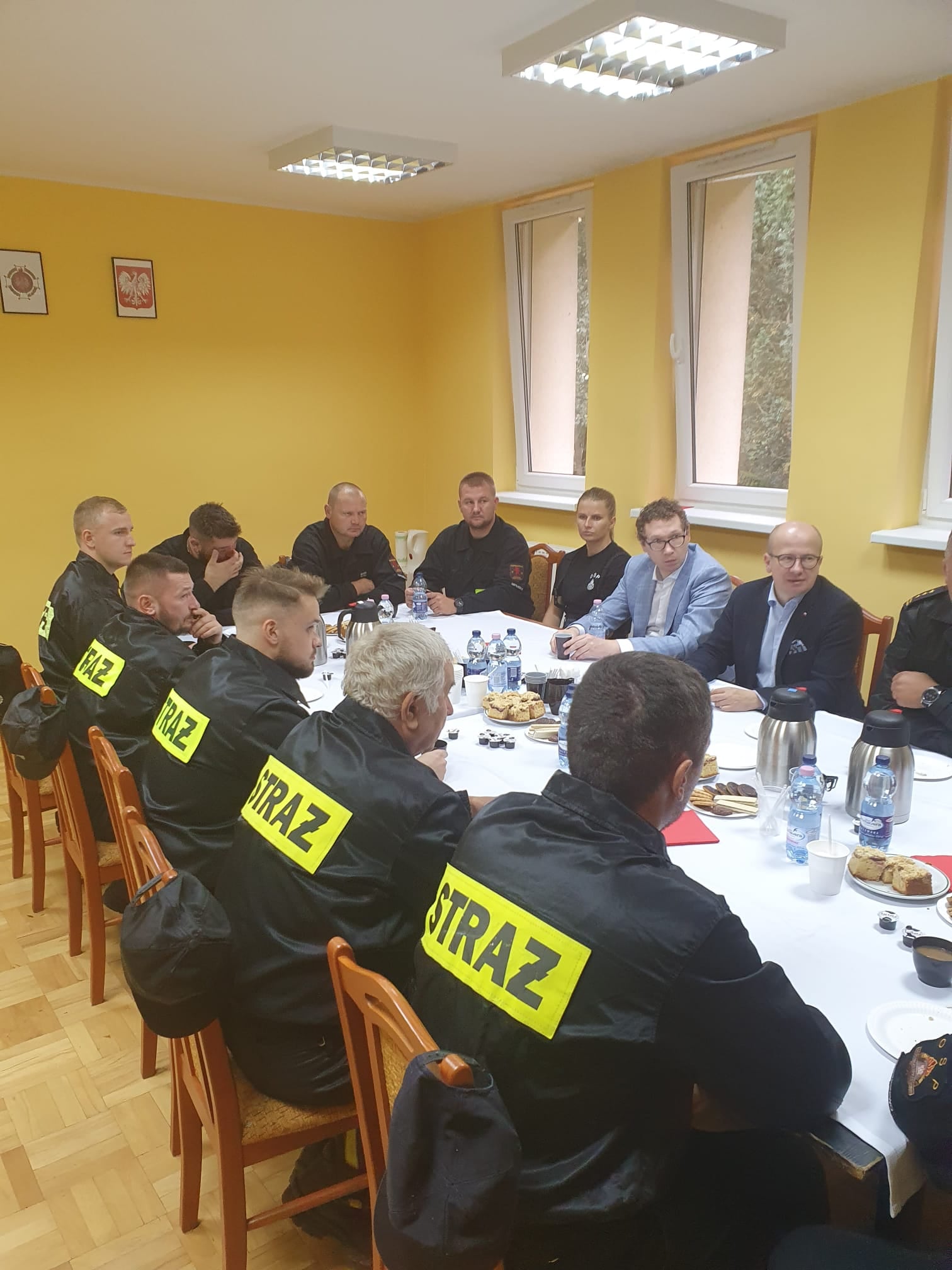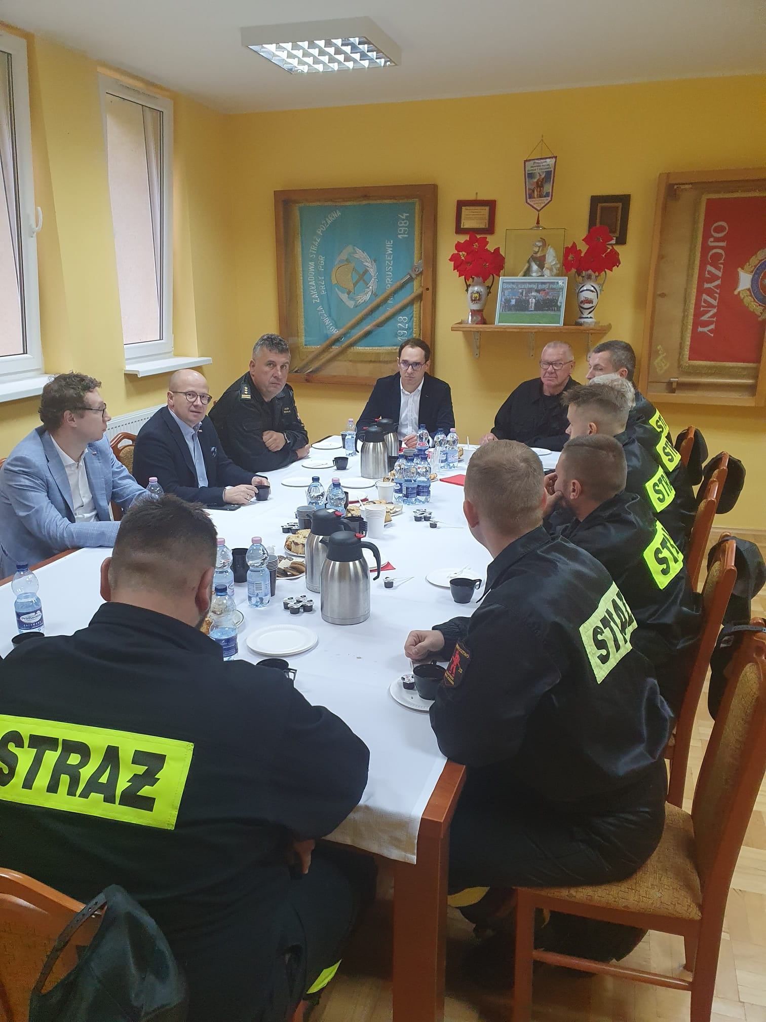 SPOTKANIE DRUHÓW OSP NIEPRUSZEWO Z POSŁEM NA SEJM RP BARTŁOMIEJEM WRÓBLEWSKIM, BURMISTRZEM MIASTA I GMINY BUK ORAZ KOMENDANTEM MIEJSKIM PSP