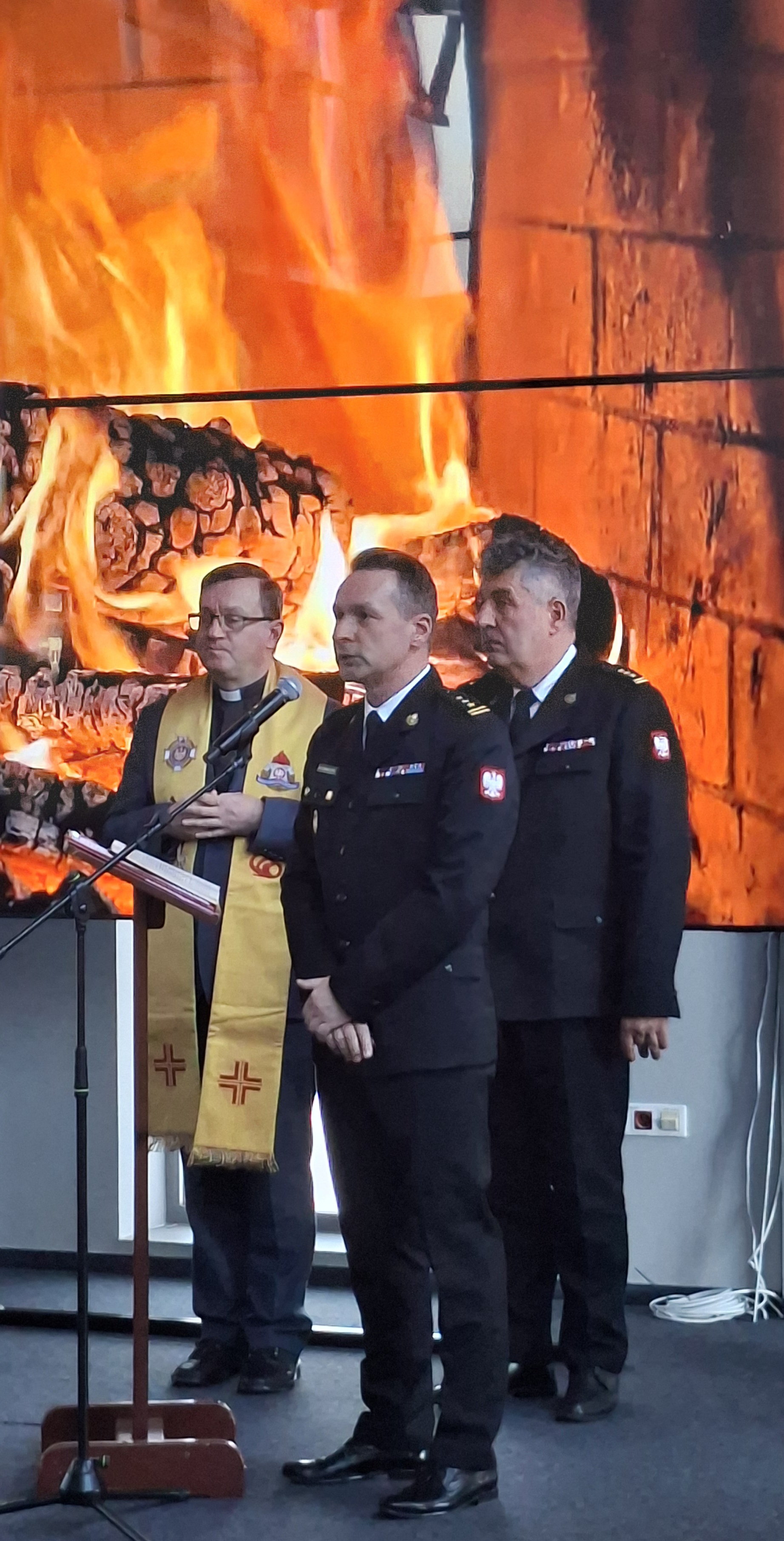 Boże błogosławieństwo wszystkim obecnym na spotkaniu przekazali - kapelan wielkopolskich strażaków ks. Mateusz Drob oraz ks. Krzysztof Różański, po czym nastąpiło wspólne odśpiewanie kolęd i przełamanie się poświęconym opłatkiem.
