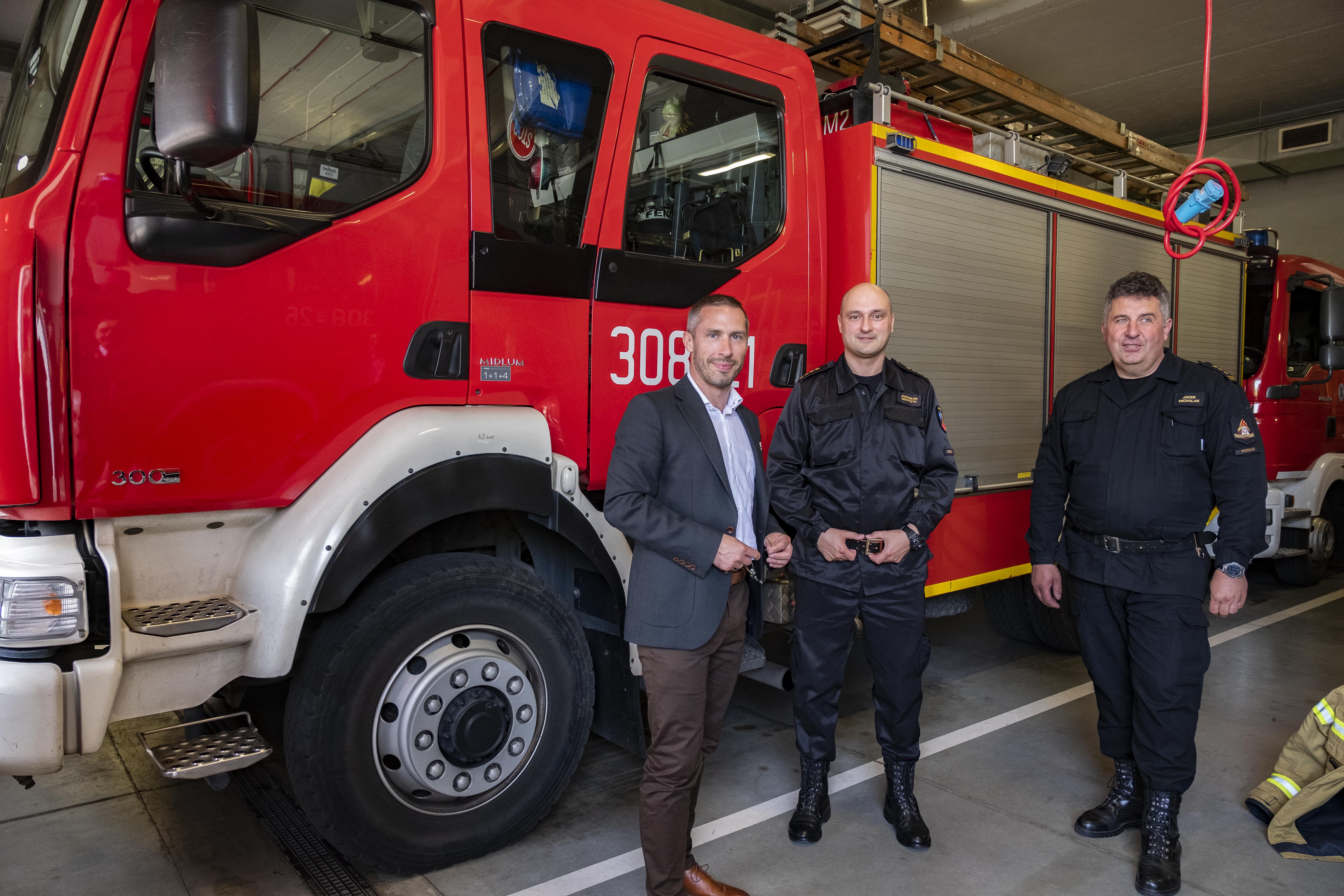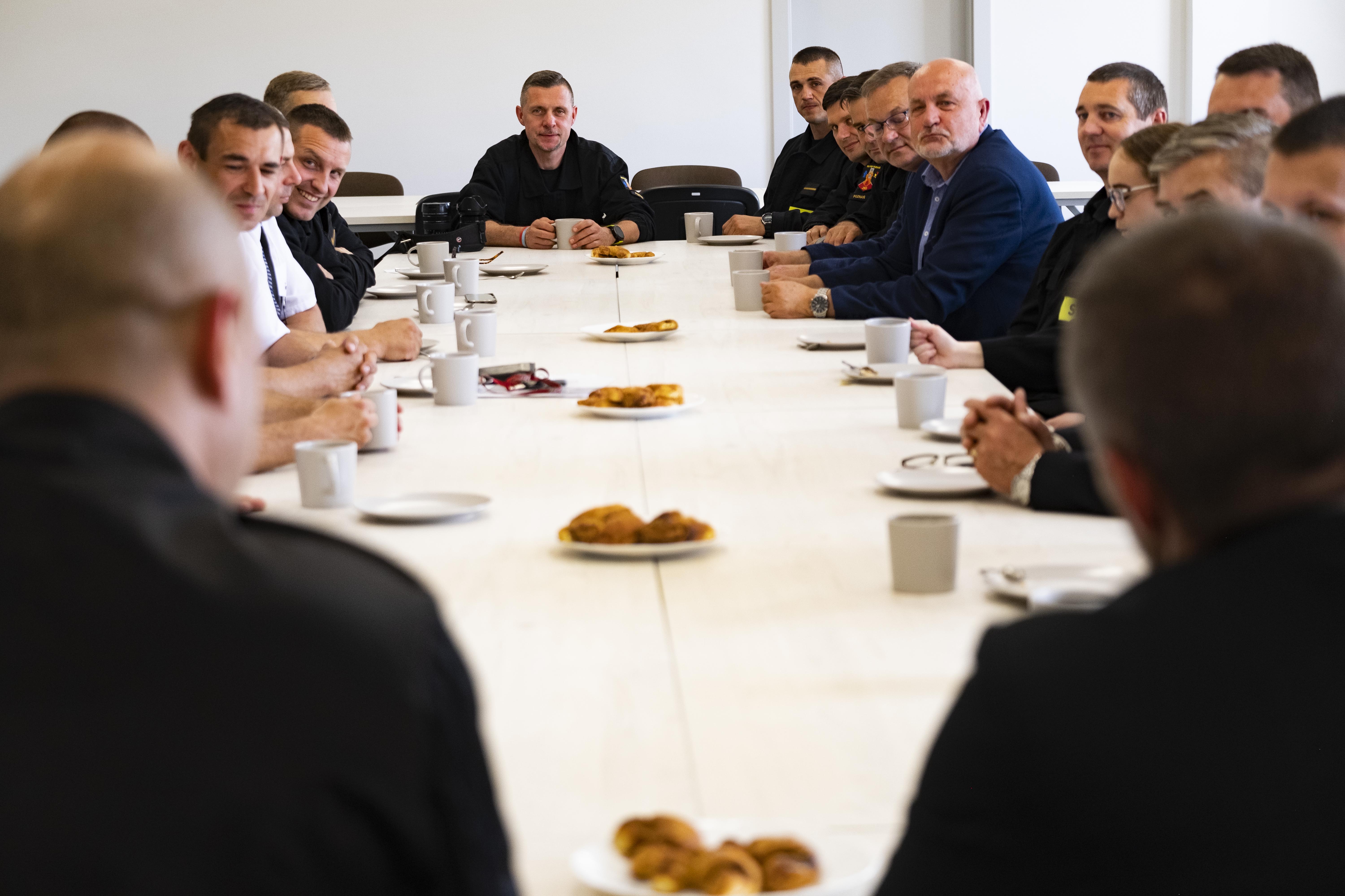Podczas spotkania, wójt podziękował funkcjonariuszom z JRG 8 oraz druhom z OSP Promnice i OSP Czerwonak za codzienną służbę, profesjonalizm i zaangażowanie w szeroko rozumiane bezpieczeństwo na terenie gminy oraz całego powiatu.