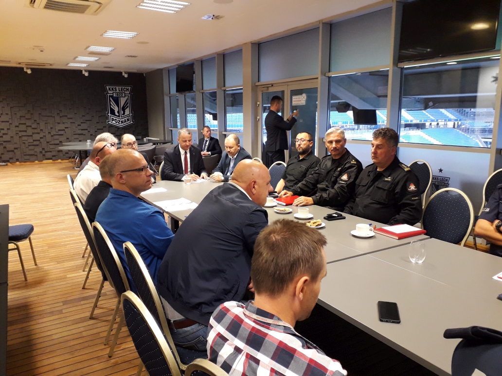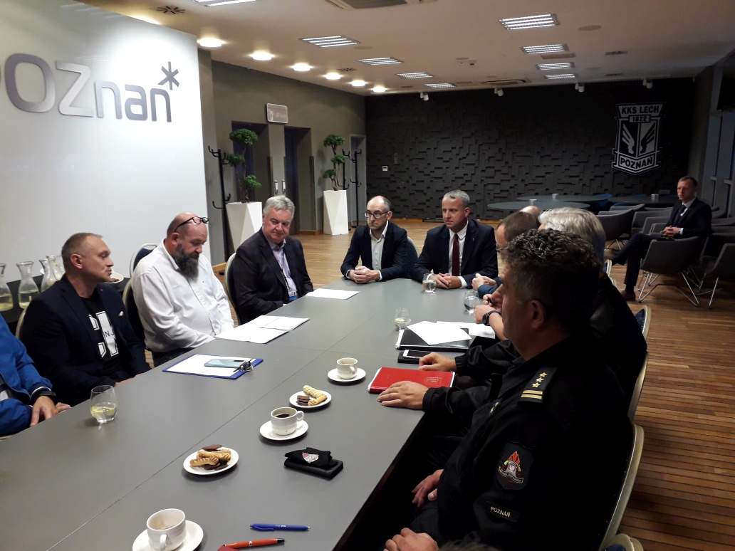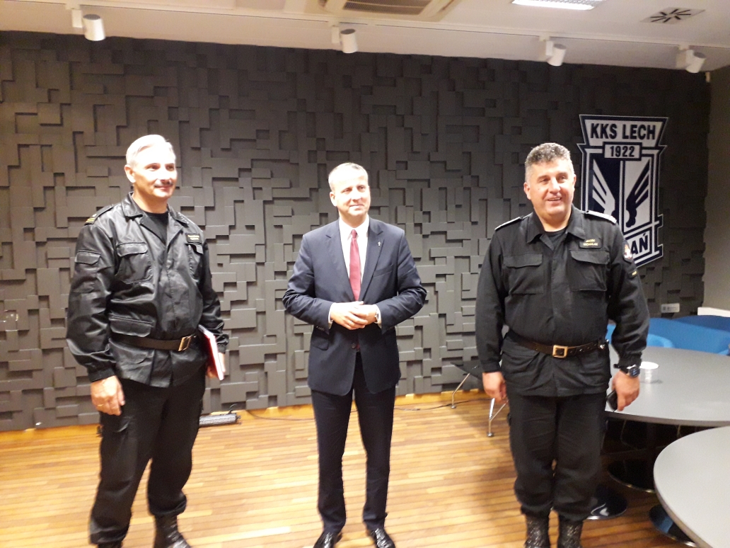 W dniu 20 sierpnia 2021 r. na Stadionie Miejskim w Poznaniu, odbyło się spotkanie przedstawicieli służb i instytucji zaangażowanych w bezpieczeństwo, zbliżającego się meczu podwyższonego ryzyka LECH Poznań – LECHIA Gdańsk. Spotkanie zaszczycił swoją obecnością Wojewoda Wielkopolski Michał Zieliński, wraz ze swoim zespołem z Wydziału Bezpieczeństwa i Zarządzania Kryzysowego WUW. Komendę Miejską PSP w Poznaniu reprezentowali: Komendant Miejski st. bryg. Jacek Michalak wraz z Zastępcą Komendanta mł. bryg. Radosławem Hurnikiem.