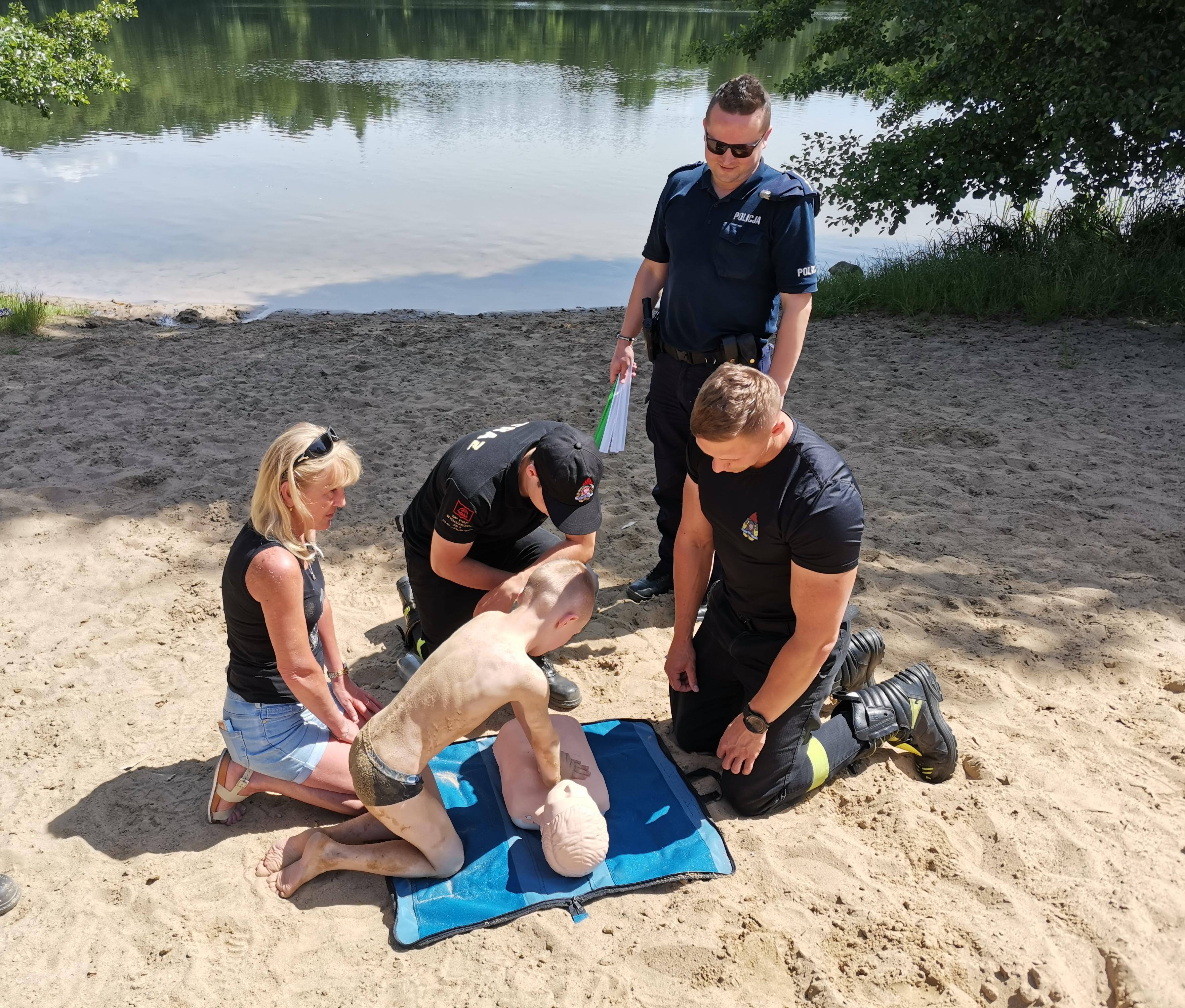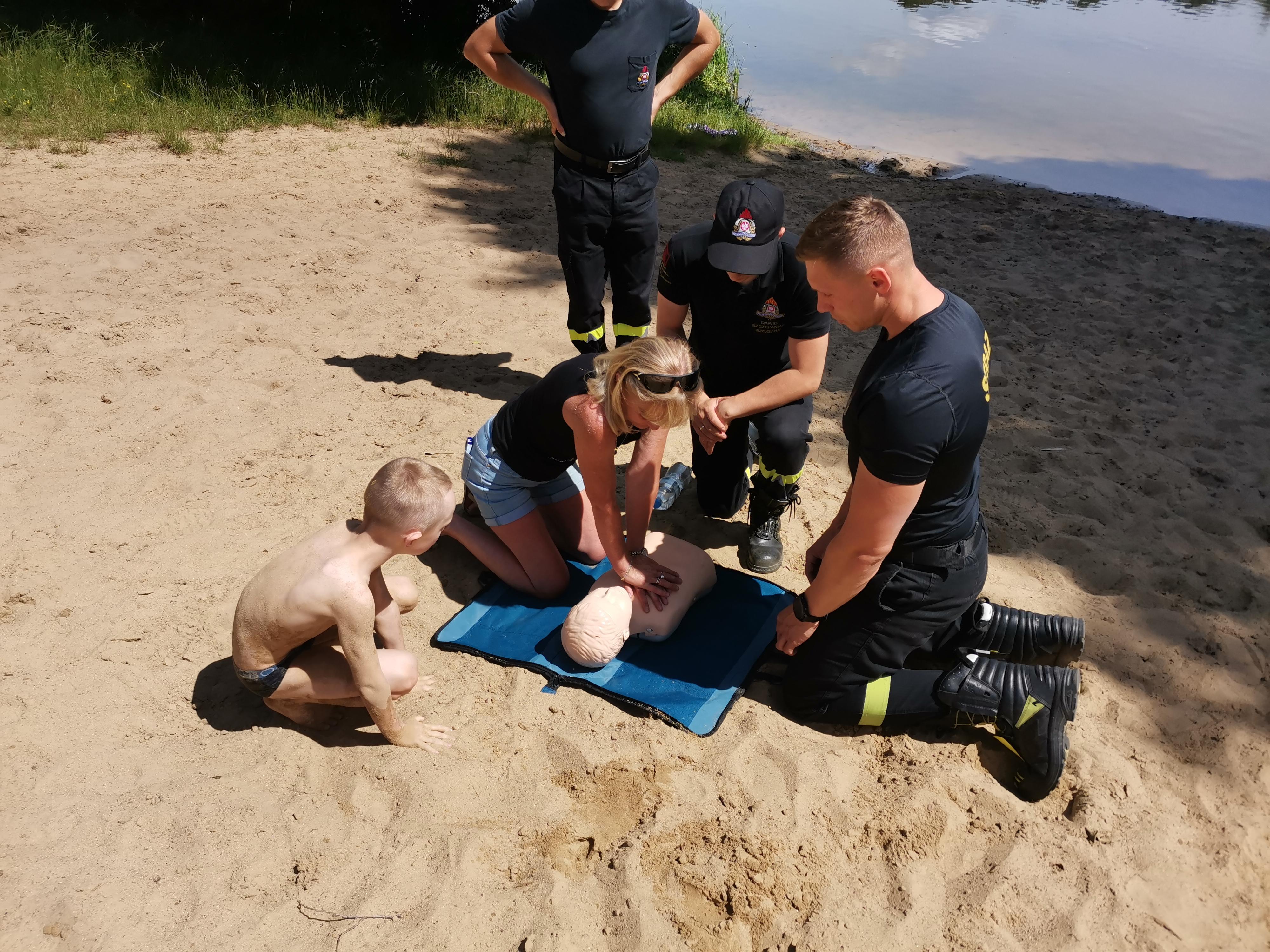 W ramach rozpoznania przeprowadzano, także zajęcia z pierwszej pomocy dla osób które wypoczywały na odwiedzonych kąpieliskach.