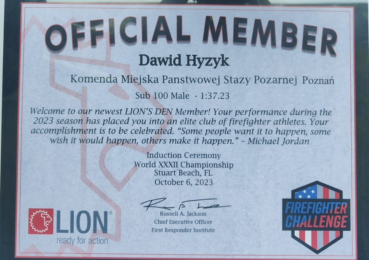 STRAŻAK KM PSP W POZNANIU DOŁĄCZYŁ DO ELITARNEGO KLUBU FIRE LION'S DEN