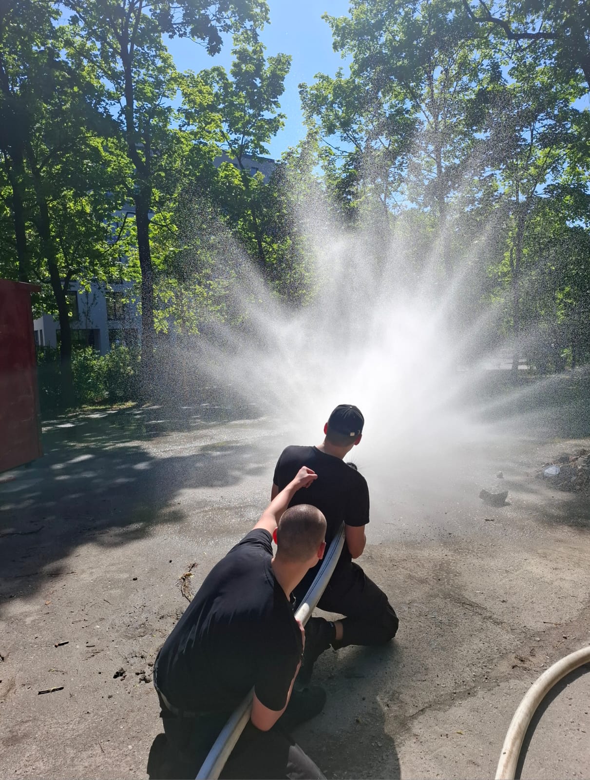 - stanowisko na którym uczniowie uczyli się operować prądami gaśniczymi,