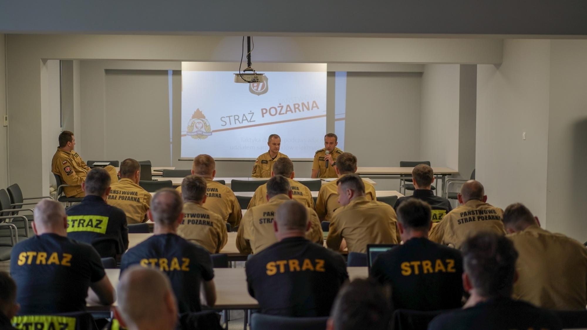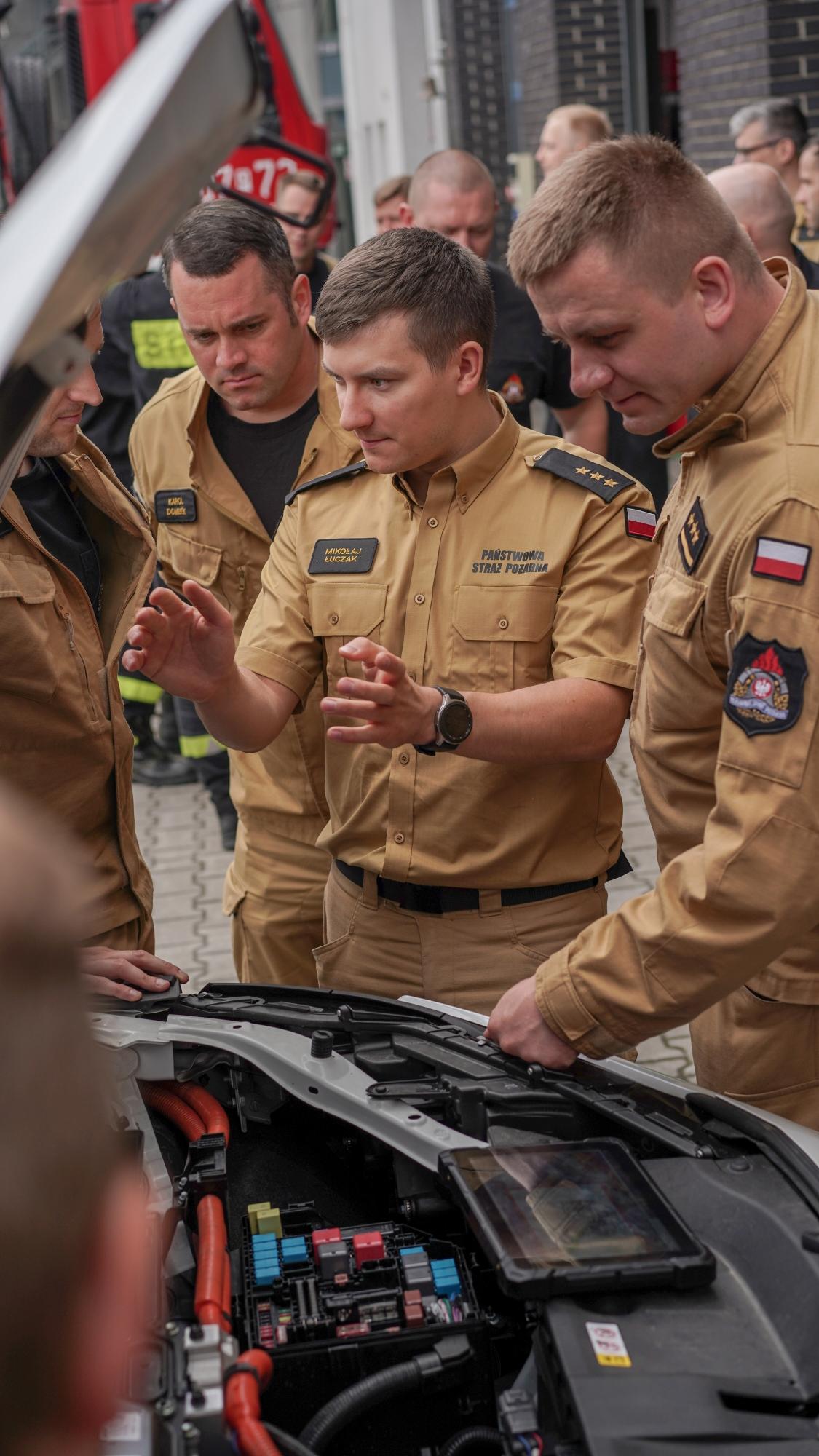 Szkolenie rozpoczęło się od wystąpienia st. kpt. Adriana Fiszera, Dowódcy JRG nr 7 w Poznaniu, który omówił zagadnienia związane z zagrożeniami wynikającymi z użytkowania pojazdów elektrycznych. Dzięki uprzejmości Toyota Poznań Centrum, funkcjonariusze mieli możliwość zapoznania się z pojazdem elektrycznym na żywo, co pozwoliło na lepsze zrozumienie specyfiki tych nowoczesnych technologii.