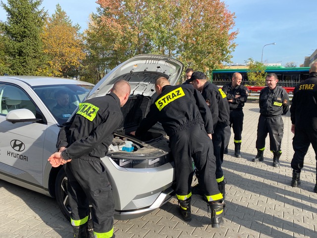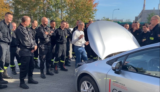 Dzięki uprzejmości firmy Fundacja Edukacja PLUS, 27 października na terenie Jednostki Ratowniczo-Gaśniczej nr 8 w Bolechowie odbyło się szkolenie, którego głównym tematem było poznanie budowy i działania pojazdów elektrycznych i hybrydowych różnego typu oraz ich komponentów takich jak inwerter, silnik, przekaźnik, akumulator, a także zapoznanie się z procedurami bezpieczeństwa podczas działań ratowniczo-gaśniczych z pojazdami o napędzie alternatywnym.