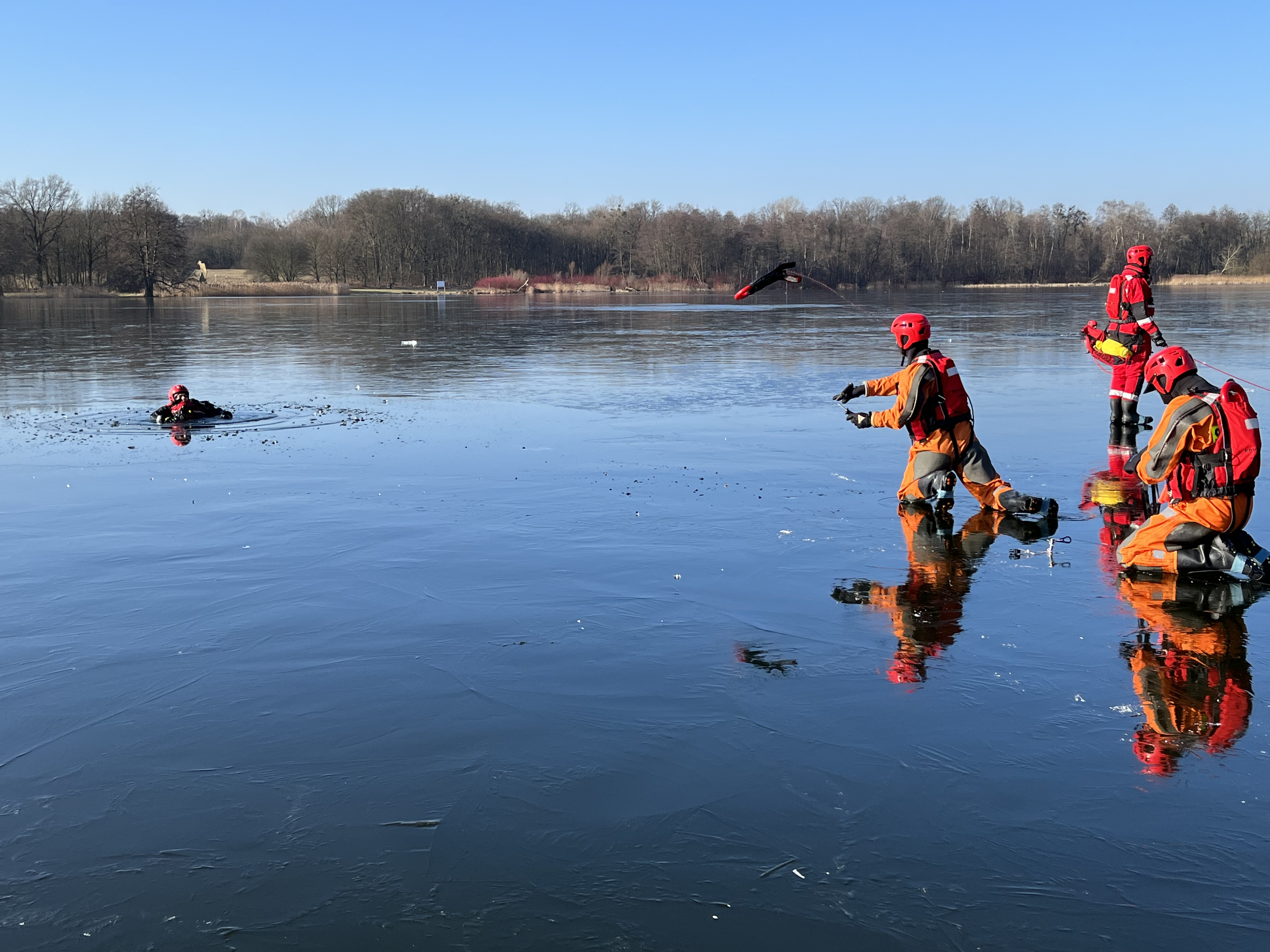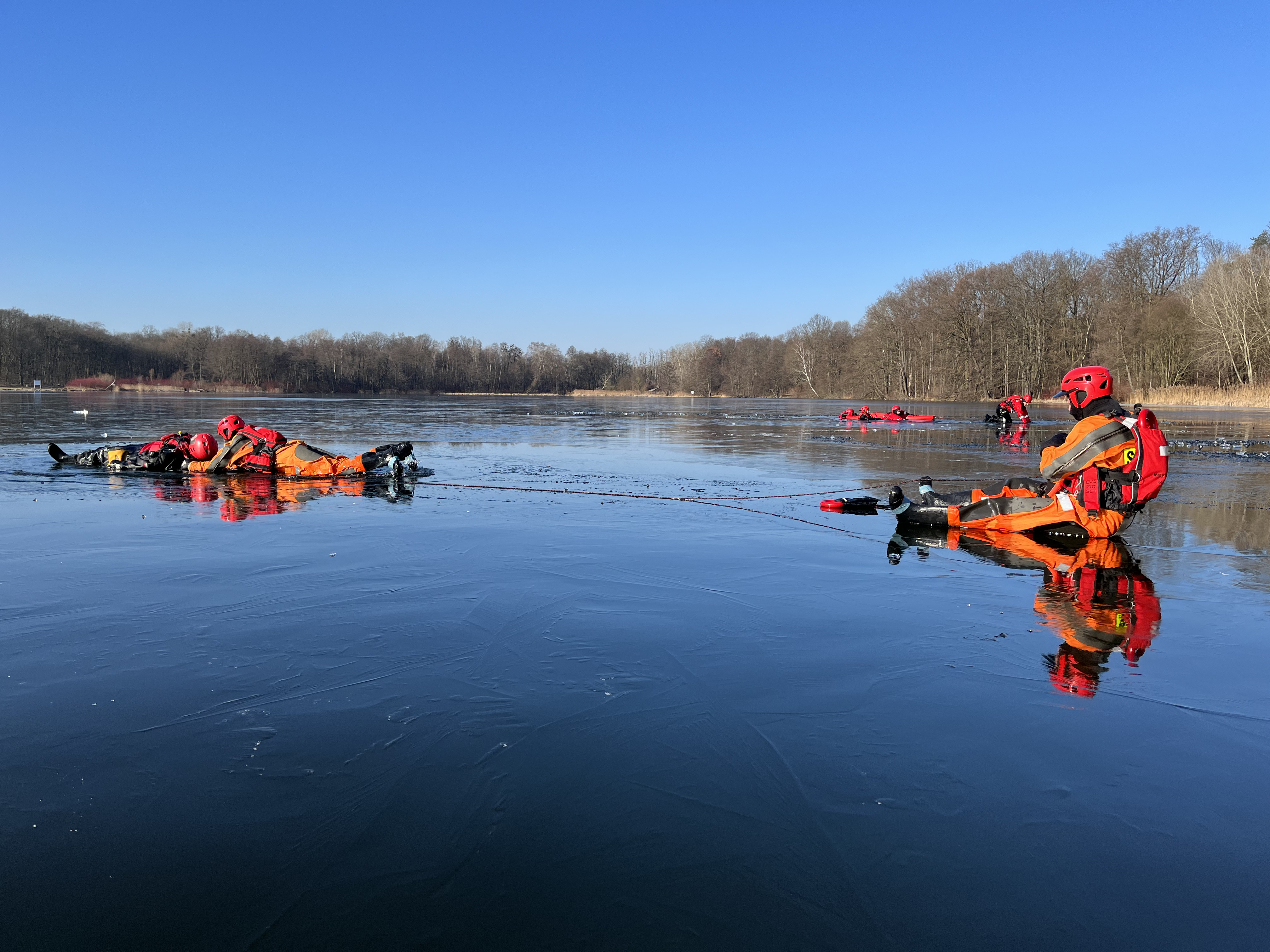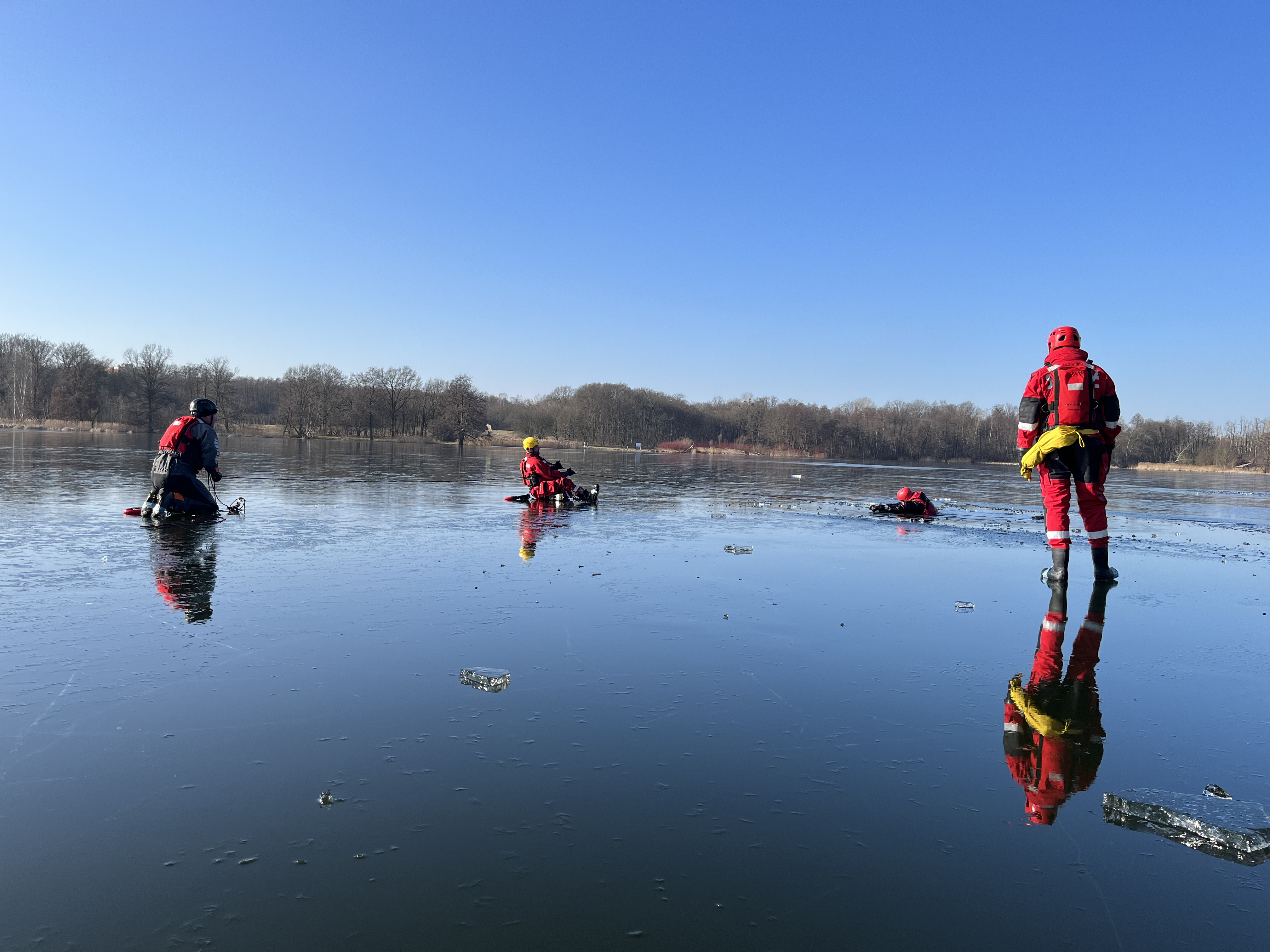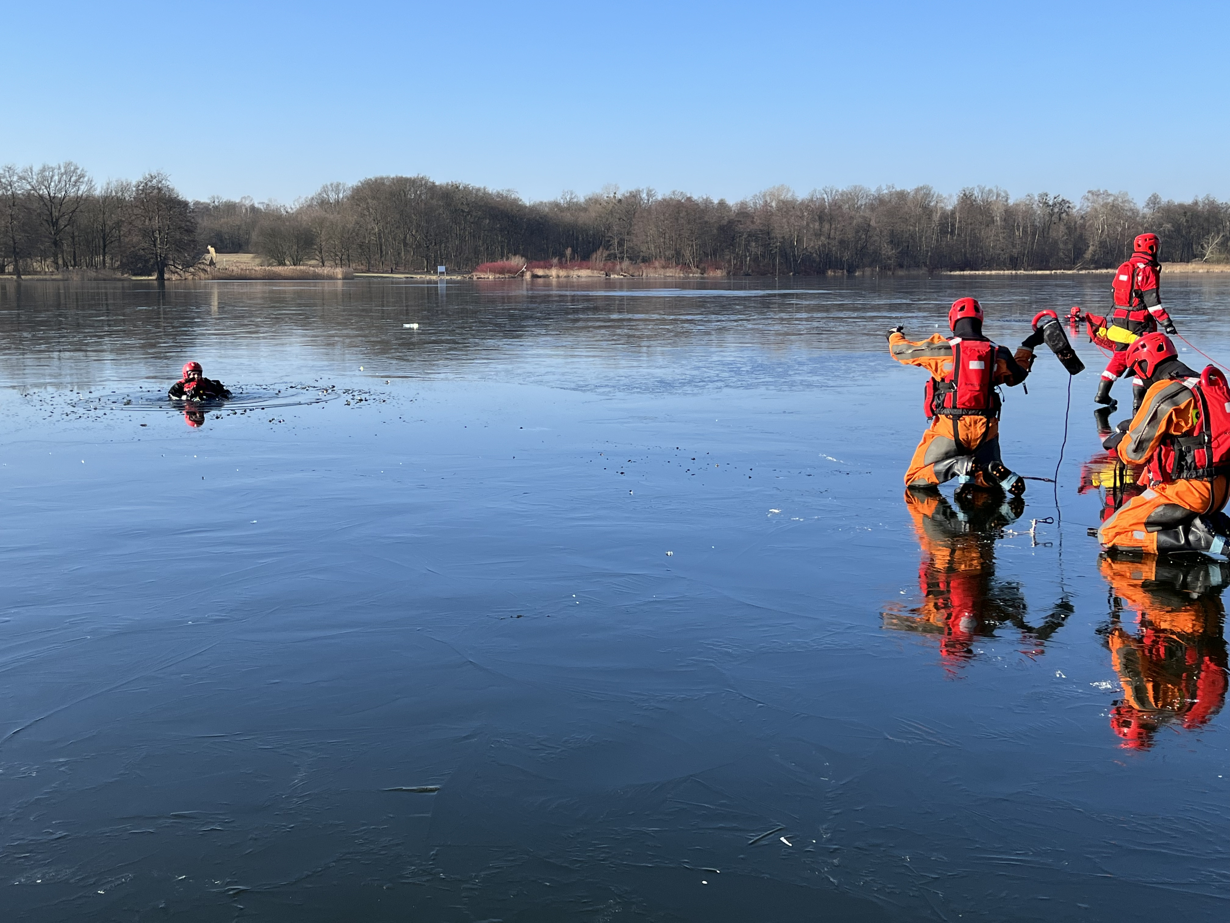 Z uwagi na odpowiednią pokrywę lodową do przeprowadzenia powyższego szkolenia, słuchacze mieli okazję przekonać się, jakie zagrożenia oraz problemy związane są z prowadzeniem działań na obszarach zalodzonych.