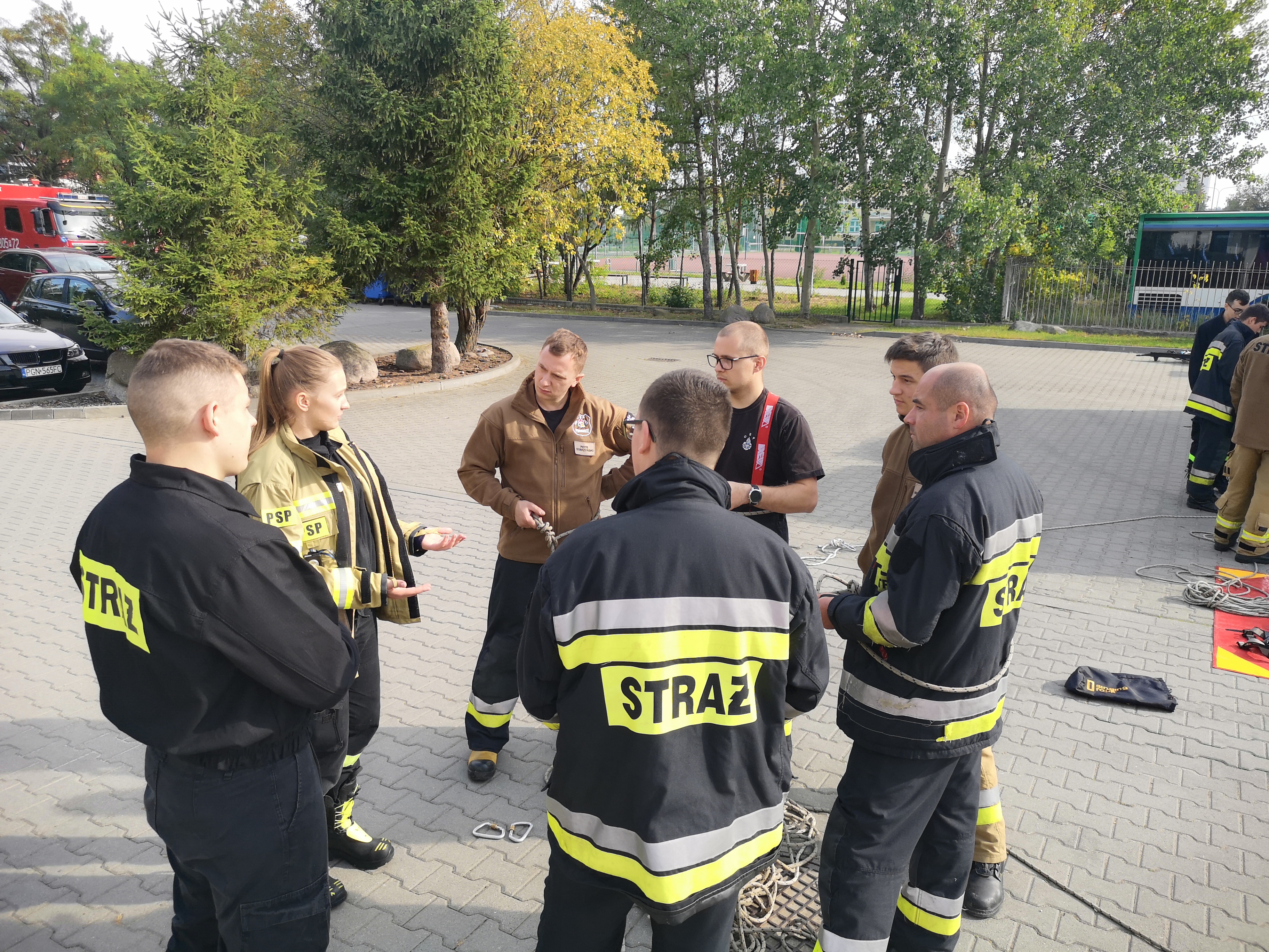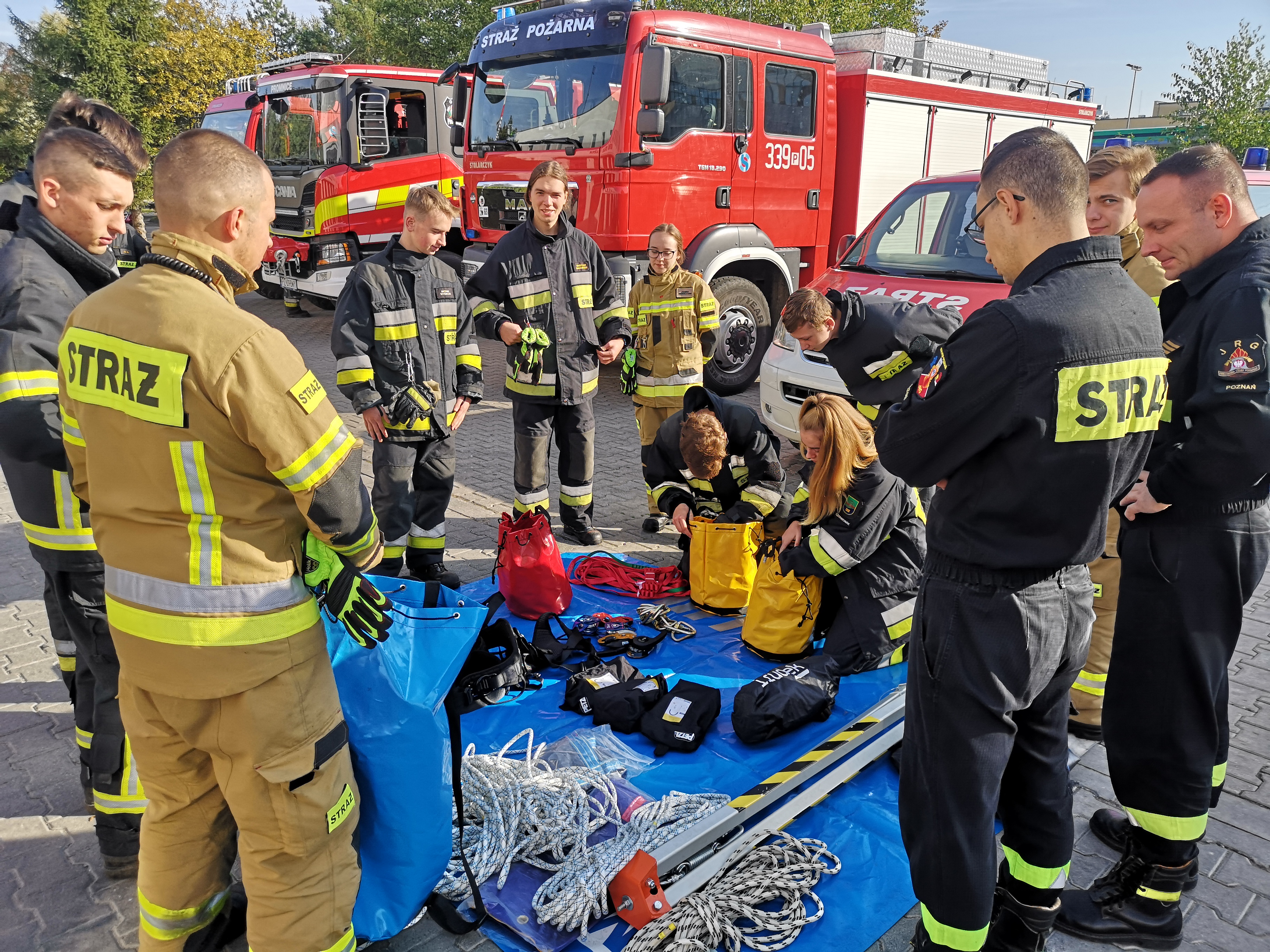 Uczestników szkolenia podzielono na grupy, które pod czujnym okiem instruktorów z Specjalistycznej Grupy Ratownictwa Wysokościowego z JRG5 uczestniczyły w zajęciach teoretycznych oraz praktycznych.