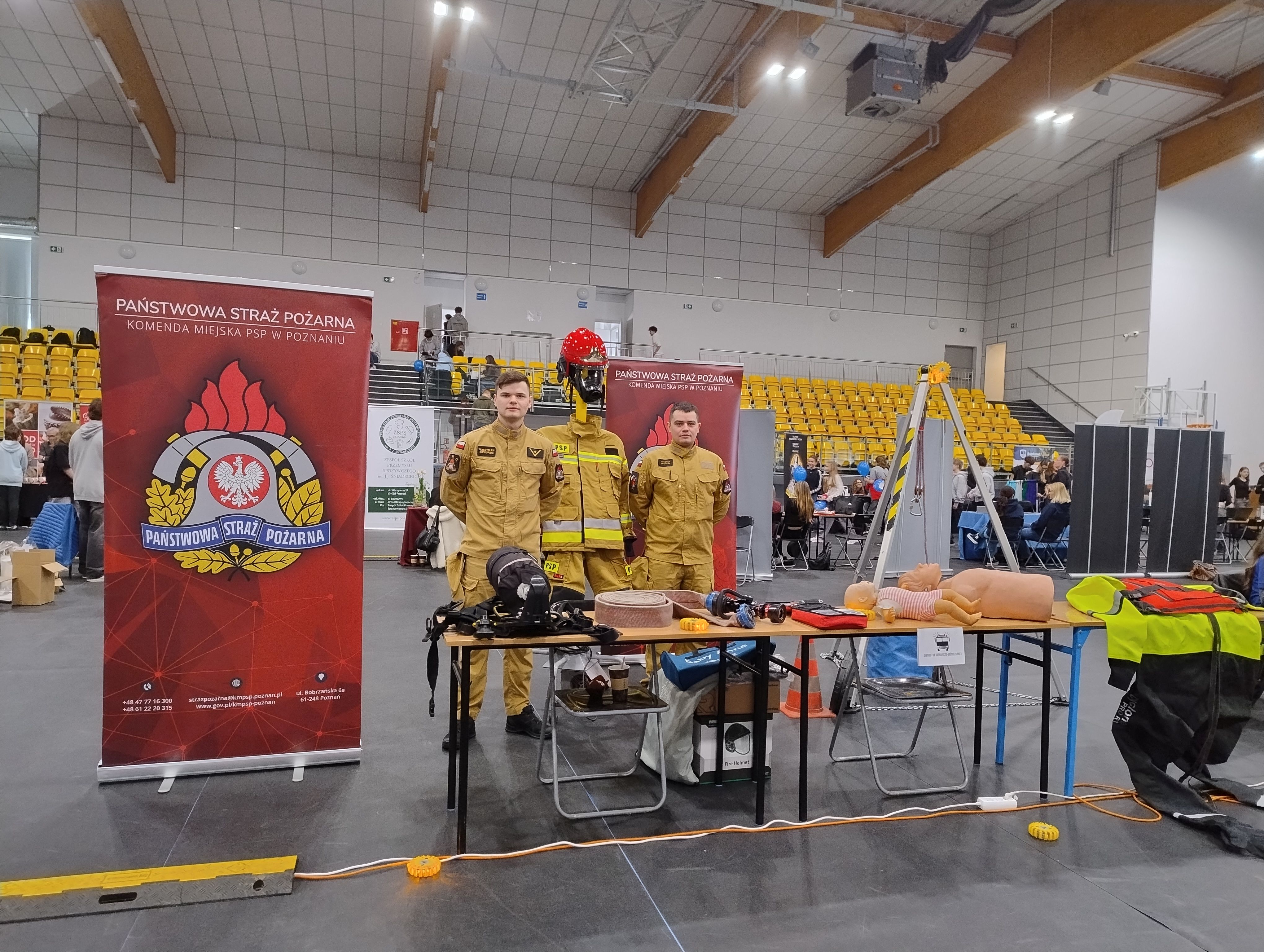 Stoisko Komendy Miejskiej PSP w Poznaniu cieszyło się dużym zainteresowaniem wśród uczniów szkół podstawowych i ponadpodstawowych, którzy licznie odwiedzali targi, poszukując informacji na temat dalszej ścieżki edukacyjnej i zawodowej. Funkcjonariusze odpowiadali na pytania dotyczące procesu rekrutacji, zasad kształcenia oraz codziennej służby strażaka. Młodzi uczestnicy wydarzenia mieli możliwość dowiedzieć się, jakie predyspozycje i umiejętności są szczególnie przydatne w tym zawodzie, a także jakie wyzwania i satysfakcję niesie ze sobą służba na rzecz szeroko objętego bezpieczeństwa społeczeństwa.