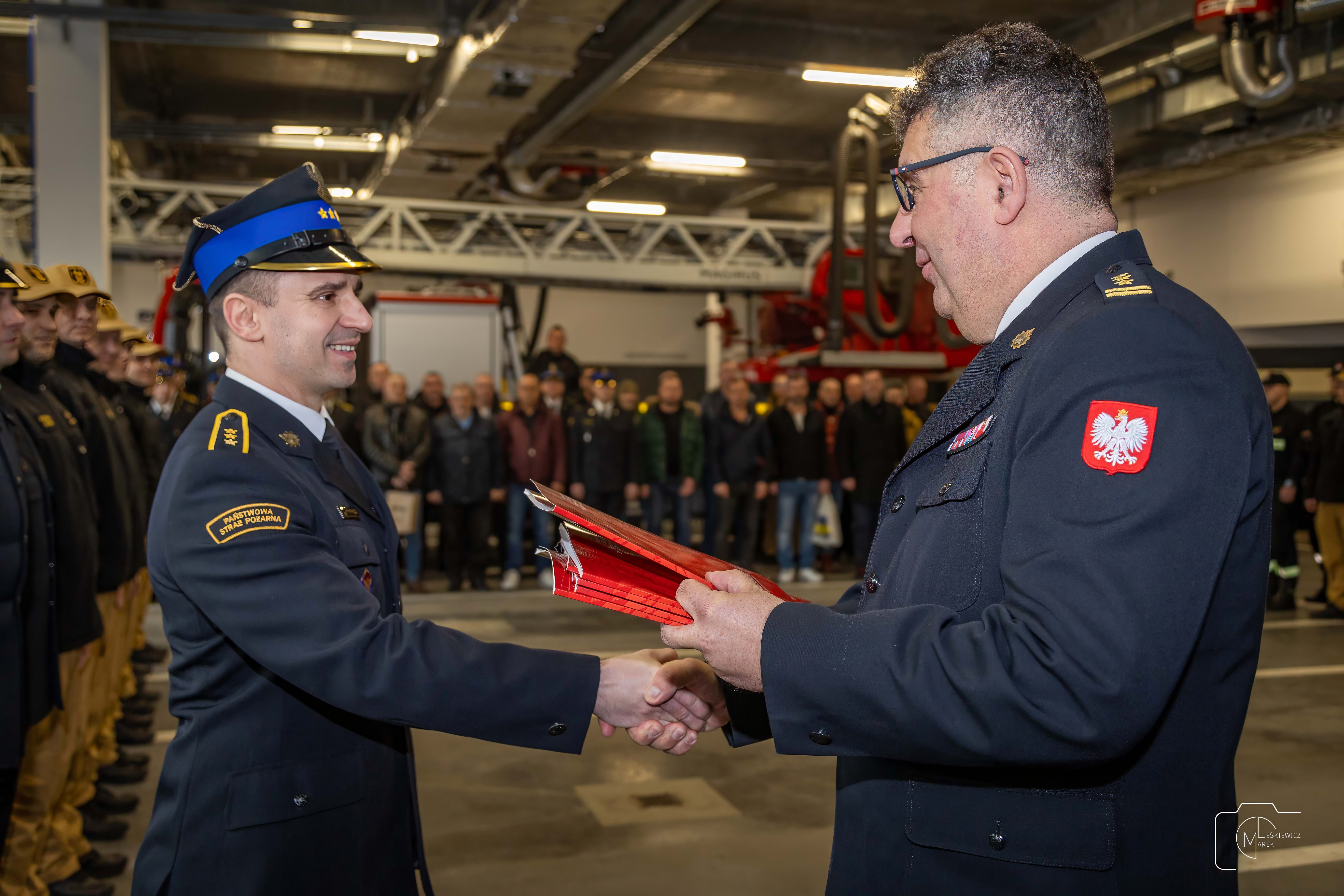 W trakcie uroczystości zmiany służby Komendant Miejski st. bryg. Jacek Michalak przybliżył zebranym wieloletnią i niezwykle zaangażowaną pracę strażaków, podziękował za ich udział w kształtowaniu profesjonalizmu i wysokich standardów jakie reprezentuje Państwowa Straż Pożarna. Dowódca jednostki bryg. Mariusz Kowalski podkreślił ich poświęcenie, ciężką pracę w Specjalistycznej Grupie Wodno-Nurkowej oraz nieoceniony wkład w bezpieczeństwo mieszkańców miasta. Moment pożegnania był pełen emocji, a obecni na ceremonii strażacy i goście mieli okazję wspólnie podziękować odchodzącym za ich trud i oddanie służbie. Zmiana służby stała się także okazją do wspomnień z lat wspólnej pracy. Uroczystość była momentem jednoczącym społeczność strażacką i pokazującym, że praca strażaka to nie tylko obowiązek, lecz również silne więzi i wspólnota.