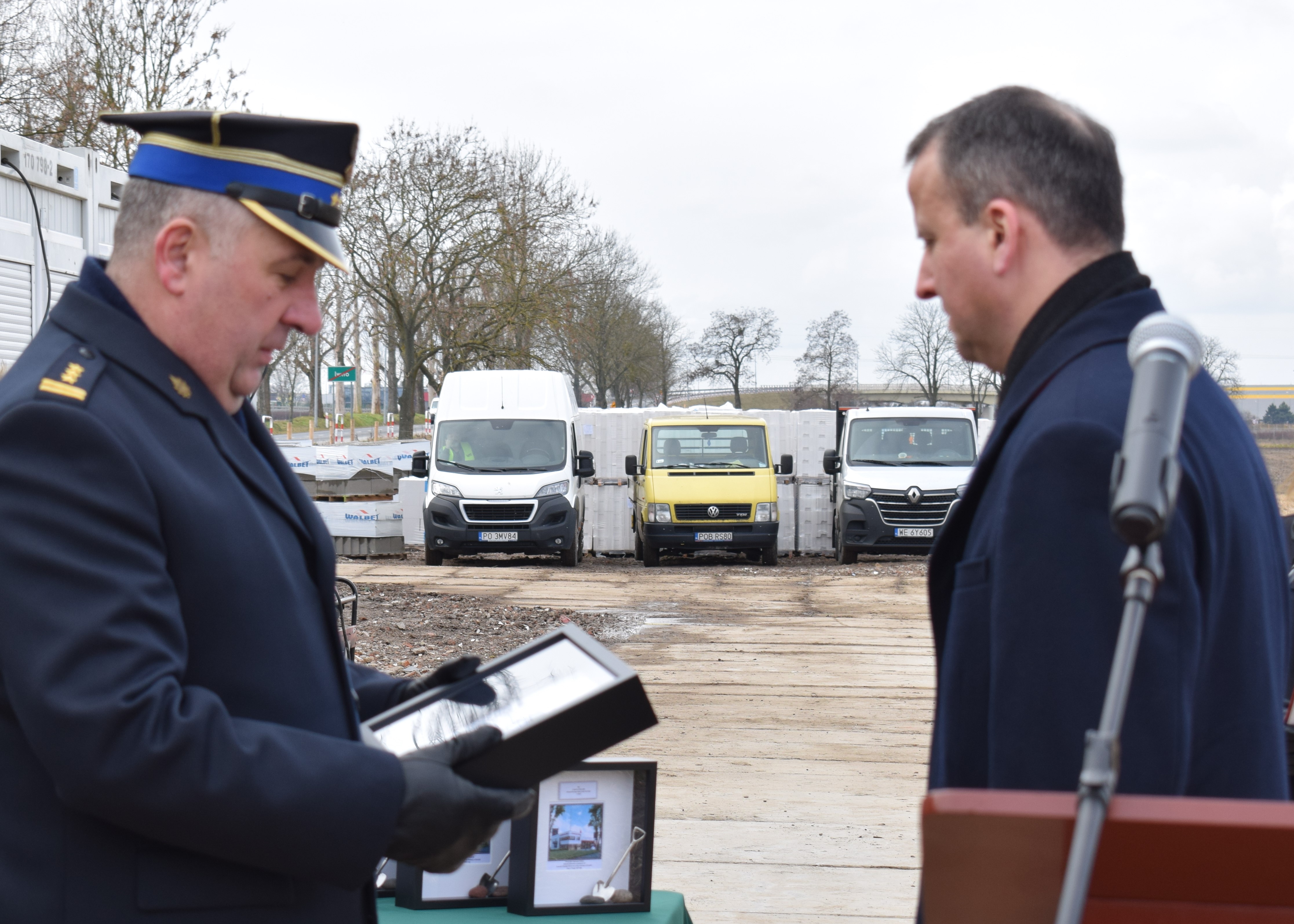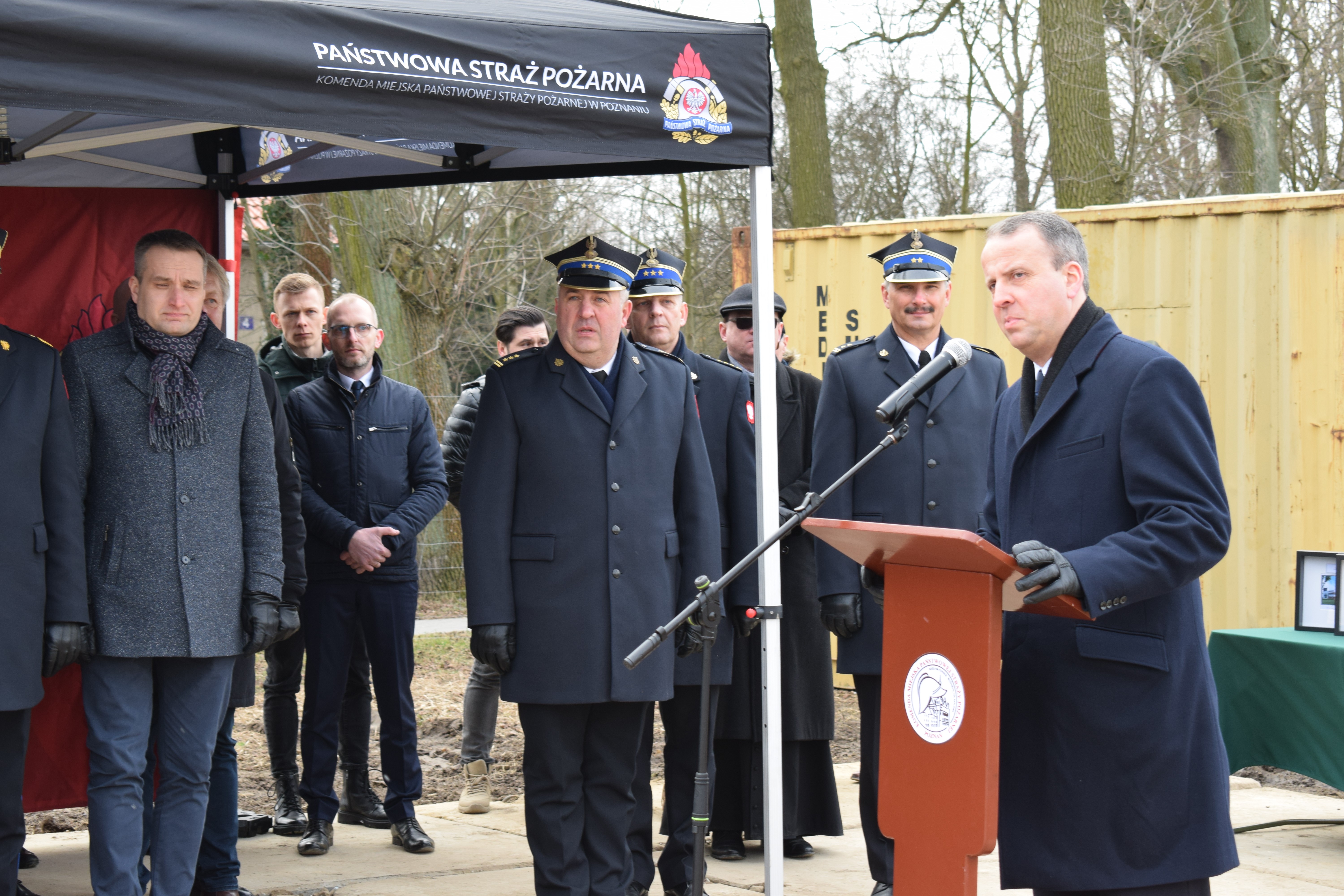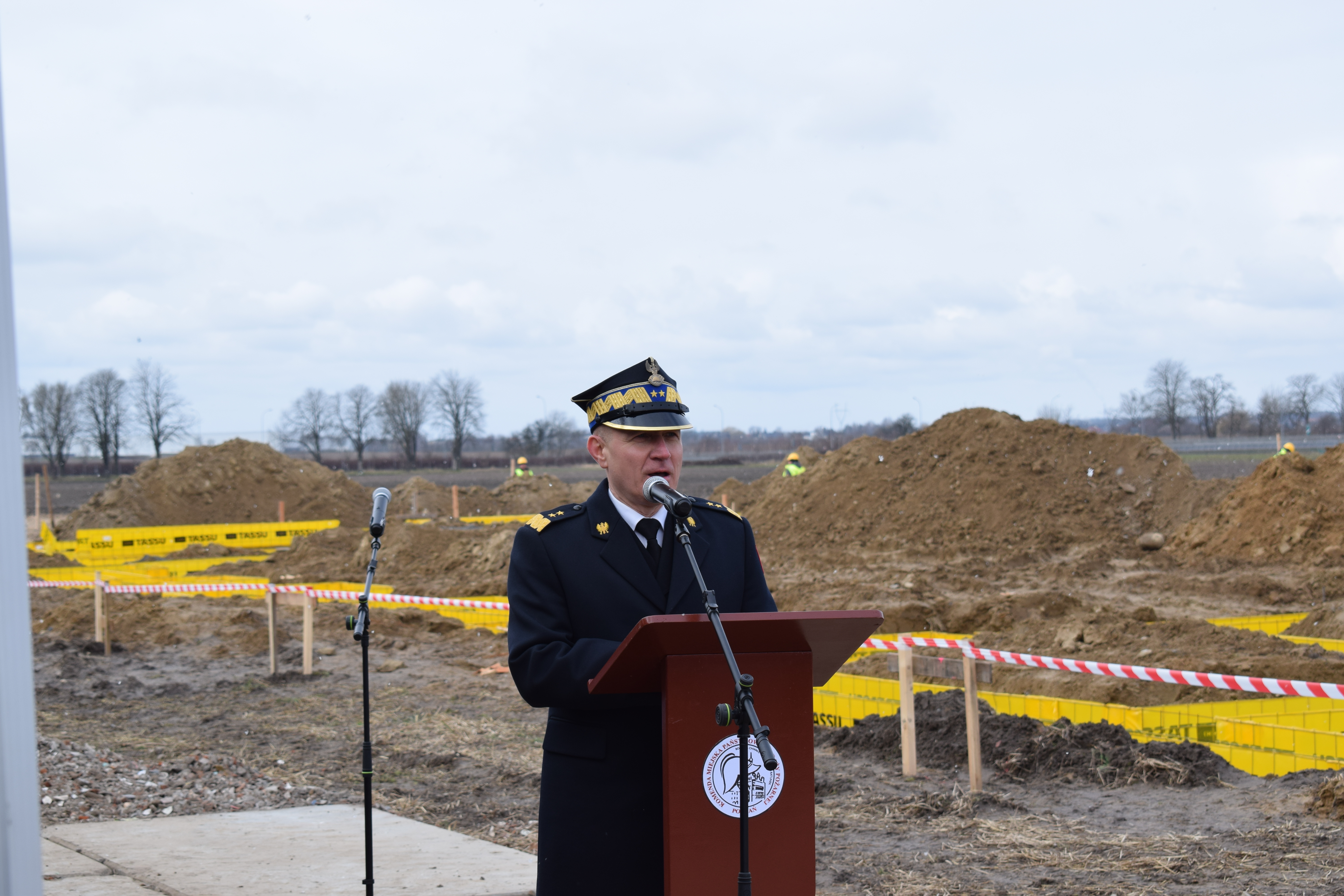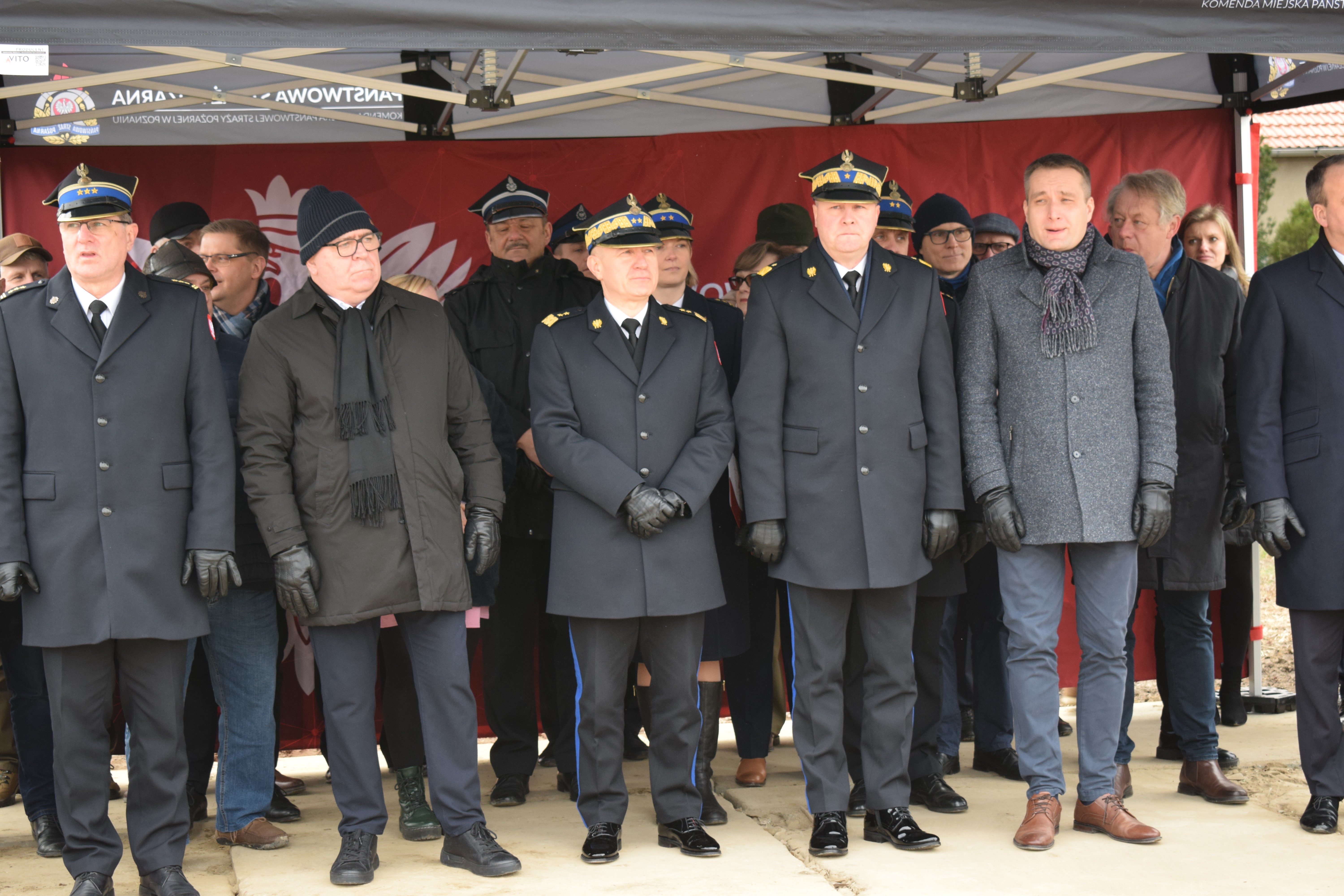 Na koniec głos zabrał Wielkopolski Komendant Wojewódzki nadbryg. Dariusz Matczak, który złożył podziękowania na ręce Komendanta Miejskiego w Poznaniu za zaangażowanie i bardzo dobre wyniki osiągnięte w ubiegłym roku. Głos zabrał także Burmistrz Gminy Kostrzyn – Szymon Matysek, który nie krył zadowolenia z nowo powstającej jednostki na terenie Gminy Kostrzyn. Panel przemówień zakończył główny wykonawca inwestycji Pan Krzysztof Lipiecki – Prezes Zarządu Ciepłownik Ekoinwestycje, który zapewnił o szybkiej realizacji inwestycji.