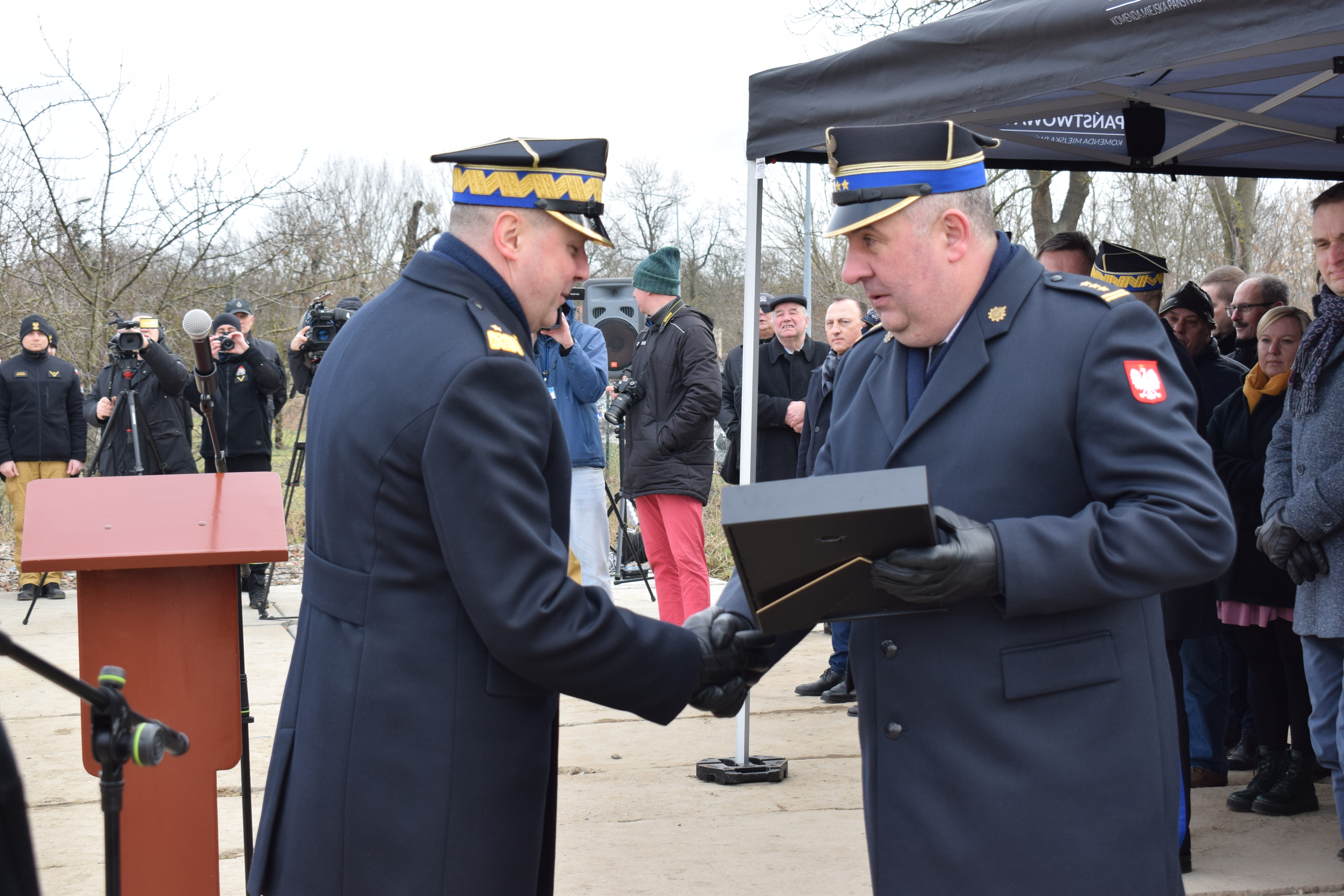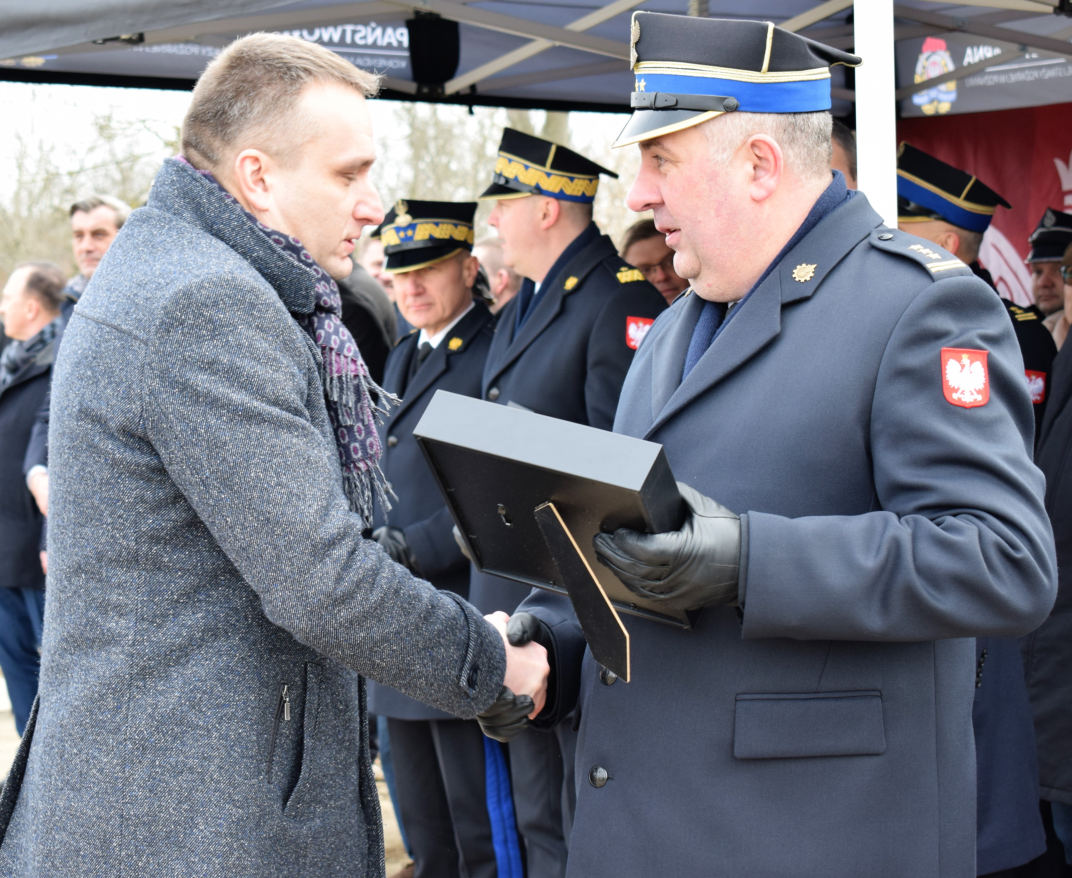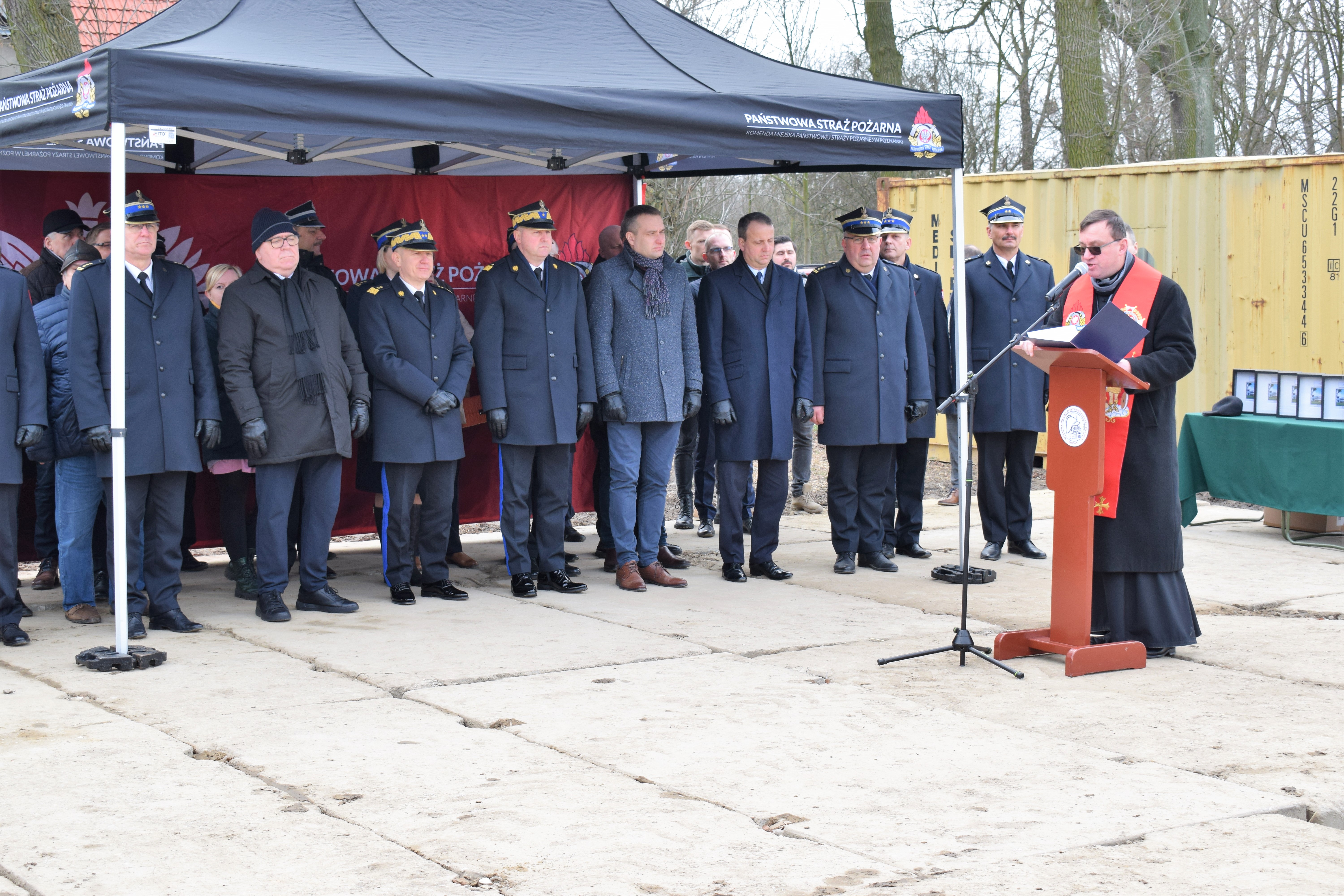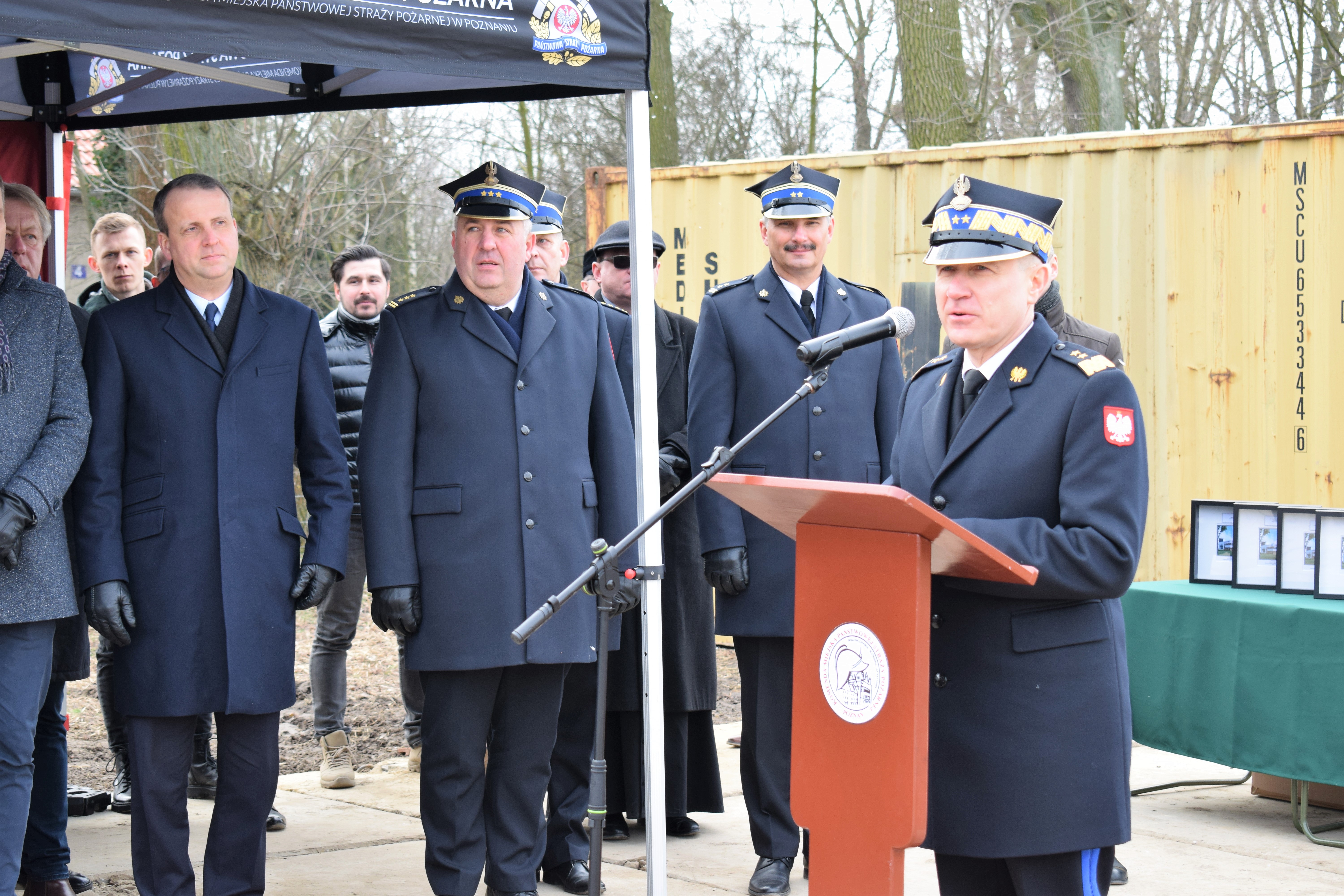 Na koniec głos zabrał Wielkopolski Komendant Wojewódzki nadbryg. Dariusz Matczak, który złożył podziękowania na ręce Komendanta Miejskiego w Poznaniu za zaangażowanie i bardzo dobre wyniki osiągnięte w ubiegłym roku. Głos zabrał także Burmistrz Gminy Kostrzyn – Szymon Matysek, który nie krył zadowolenia z nowo powstającej jednostki na terenie Gminy Kostrzyn. Panel przemówień zakończył główny wykonawca inwestycji Pan Krzysztof Lipiecki – Prezes Zarządu Ciepłownik Ekoinwestycje, który zapewnił o szybkiej realizacji inwestycji.