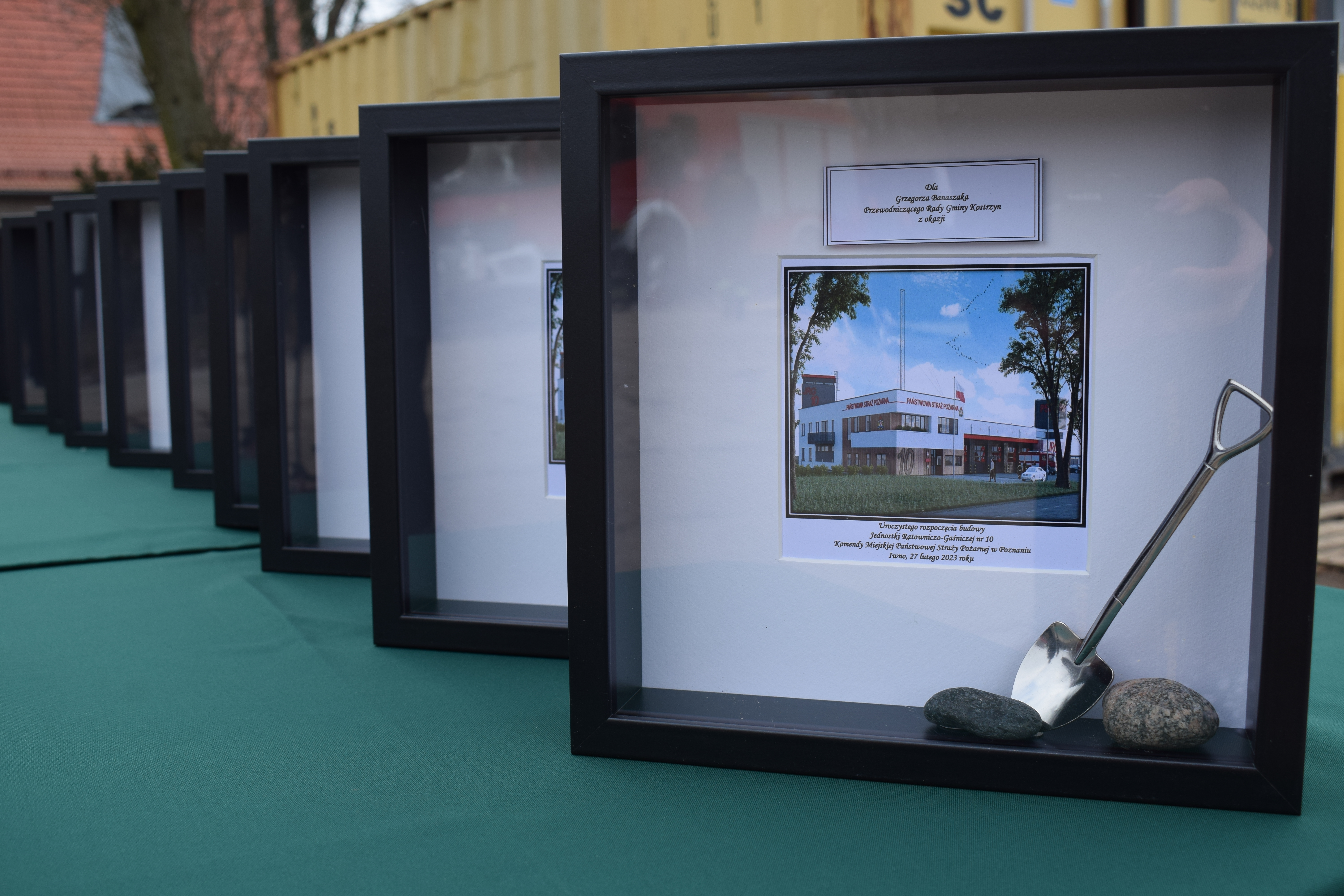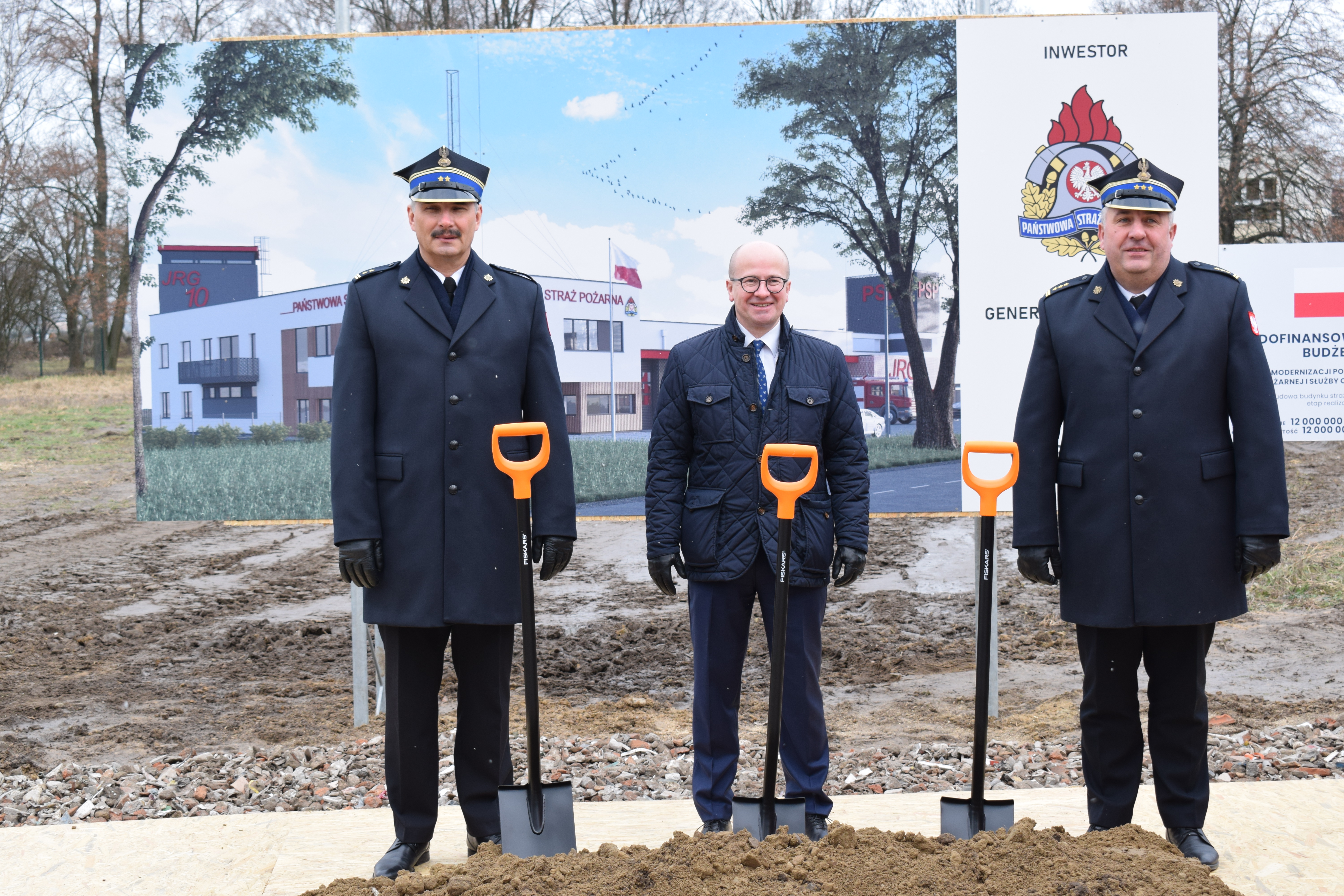Meldunek Komendantowi Głównemu PSP gen. brygadierowi Andrzejowi Bartkowiakowi złożył Dowódca JRG 3 – bryg. Grzegorz Banaszak. Następnie głos zabrał Komendant Miejski PSP w Poznaniu st. bryg. Jacek Michalak, który powitał wszystkich gości oraz przybliżył historię i ideę powstania Jednostki Ratowniczo-Gaśniczej nr 10. „W lutym ubiegłego roku otrzymaliśmy działkę od Burmistrza Miasta i Gminy Kostrzyn i od tamtego momentu krok po kroku staramy się przygotowywać do realizacji tej inwestycji. We wrześniu ubiegłego roku otrzymaliśmy pozwolenie na budowę, natomiast 12 grudnia 2022r. podpisaliśmy umowę z firmą Ciepłownik Ekoinwestycje na wykonanie pierwszego etapu. Lokalizacja miejsca nie jest przypadkowa. Będzie to trzecia jednostka ratowniczo – gaśnicza na terenie powiatu poznańskiego. Budowa JRG nr 10 w miejscowości Iwno zabezpieczy operacyjnie część wschodnią powiatu poznańskiego. Swoim zasięgiem obejmie gminy Swarzędz, Kostrzyn, Pobiedziska, Kleszczewo, Murowana Goślina. Na terenie chronionym znajduje się wiele zakładów, budynków i obiektów o szczególnym zagrożeniu pożarowym, w tym wiele zakładów przemysłowych oraz hal logistycznych. Rozwój infrastruktury drogowej w tym rejonie m.in. droga ekspresowa S5, droga krajowa nr 92 oraz bliskość Autostrady A2 generują wzrost intensywności transportu drogowego, co jest kolejnym czynnikiem wpływającym na zwiększenie zagrożeń. Przedmiotowa lokalizacja na pograniczu powiatu poznańskiego, gnieźnieńskiego, wrzesińskiego i średzkiego zapewni szybszy dojazd do zdarzeń przez zastępy PSP, co przełoży się na lepsze zabezpieczenie powiatu poznańskiego oraz powiatów ościennych. W tym miejscu należy nadmienić, że inwestycja obejmuje wybudowanie budynku strażnicy z dwoma kondygnacjami w części socjalnej oraz jednokondygnacyjnej części garażowo - warsztatowej. Zespół garażowy obejmować będzie osiem stanowisk dla pojazdów pożarniczych oraz cztery stanowiska dla samochodów osobowych do 3,5 t. Ponadto zaplanowano wykonanie przy garażowego stanowiska obsługi sprzętu oraz profesjonalną myjnię dla pojazdów pożarniczych. W części socjalnej usytuowane zostaną biura, sala szkoleniowa, świetlica, jadalnia, siłownia, sypialnie, łazienki oraz szatnie z wydzielonymi strefami czystą i brudną. Zagospodarowanie terenu obejmować będzie wykonanie parkingu z placem manewrowym, boisko wielofunkcyjne oraz klatkę ewakuacyjną z funkcją wspinalni. Ponadto budynek zostanie wyposażony w instalację fotowoltaiczną o mocy do 50 kWp.”