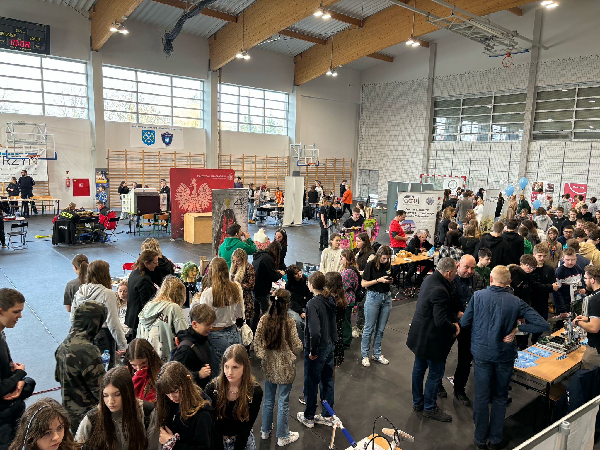 Pożarniczą z Kostrzyna. Uczniowie klas siódmych i ósmych z Gminy Kostrzyn, a także Paczkowa i Swarzędza mieli okazję zapoznać się z ofertami szkół z Poznania, Swarzędza i Środy Wlkp. Dodatkowo oferta została uzupełniona przez przedstawicieli rozmaitych zawodów. W targach łącznie uczestniczyło 33 wystawców w tym 14 szkół średnich, przedstawiciele instytucji, firm i organizacji. Znaczną grupę wystawców stanowiły służby mundurowe i ratownicze. Oprócz strażaków byli to policjanci z Komisariatu Policji w Kostrzynie oraz KMP w Poznaniu, ratownicy medyczni oraz klasy mundurowe szkół średnich.