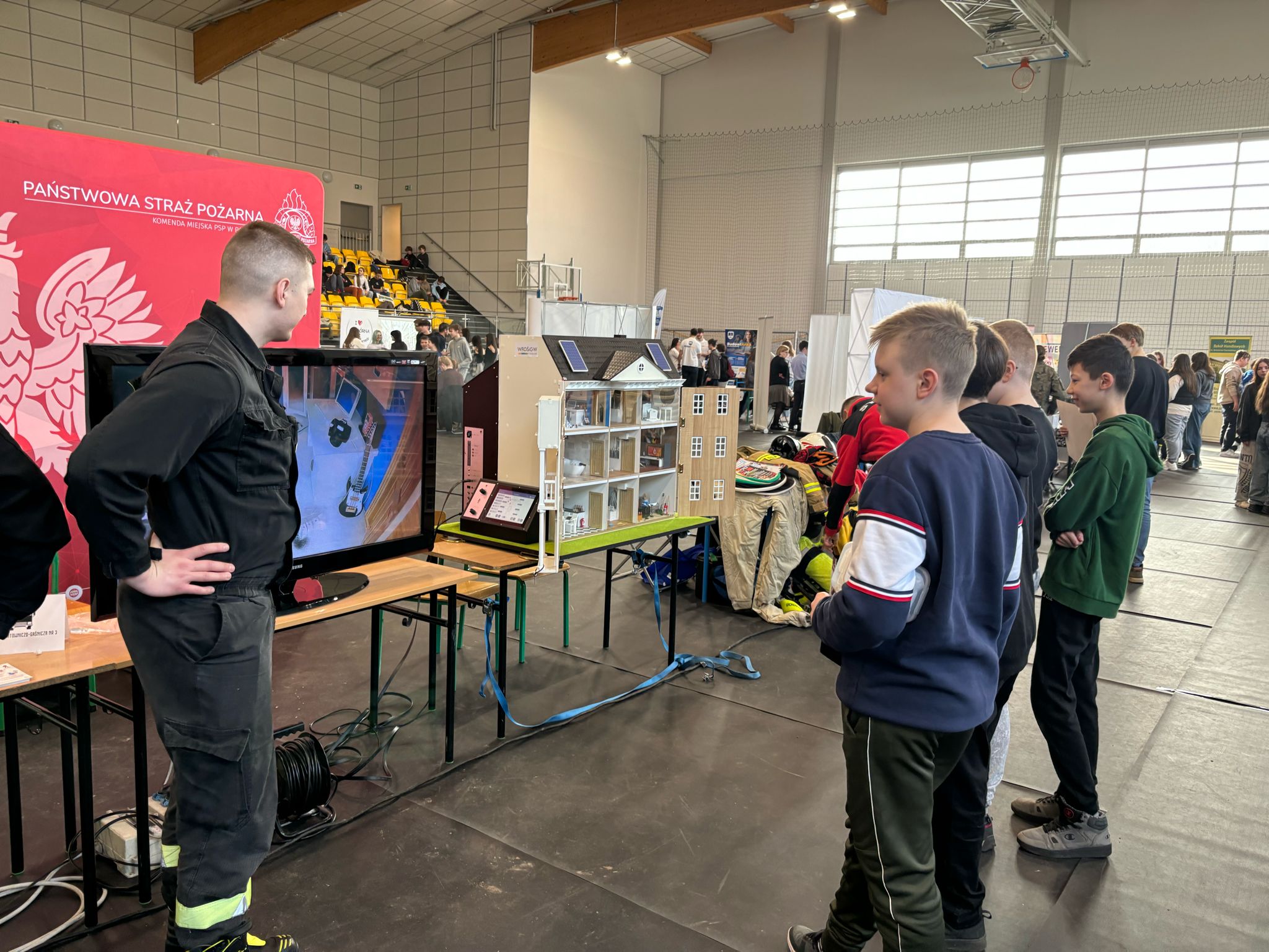 Niewątpliwie furorę na naszym stoisku robiła prezentacja symulatora zagrożeń pożarowych domu wielorodzinnego, która przykuwała uwagę zarówno młodzieży jak i dorosłych.