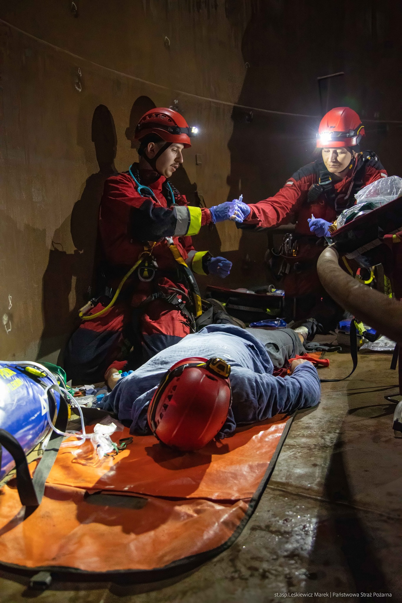 * Epizod nr 2 - ZBIORNIK 500 M3 - poszkodowany w zbiorniku z urazami po upadku. Dotarcie i ewakuacja utrudnione ze względu na bardzo ciasny otwór,