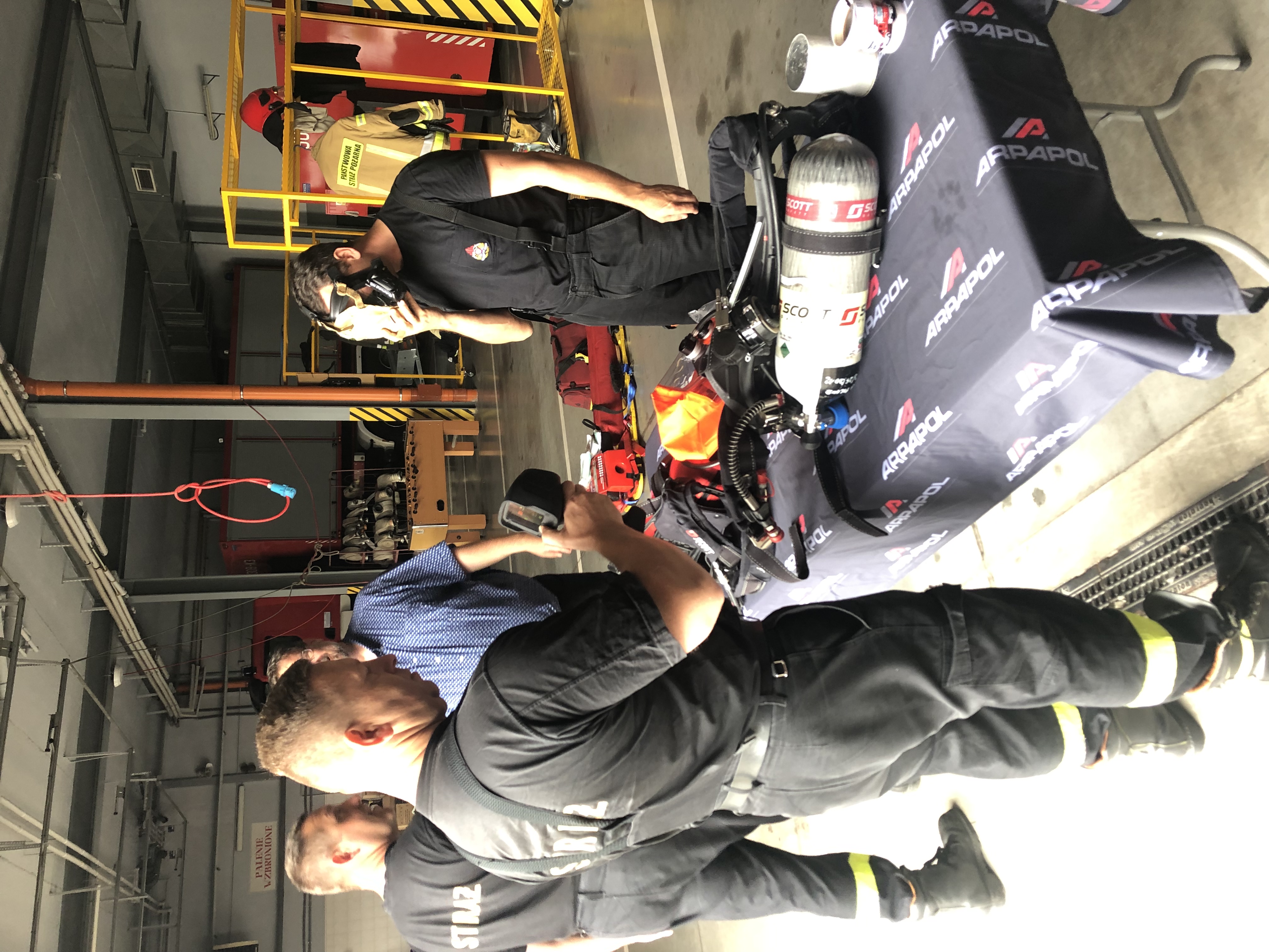 Dzięki uprzejmości pana Adama Brosa z 3M Scott Fire & Safety uczestnicy szkolenia mogli ponadto zapoznać się przetestować „w boju” sprzęt ochrony dróg oddechowych oraz kamery termowizyjne firmy SCOTT. Szczególnym zainteresowaniem cieszyły się maski typu Scott Sight z Epic3, czyli maska z wbudowanym systemem termowizyjnym oraz wzmacniaczem głosu.