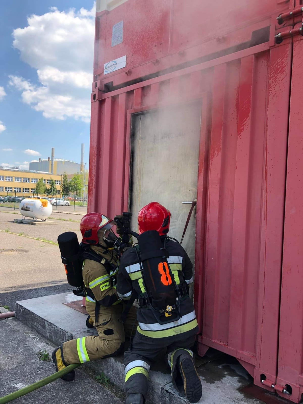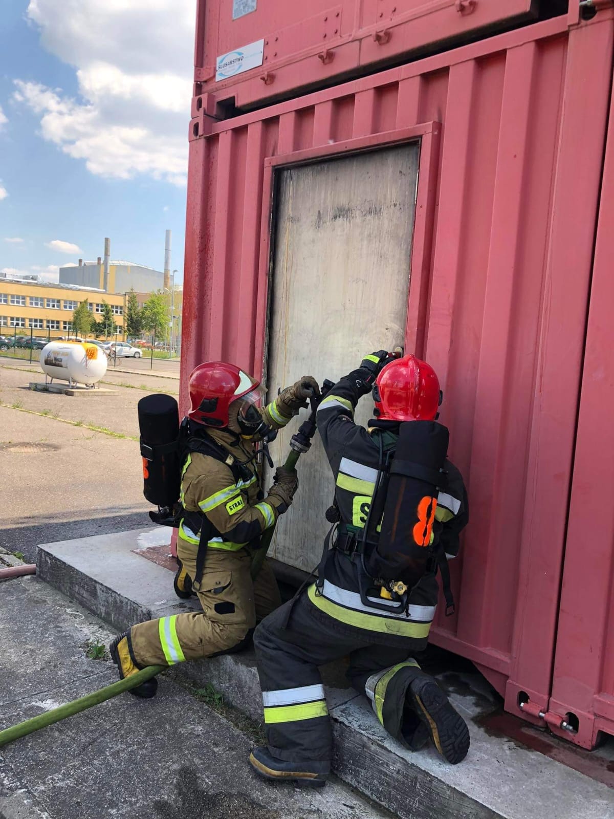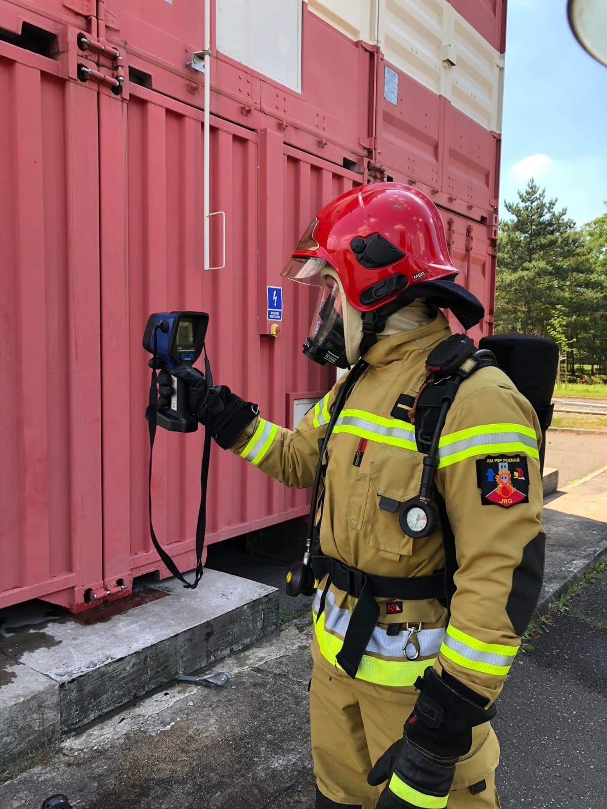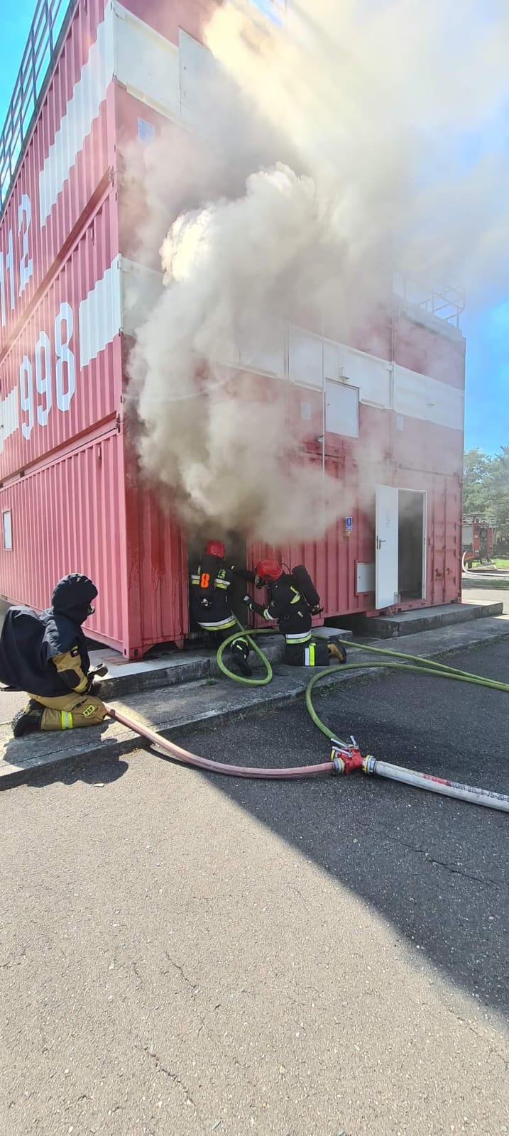 Ponadto strażacy mieli okazję utrwalić umiejętności współpracy w rocie, poruszanie się oraz wycofywanie roty z nawodnioną linią wężową w obiektach zadymionych i przeszukiwanie pomieszczeń przy użyciu kamery termowizyjnej. Zajęcia były doskonałą okazją do obserwacji zjawisk pożarowych w bezpiecznych i kontrolowanych warunkach.