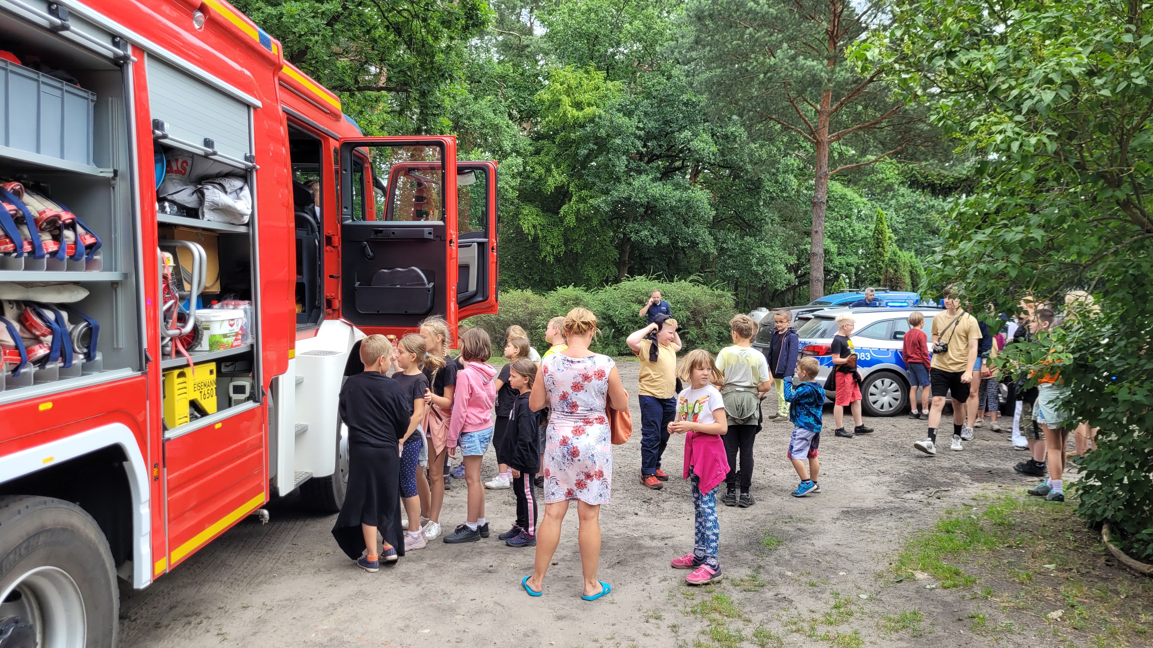 Dzieci i młodzież skorzystały również z niebywałej okazji jaką była możliwość zobaczenia pojazdów i sprzętu pożarniczego oraz radiowozów policyjnych.
