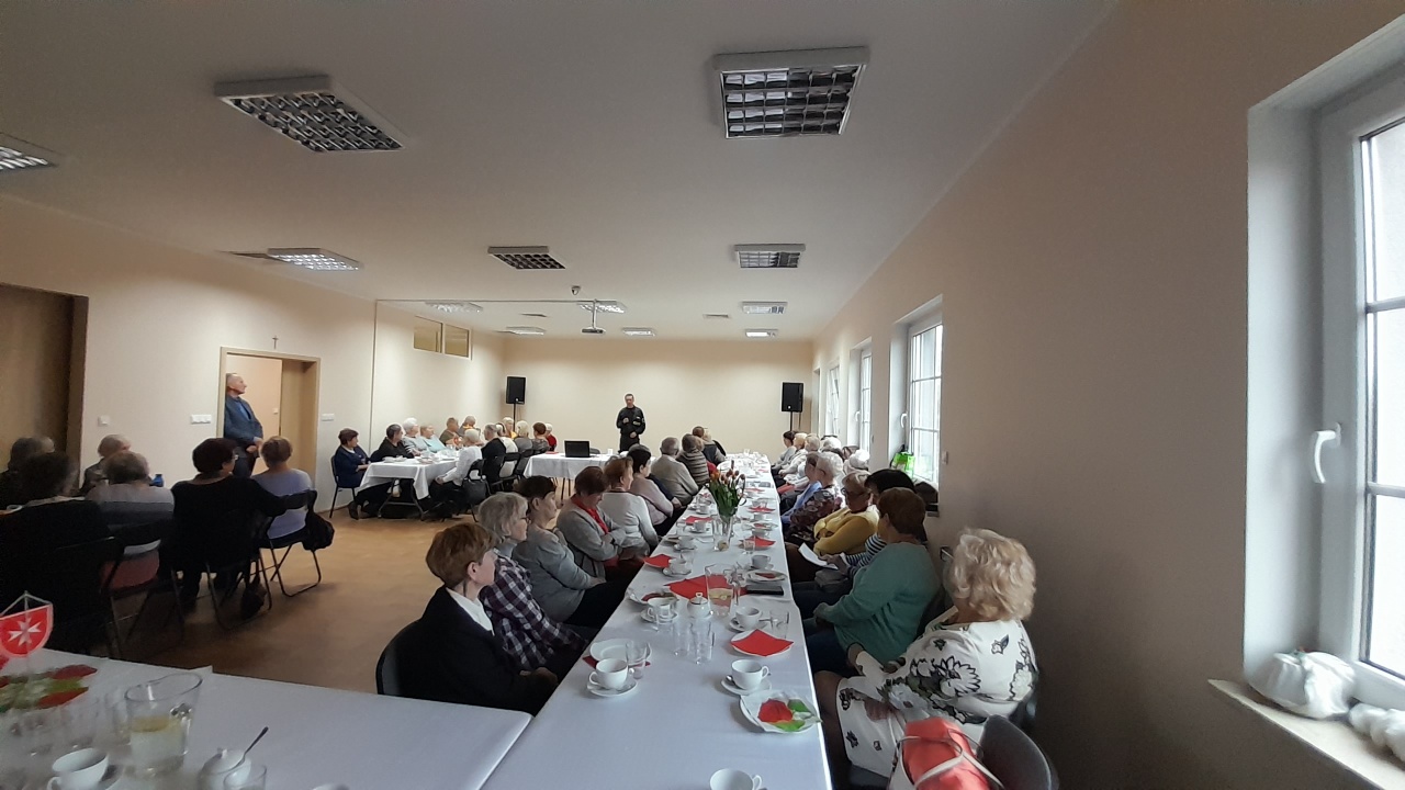 Podczas spotkania zwrócono również uwagę na zagrożenia związane z tlenkiem węgla. Strażacy podkreślili, że starsi i niepełnosprawni ludzie są szczególnie narażeni na zatrucia tlenkiem węgla ze względu na potencjalne trudności w rozpoznawaniu objawów i właściwej reakcji w celu uniknięcia zagrożenia. Wyjaśnili, że tlenek węgla jest produktem niepełnego spalania paliw i może się gromadzić w zamkniętych przestrzeniach. Seniorzy zostali poinformowani o symptomach zatrucia czadem oraz o konieczności natychmiastowego opuszczenia pomieszczenia w przypadku ich wystąpienia, a także poinformowania służb.