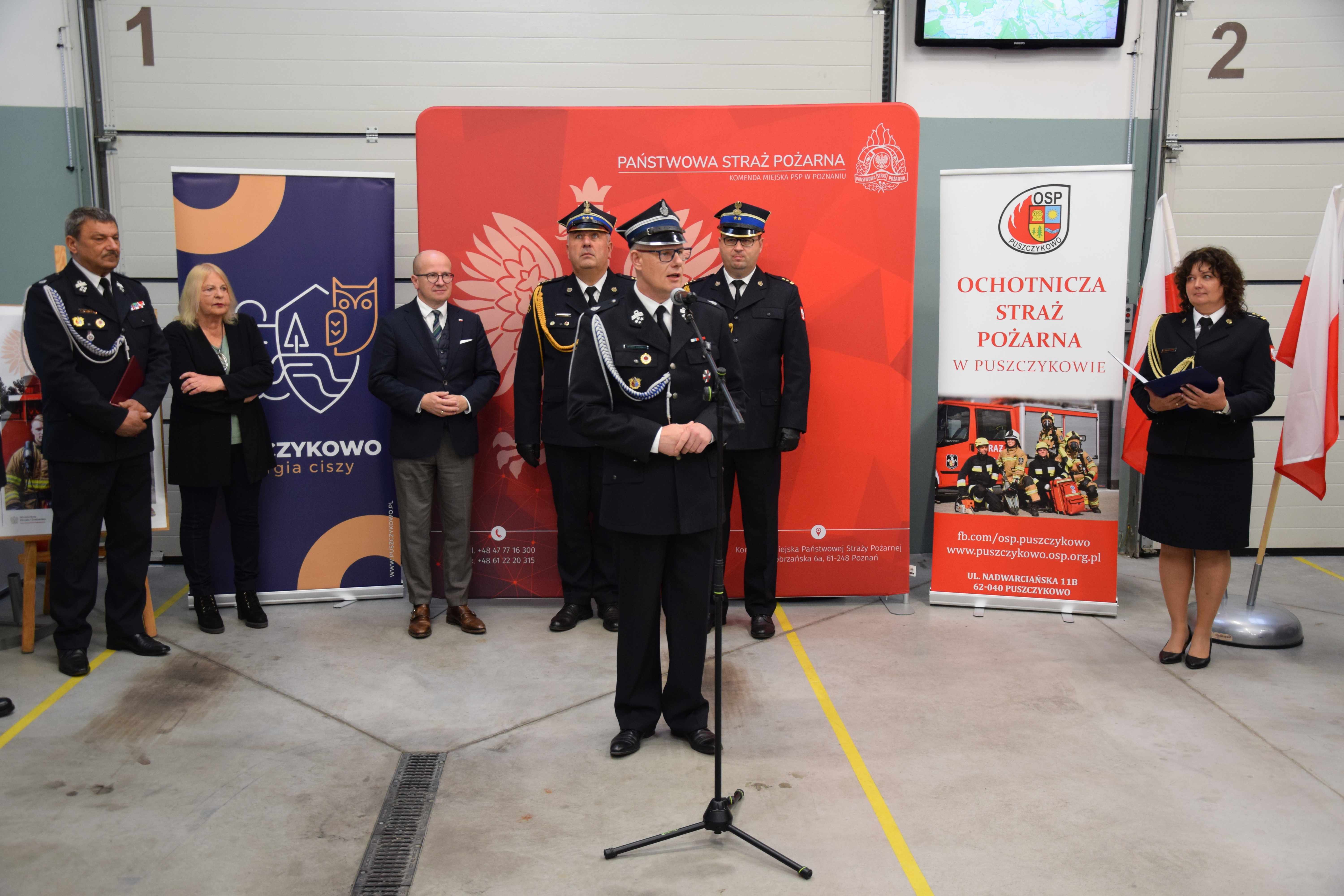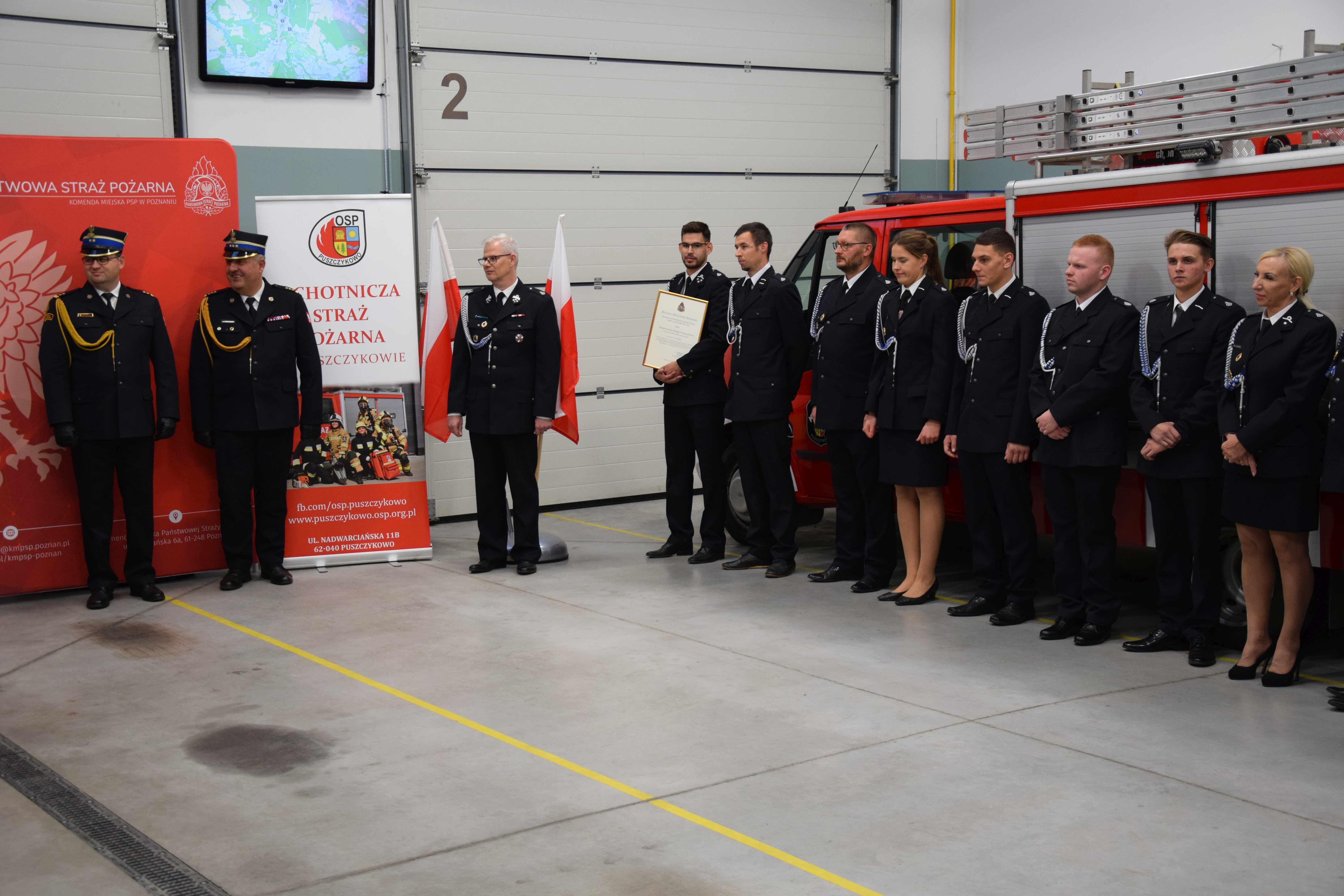 Uroczystość przeprowadzono w formie apelu który rozpoczął się złożeniem meldunku Zastępcy Wielkopolskiego Komendanta Wojewódzkiego PSP bryg. Robertowi Natunewiczowi przez dowódcę uroczystości st. kpt. Pawła Zielińskiego. Po złożeniu meldunku obecnych gości przywitał Komendant Miejski PSP w Poznaniu st.bryg. Jacek Michalak. W trakcie uroczystości odśpiewany został hymn państwowy. Akt włączenia do KSRG wręczył w imieniu Komendanta Głównego PSP gen. brygadiera. Andrzeja Bartkowiaka Zastępca Wielkopolskiego Komendanta Wojewódzkiego bryg. Robert Natunewicz. Decyzje odebrali Prezes OSP Puszczykowo: dh Gniewko Niedbała oraz Naczelnik dh Jakub Haściło. Ponadto w uroczystości udział wzięli: Poseł na Sejm Bartłomiej Wróblewski, Prezes Zarządu Oddziału Powiatowego ZOSP RP dh Wacław Zajączkowski, Przewodnicząca Komisji Spraw Społecznych UMiG Puszczykowa Elżbieta Bijaczewska, delegacje z OSP Mosina i OSP Pecna.