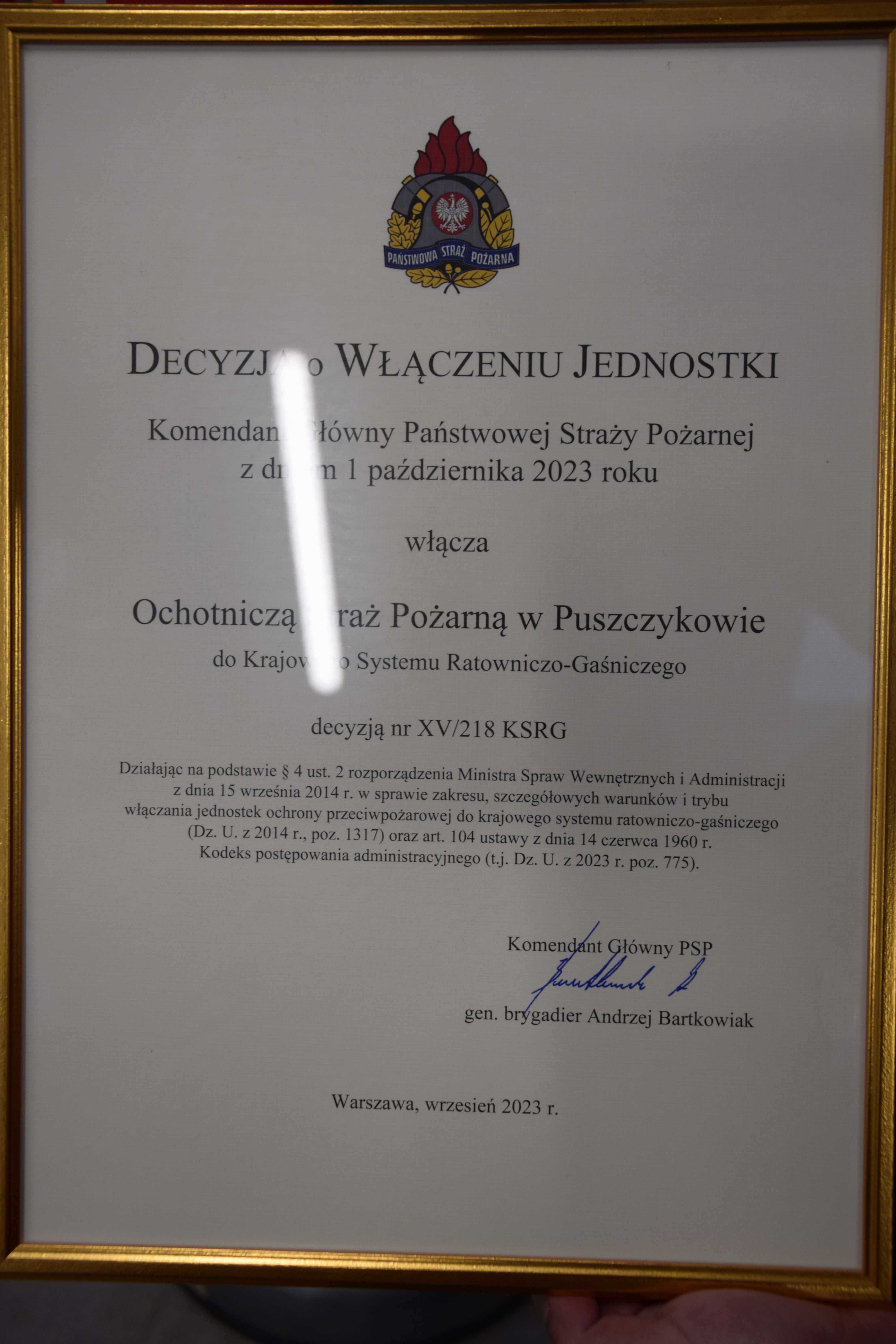 WŁĄCZENIE OSP PUSZCZYKOWO DO KSRG