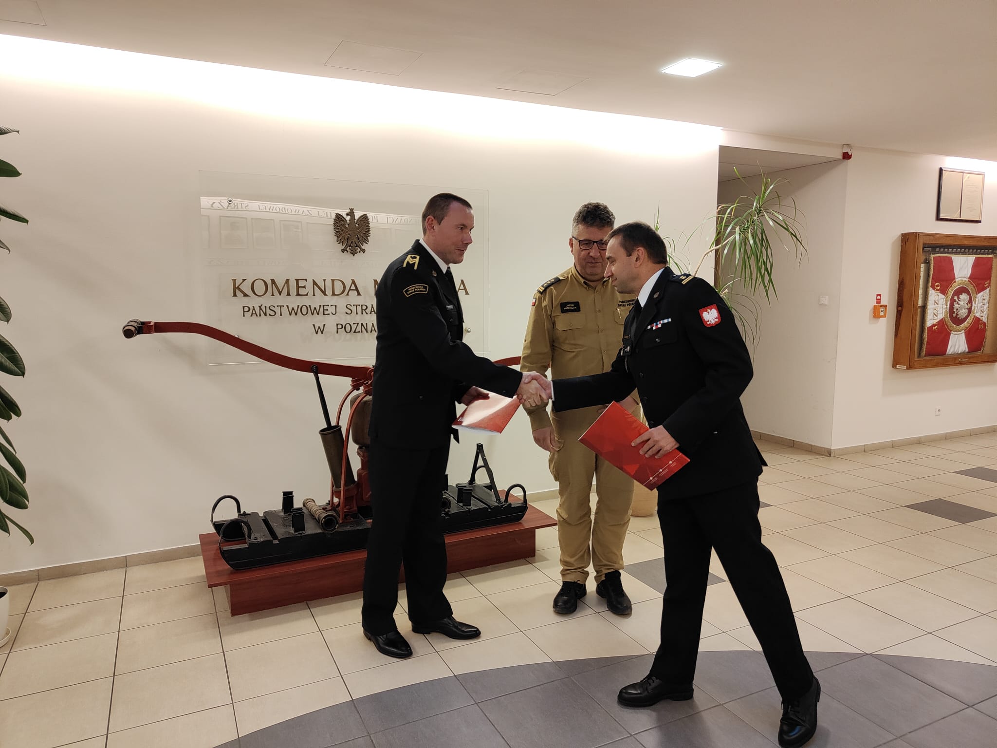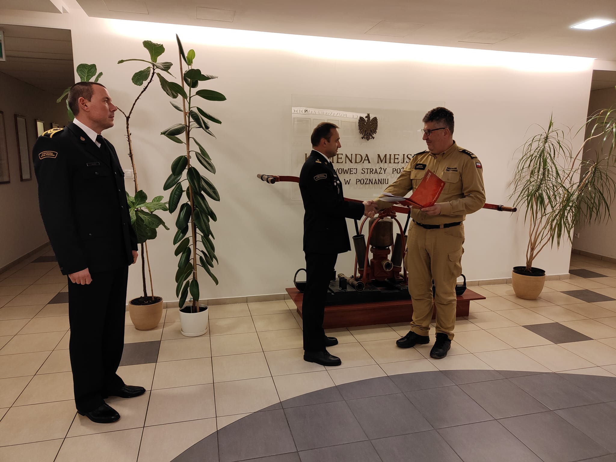 Komendant Miejski PSP w Poznaniu podziękował funkcjonariuszom za wzorowe wykonywanie obowiązków służbowych orz długoletnią służbę w poznańskim garnizonie.