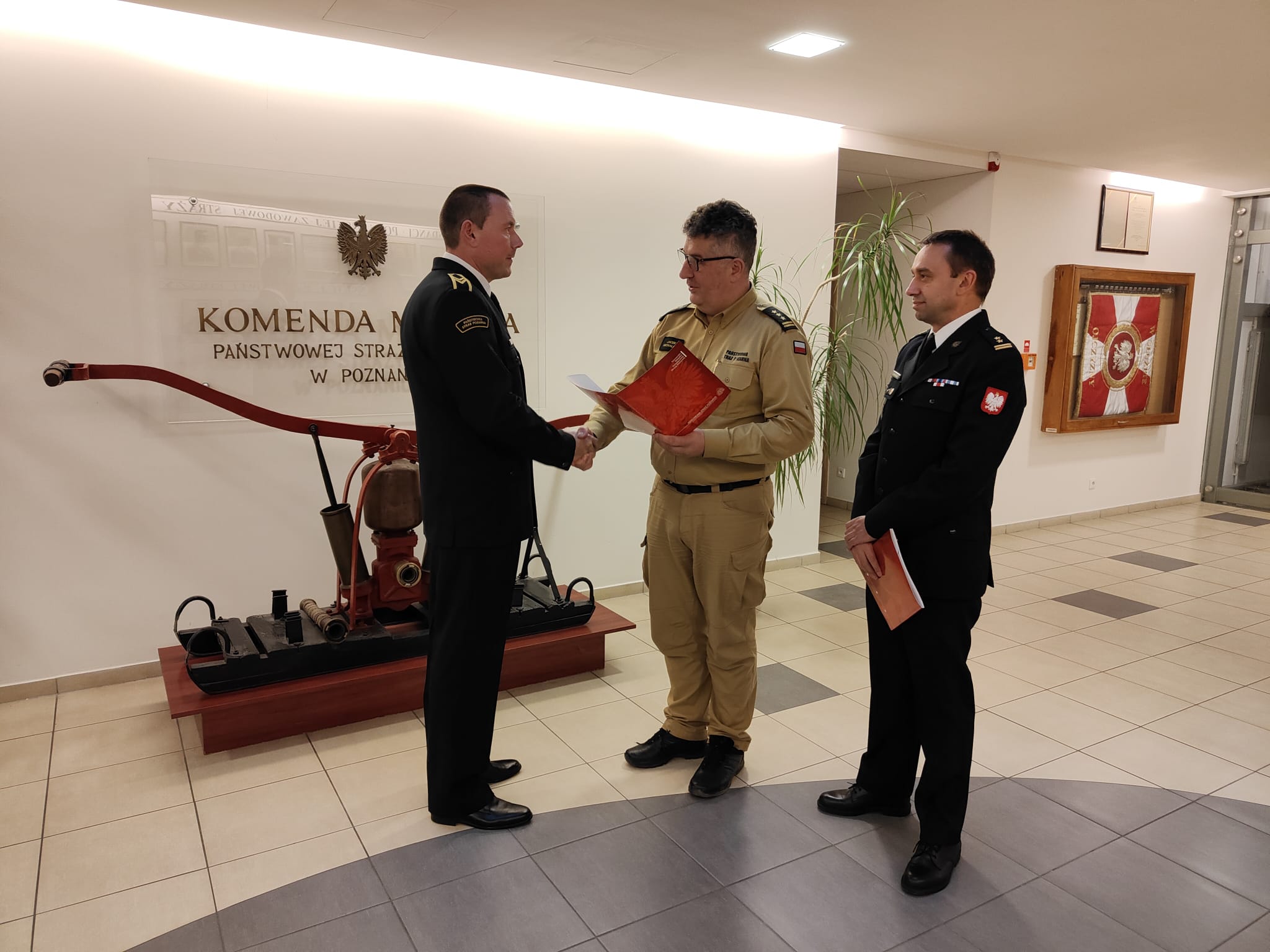 5 marca 2024 roku Komendant Miejski Państwowej Straży Pożarnej w Poznaniu - st. bryg. Jacek Michalak wręczył nagrodę jubileuszową za 30 lat pracy i służby bryg. Grzegorzowi Banaszakowi - Dowódcy Jednostki Ratowniczo-Gaśniczej nr 3.