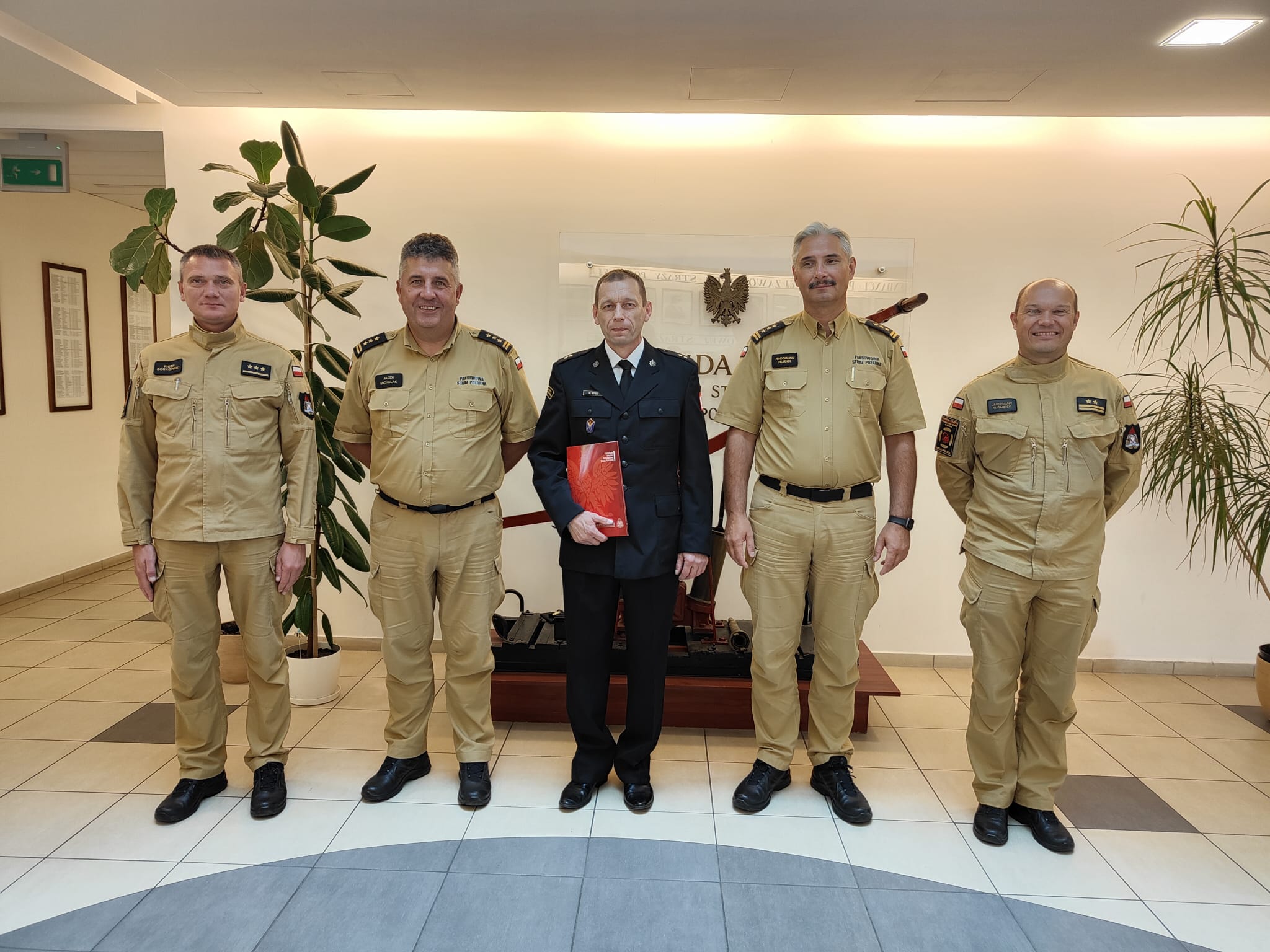 W dniu 14 sierpnia 2023r. Komendant Miejski Państwowej Straży Pożarnej w Poznaniu st. bryg. Jacek Michalak w obecności Zastępcy Komendanta – st.bryg. Radosława Hurnika oraz Dowódcy Jednostki Ratowniczo-Gaśniczej nr 4 bryg. Jarosława Kuśmirka oraz Zastępcy Dowódcy JRG 4 – kpt. Piotra Borkowskiego wręczył nagrodę jubileuszową za 25 lat służby – mł.kpt. Radosławowi Stecowi.