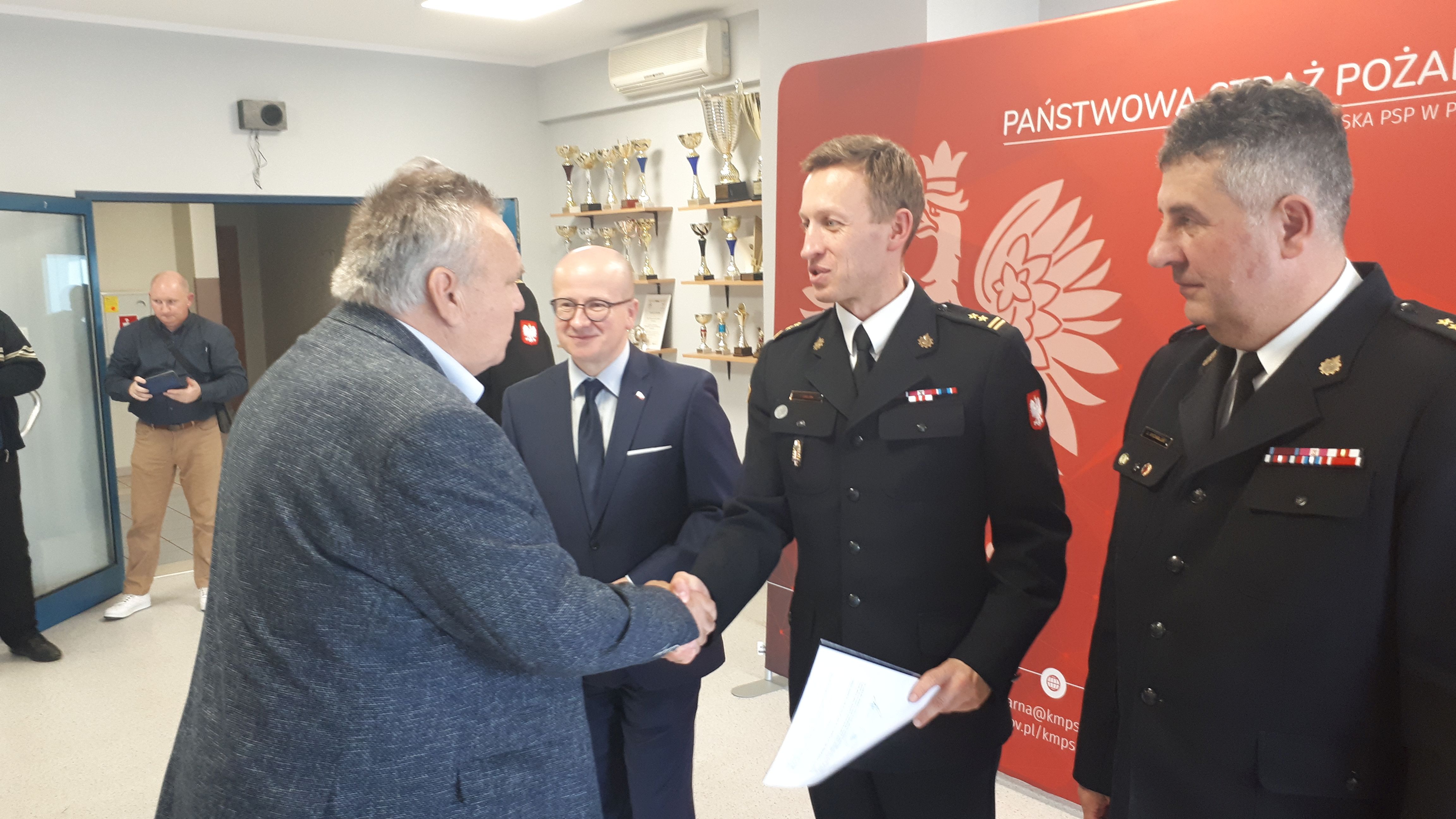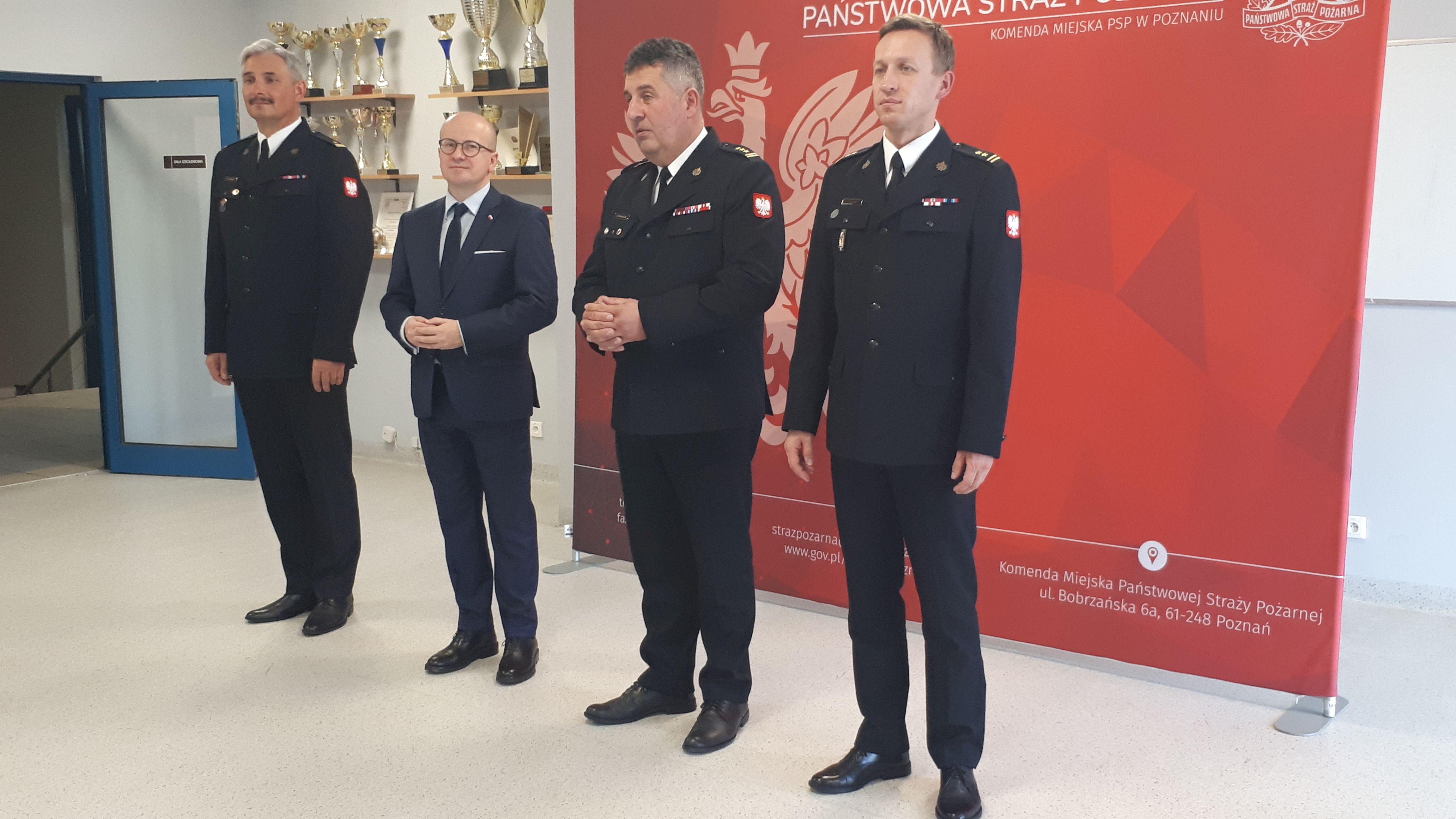 Decyzje o przyznaniu świadczenia ratowniczego dla strażaków ratowników wręczali: Poseł na Sejm RP – Bartłomiej Wróblewski, bryg. Tomasz Grelak - Zastępca Wielkopolskiego Komendanta Wojewódzkiego Państwowej Straży Pożarnej w Poznaniu, st. bryg. Jacek Michalak - Komendant Miejski Państwowej Straży Pożarnej w Poznaniu wraz z zastępcą - mł. bryg. Radosławem Hurnikiem.