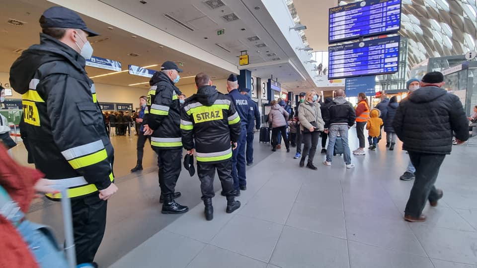 Dzisiaj, Komendant Miejski PSP w Poznaniu st. bryg. Jacek Michalak wraz z Zastępcą mł. bryg. Radosławem Hurnikiem wizytowali logistyczne punkty recepcyjne oraz punkty informacyjne jakie zostały stworzone m.in. na dworcu PKP.
