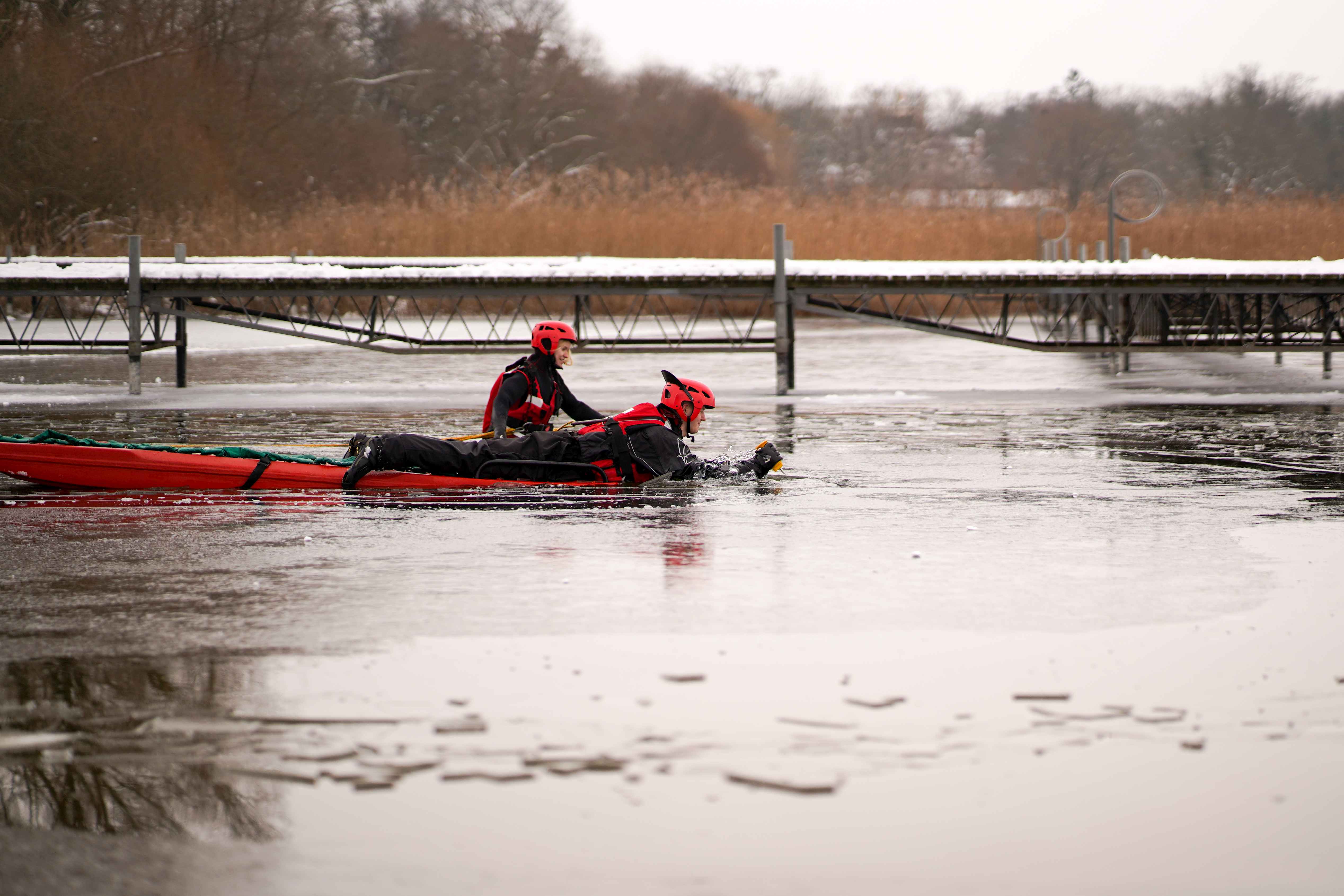 Zgodnie z poleceniem Komendanta Miejskiego w dniach 15-17 lutego wszystkie zmiany służbowe z Jednostki Ratowniczo-Gaśniczej nr 9 wraz z druhami z okolicznych Ochotniczych Straży Pożarnych przeprowadziły ćwiczenia z ratownictwa lodowego. Warunki pogodowe, które panowały w tych dniach pozwoliły przećwiczyć różne scenariusze możliwych zdarzeń na lodzie. Ćwiczenia na akwenach poprzedzone zostały wstępem teoretycznym, co pozwoliło wszystkim uczestnikom ugruntować swoją wiedzę z tego zakresu. Strażacy ćwiczyli na różnych akwenach i ciekach wodnych (Jezioro Strykowskie, Jezioro Łódzko-Dymaczewskie, rzeka Warta), dzięki czemu dodatkowo zorientowali się w grubości pokrywy lodowej w różnych miejscach rejonu chronionego. Jednostki Ochotniczych Straży Pożarnych, które ćwiczyły ze strażakami z JRG to OSP Strykowo, OSP Stęszew, OSP Pecna oraz OSP Radzewice.