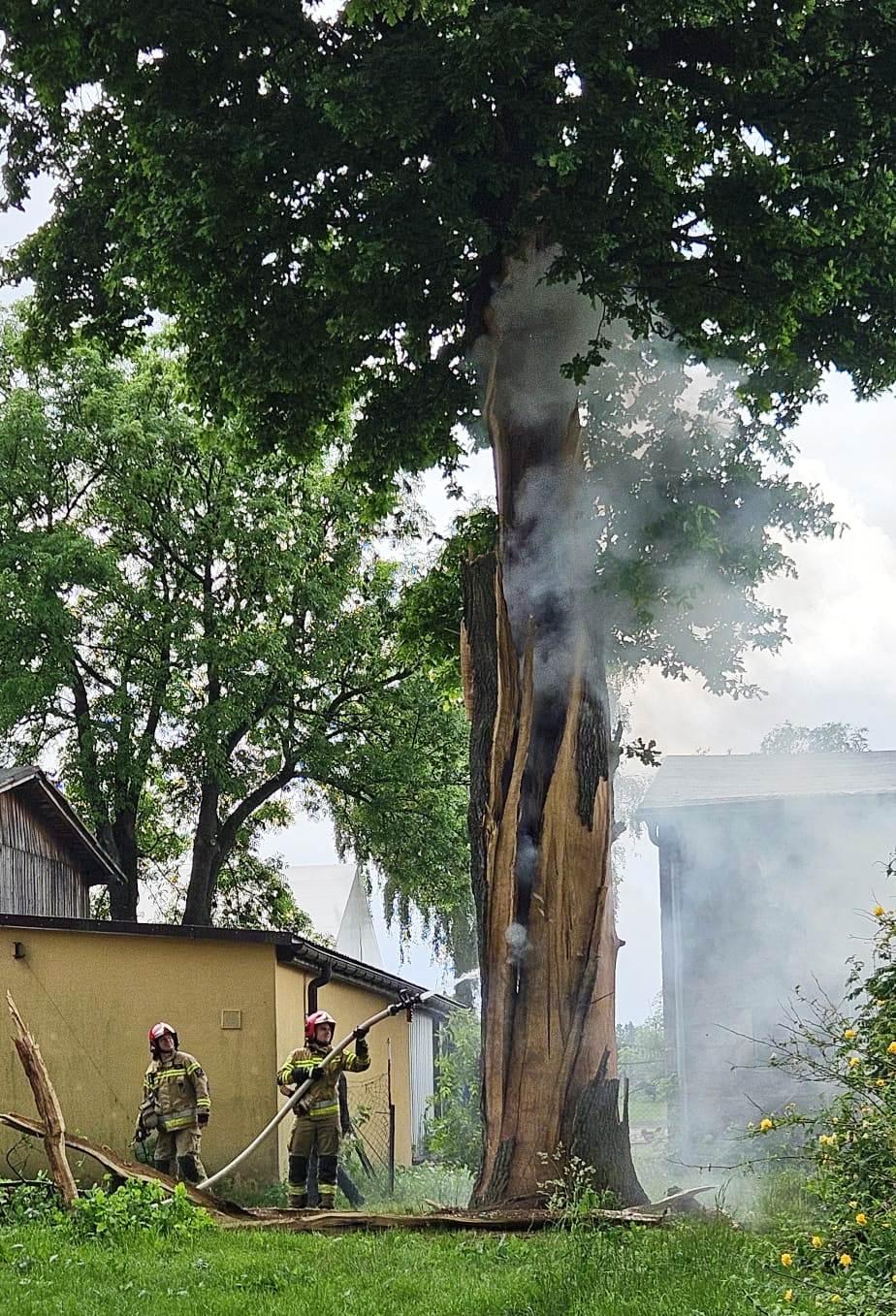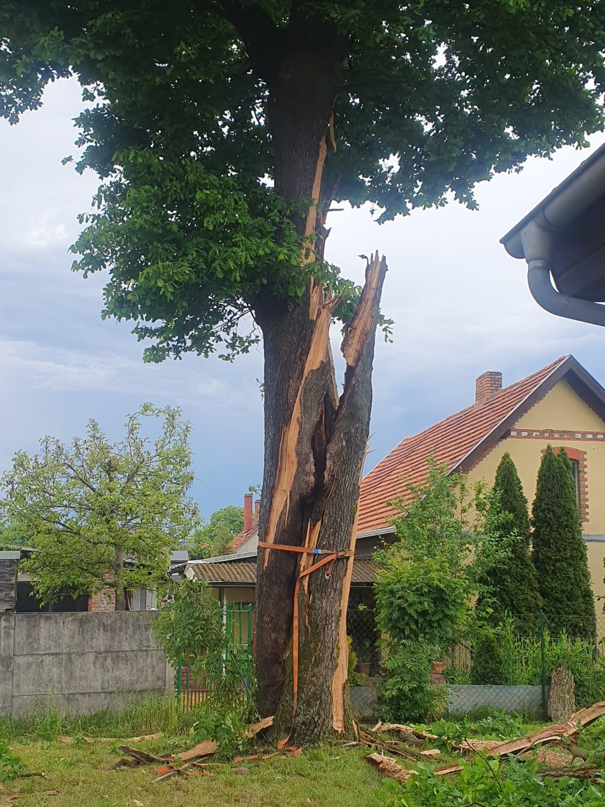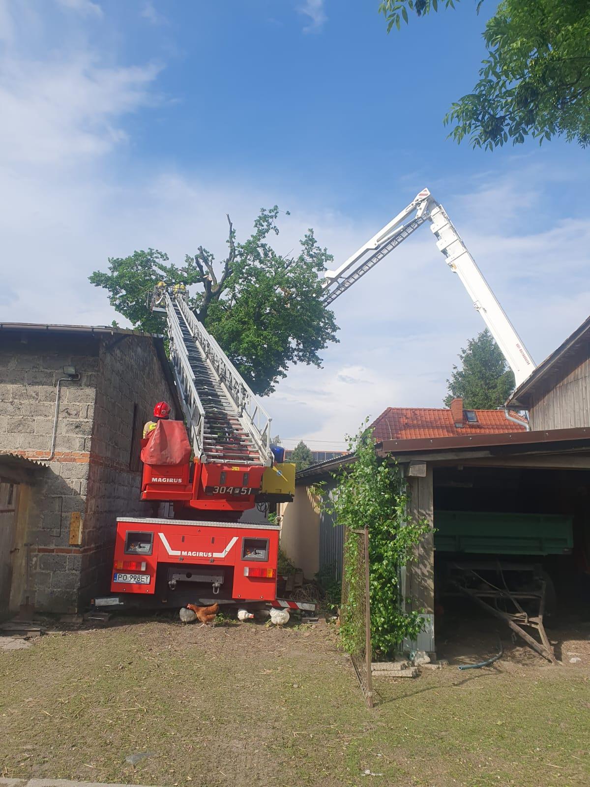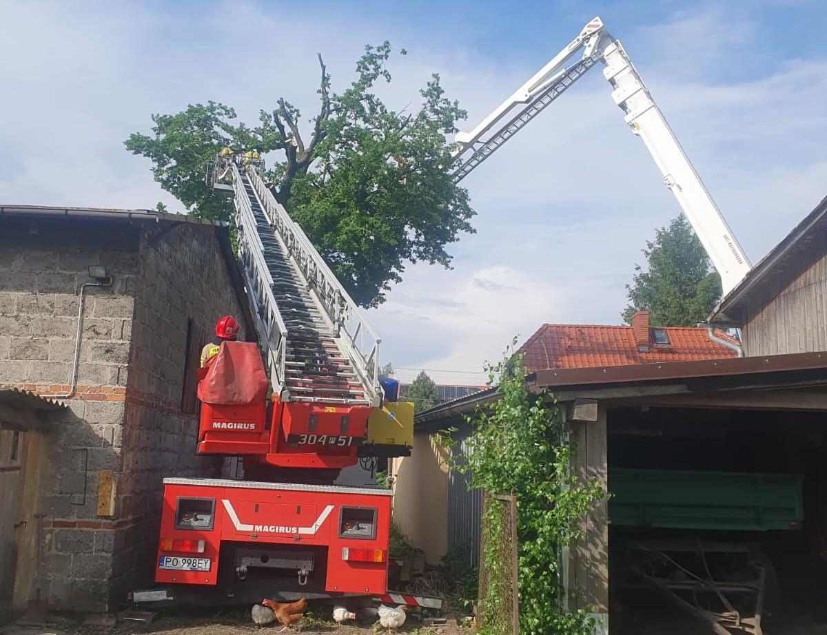 W niedzielę, 19 maja, nad Poznaniem i okolicami przeszła burza z obfitymi opadami deszczu. Zastępy Jednostki Ratowniczo-Gaśniczej nr 5 zostały zadysponowane do pożaru drzewa, które zostało uderzone przez piorun przy ul. Morasko. Po dojeździe na miejsce zdarzenia ratownicy potwierdzili fakt zaistnienia pożaru jednak dodatkowo okazało się, że w wyniku uderzenia gromu drzewo zostało rozszczepione w pniu i zagrażało przylegającym zabudowaniom. Po ugaszeniu pożaru ratownicy przystąpili do usunięcia zagrożenia dla mieszkańców i ich dobytku. Ponieważ wysokie na około 20 m drzewo posiadało rozłożystą koronę, pęknięty pień był o średnicy około 3 m i na dodatek umiejscowione było w gęstej zabudowie potrzebne było wsparcie kolegów z JRG nr 4, którzy wspomogli działania naszych strażaków.