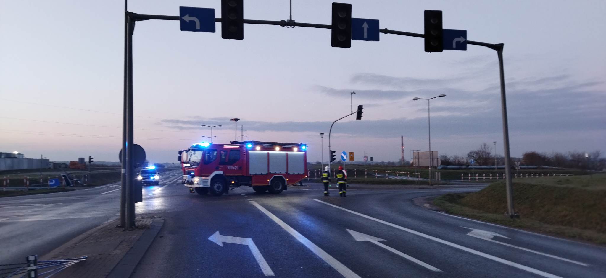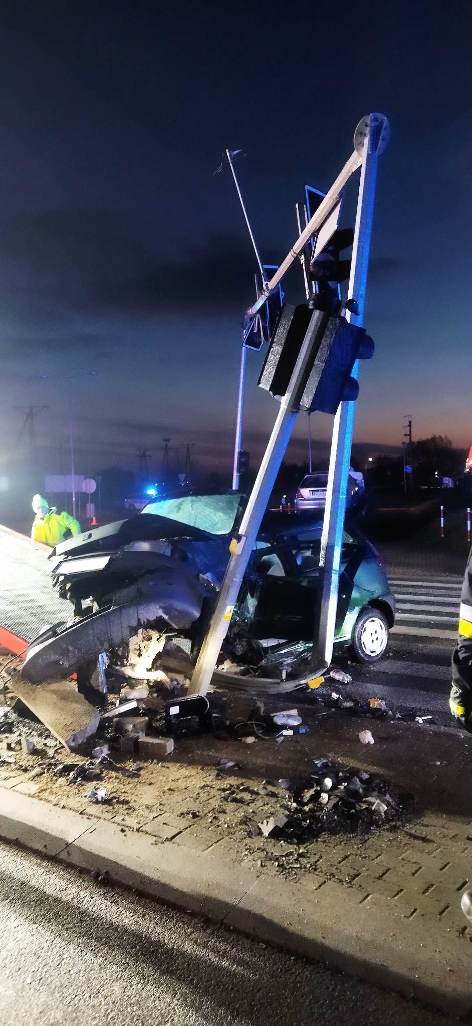 Dnia 08.04.2023 r. około godz. 3:20 do Stanowiska Kierowania Komendanta Miejskiego Państwowej Straży Pożarnej w Poznaniu wpłynęło zgłoszenie o wypadku samochodowym na obwodnicy Murowanej Gośliny. Do zdarzenia zadysponowane zostały dwa zastępy: GBA 2,5/16 i GCBA 6/40 z Jednostki Ratowniczo Gaśniczej nr 8 oraz jeden zastęp GBA 2,5/16 z Ochotniczej Straży Pożarnej w Promnicach. Po przybyciu na miejsce zdarzenia i przeprowadzeniu rozpoznania okazało się, że w wypadku na skrzyżowaniu drogi wojewódzkiej nr 196 i 187 uczestniczyły dwa samochody osobowe marki Honda oraz Fiat. Działania straży pożarnej polegały na zabezpieczeniu miejsca zdarzenia, udzieleniu kwalifikowanej pierwszej pomocy poszkodowanym w wypadku, odłączeniu zasilania w pojazdach oraz kierowaniu ruchem do czasu przybycia policji. Na czas trwania akcji droga nr 196 została zamknięta, a uszkodzona w wyniku wypadku sygnalizacja świetlna całkowicie zdemontowana. Osoby poszkodowane zostały przekazane przybyłemu na miejsce zespołowi ratownictwa medycznego, jedna z nich trafiła na obserwację do szpitala.