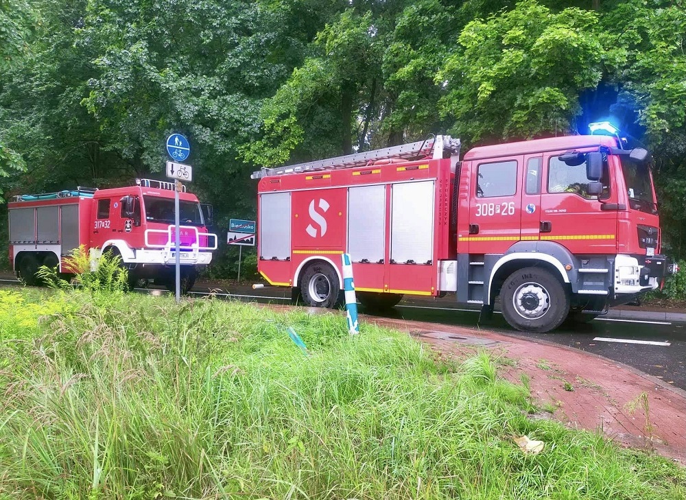 Po przybyciu na miejsce zdarzenia strażacy zastali samochód osobowy poza drogą, który uderzył w drzewo. Kierująca pojazdem opuściła go przed ich przybyciem.
