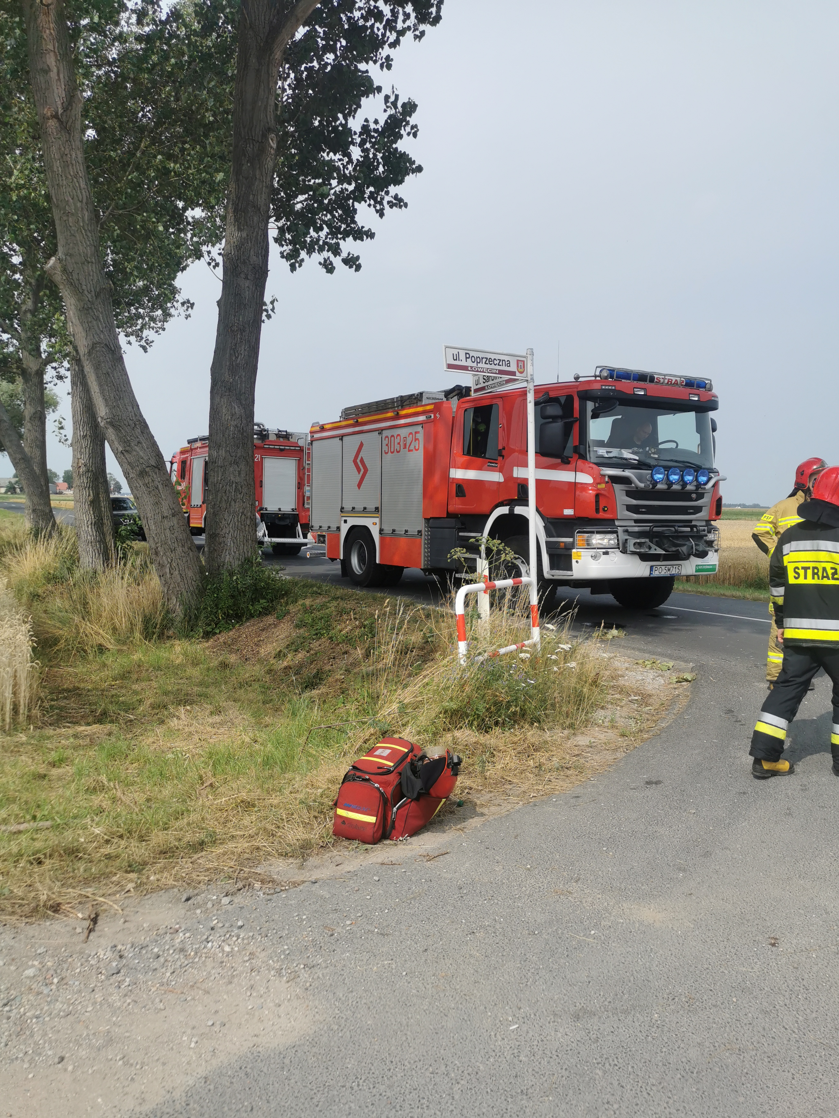 Stanowisko Kierowania Komendanta Miejskiego w Poznaniu, otrzymało zgłoszenie o wypadku drogowym w miejscowości Łowęcin przy ulicy Poprzecznej.
