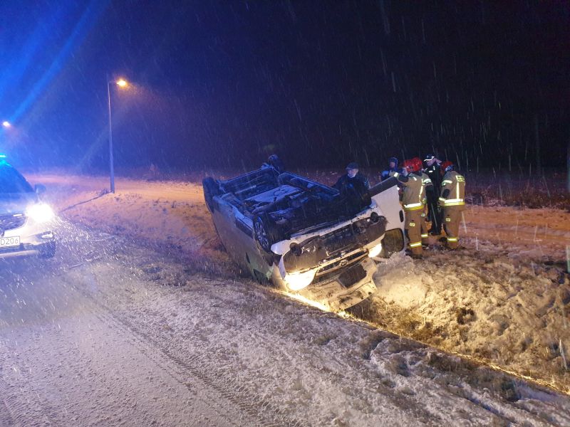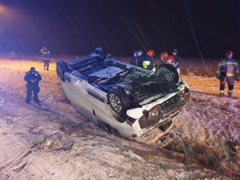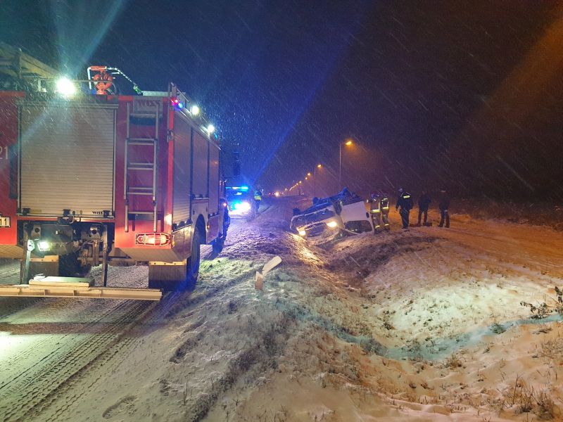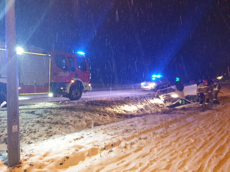 Działania straży pożarnej polegały na zabezpieczeniu miejsca zdarzenia, zabezpieczeniu pojazdu oraz kierowaniu ruchem. Na całe szczęście kierujący pojazdem nie wymagał pomocy Pogotowia. Warunki na drodze były bardzo trudne w związku z intensywnymi opadami śniegu.