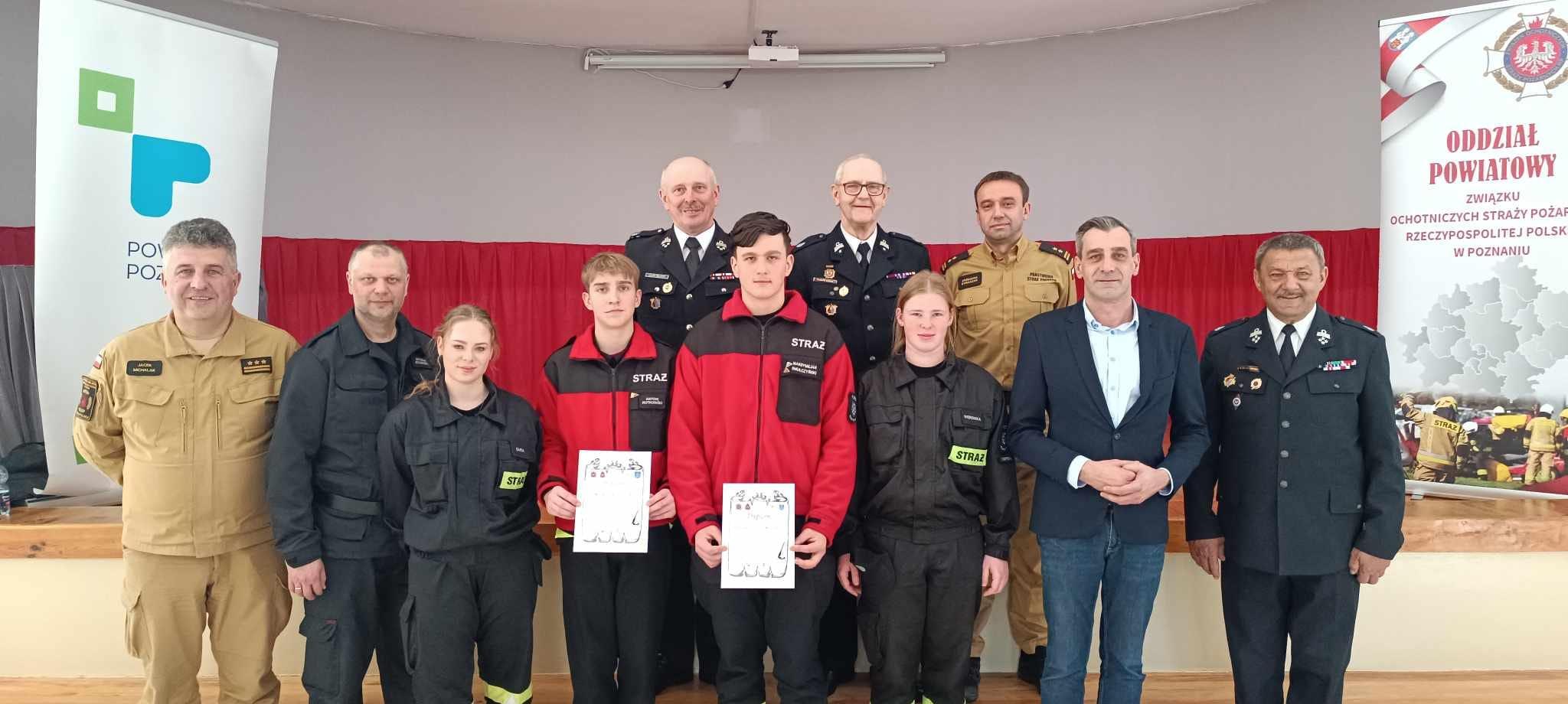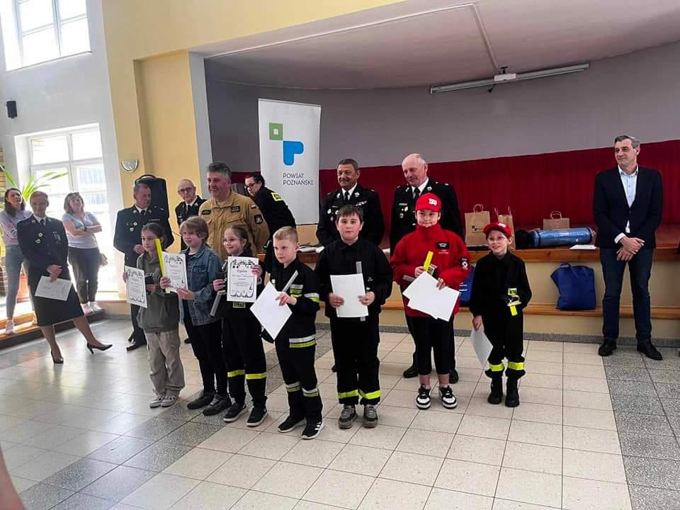 Uczestnicy otrzymali dyplomy oraz nagrody rzeczowe, które wręczyli st. bryg. Jacek Michalak - Komendant Miejski Państwowej Straży Pożarnej w Poznaniu, druh Wacław Zajączkowski - Prezes Zarządu Oddziału Powiatowego Związku Ochotniczych Straży Pożarnych RP, Pan Szymon Matysek - Burmistrz Gminy Kostrzyn, Pan Waldemar Biskupski - V-ce Burmistrz Gminy Kostrzyn oraz druh Ryszarda Kubiak – Członek Zarządu Głównego Związku Ochotniczych Straży Pożarnych RP. Zwycięzcy poszczególnych grup będą reprezentowali powiat na szczeblu wojewódzkim w Ogólnopolskim Turnieju Wiedzy Pożarniczej pod nazwą „Młodzież Zapobiega Pożarom”. Wszystkim uczestnikom serdecznie gratulujemy, a zwycięzcom życzymy powodzenia na kolejnym etapie!