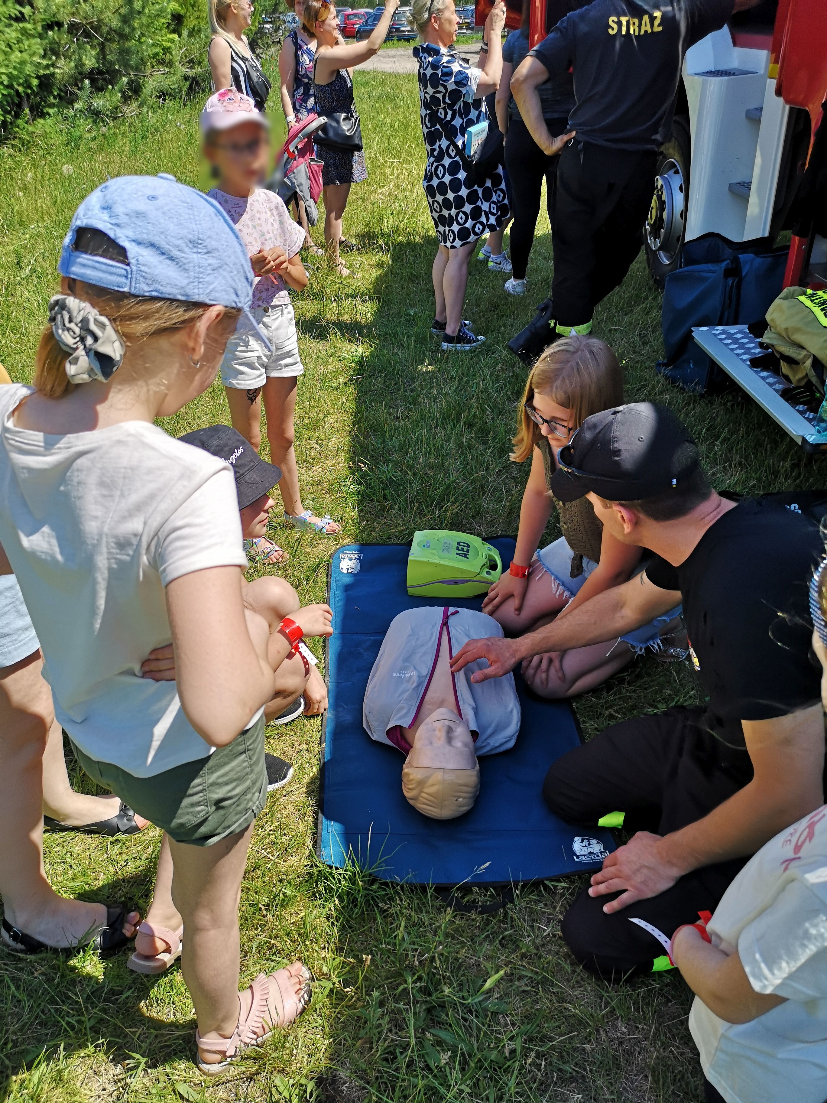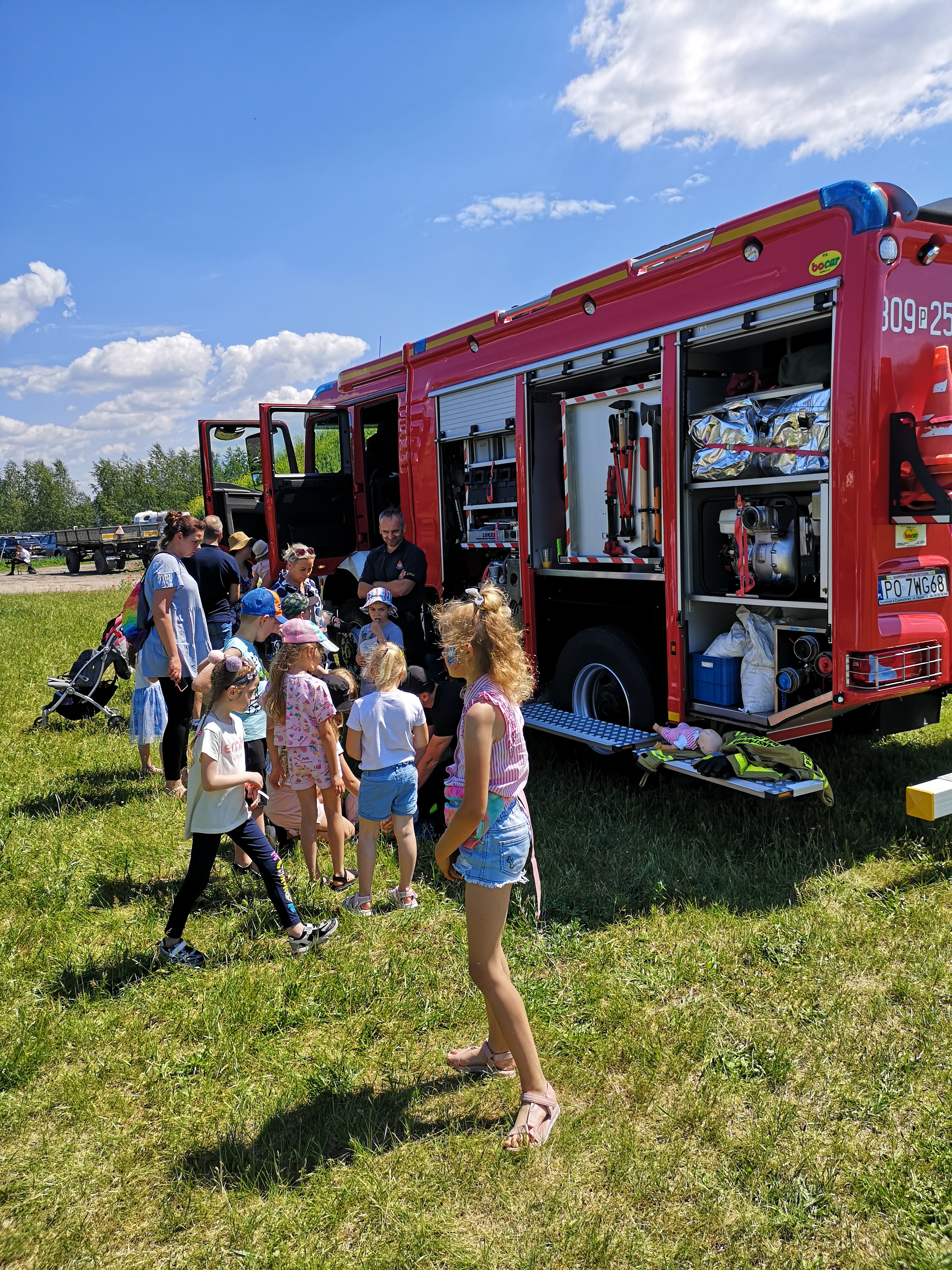 Opowiedziano również w jaki sposób zareagować na zagrożenia zdrowia lub życia oraz poruszono aspekty bezpieczeństwa przed zbliżającymi się letnimi wakacjami. Wszyscy chętni mogli przymierzyć ubranie specjalne i hełm strażacki, a dorośli mieli okazja sprawdzić „na własnej skórze” ile waży aparat ochrony układu oddechowego. Dodatkowo przekazano niezbędny zasób wiedzy na temat profilaktyki pożarowej.