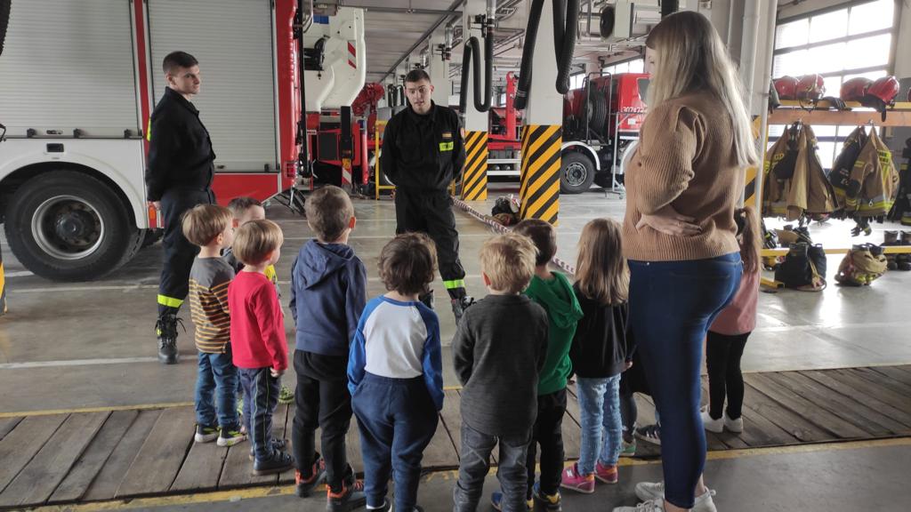 W październiku na Jednostce Ratowniczo-Gaśniczej Nr 7 wznowiono zajęcia w Sali edukacyjnej OGNIK. Całość prezentacji rozpoczęła się jak zwykle wizytą w garażu podziału bojowego, gdzie dzieci mogły zapoznać się ze sprzętem używanym w realnych działaniach ratowniczo - gaśniczych. Następnie zastęp dzielnych przedszkolaków udał się do sali edukacyjnej, na niezmiernie ciekawe zajęcia o tematyce szeroko rozumianego bezpieczeństwa i prawidłowego zachowania w sytuacjach kryzysowych. Przypomniano dzieciom podstawy udzielania pierwszej pomocy oraz wspomniano również jak ważne jest dbanie o nasze środowisko. Na koniec zajęć każdy mały uczestnik otrzymał dyplom o ukończeniu szkolenia z ochrony przeciwpożarowej. Zajęcia jak zwykle cieszyły się ogromnym zainteresowaniem.