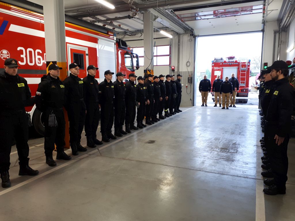 Odbyła się uroczysta zmiana służby, podczas której st. bryg. Jarosław Zamelczyk wręczył nagrody Komendanta Głównego Państwowej Straży Pożarnej strażakom zaangażowanym w realizację dostaw samochodów specjalistycznych dla „poznańskiej szóstki”.