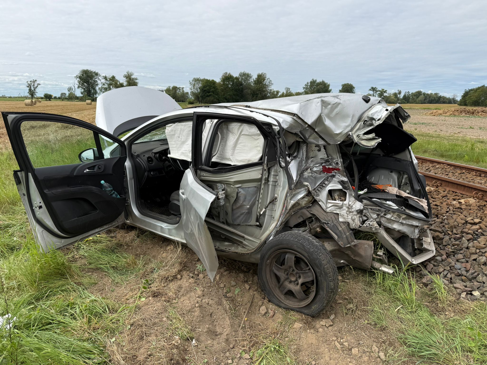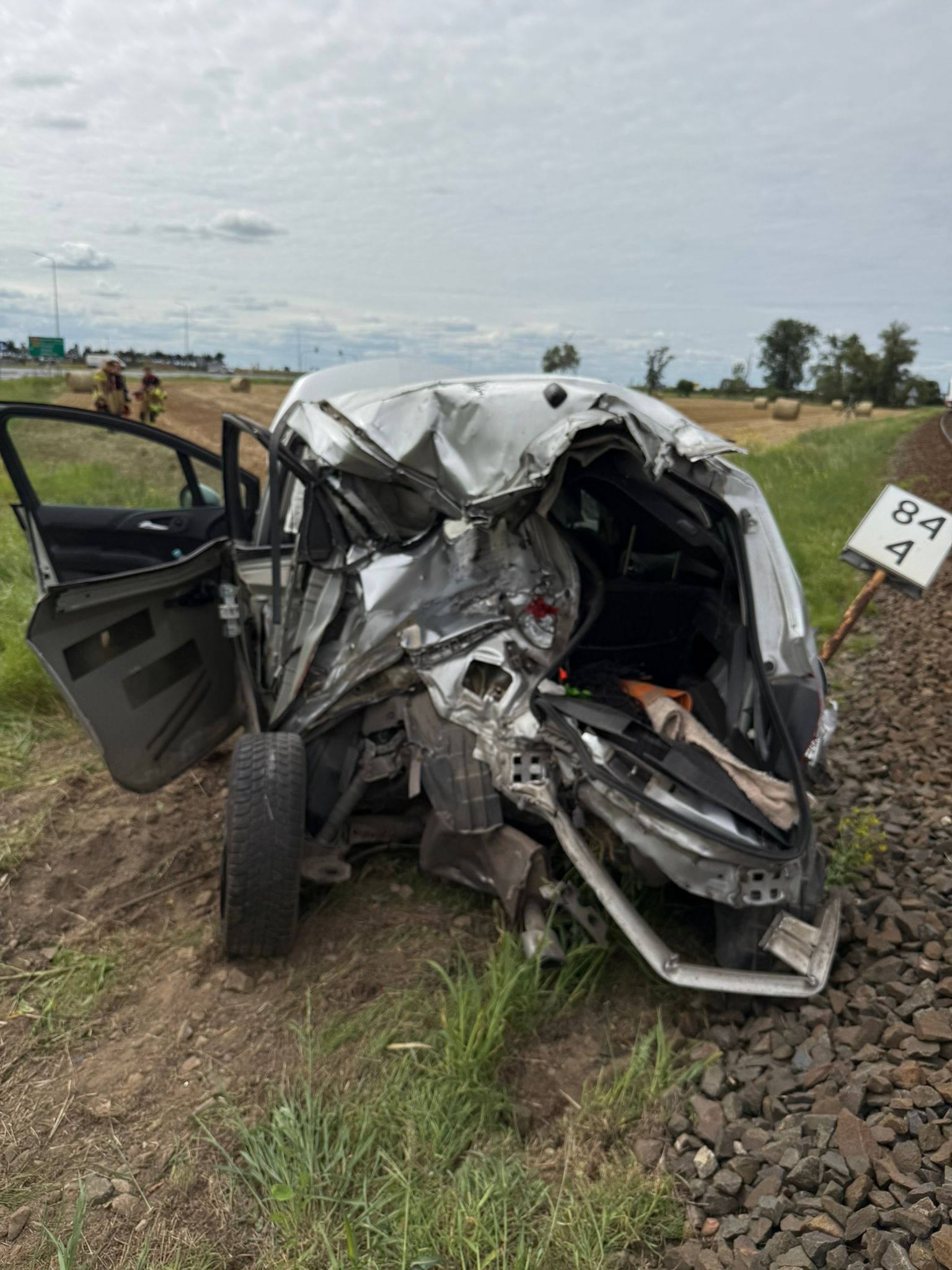 Po przybyciu na miejsce pierwszych zastępów jednostek ochrony przeciwpożarowej stwierdzono, że doszło do zderzenia auta osobowego z szynobusem na strzeżonym przejeździe kolejowym.