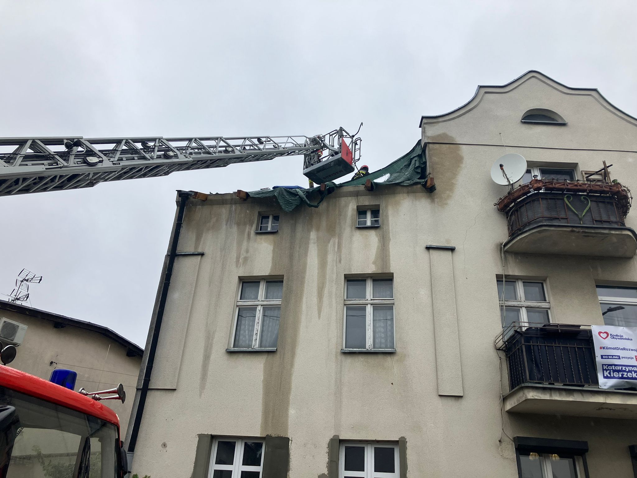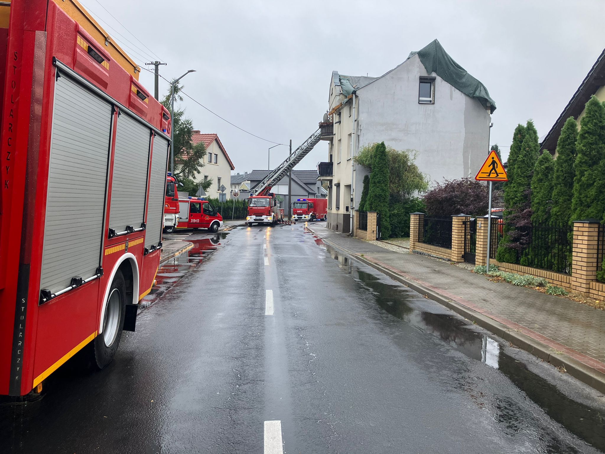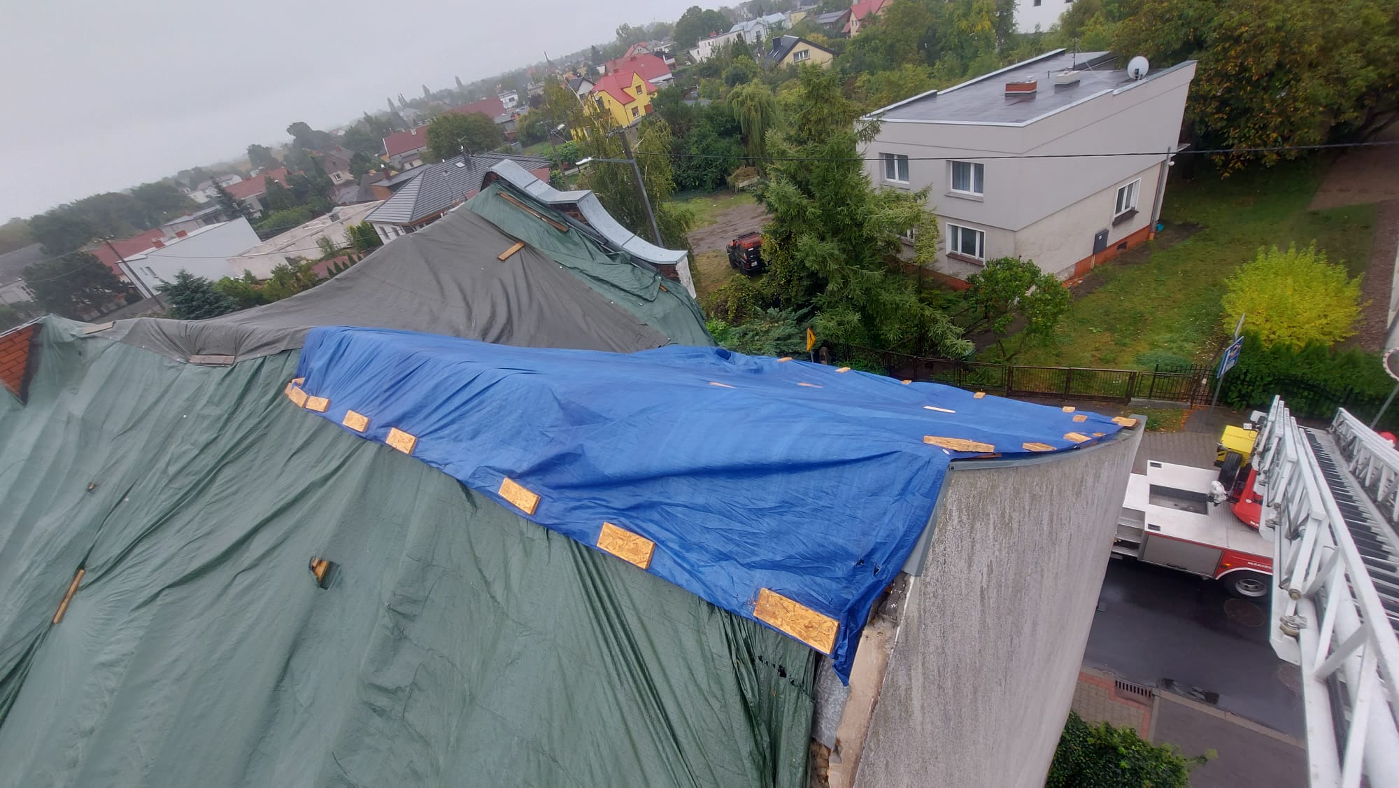 Dnia 7 października w godzinach przedpołudniowych do Stanowiska Kierowania Komendanta Miejskiego w Poznaniu wpłynęło zgłoszenie dotyczące pomocy mieszkańcom domu wielorodzinnego w Tarnowie Podgórnym przy ulicy Rokietnickiej. Po przybyciu na miejsce zdarzenia pierwszych zastępów okazało się, że tymczasowe poszycie dachu z powodu niesprzyjających warunków atmosferycznych ( porywisty wiatr) uległo zniszczeniu.
