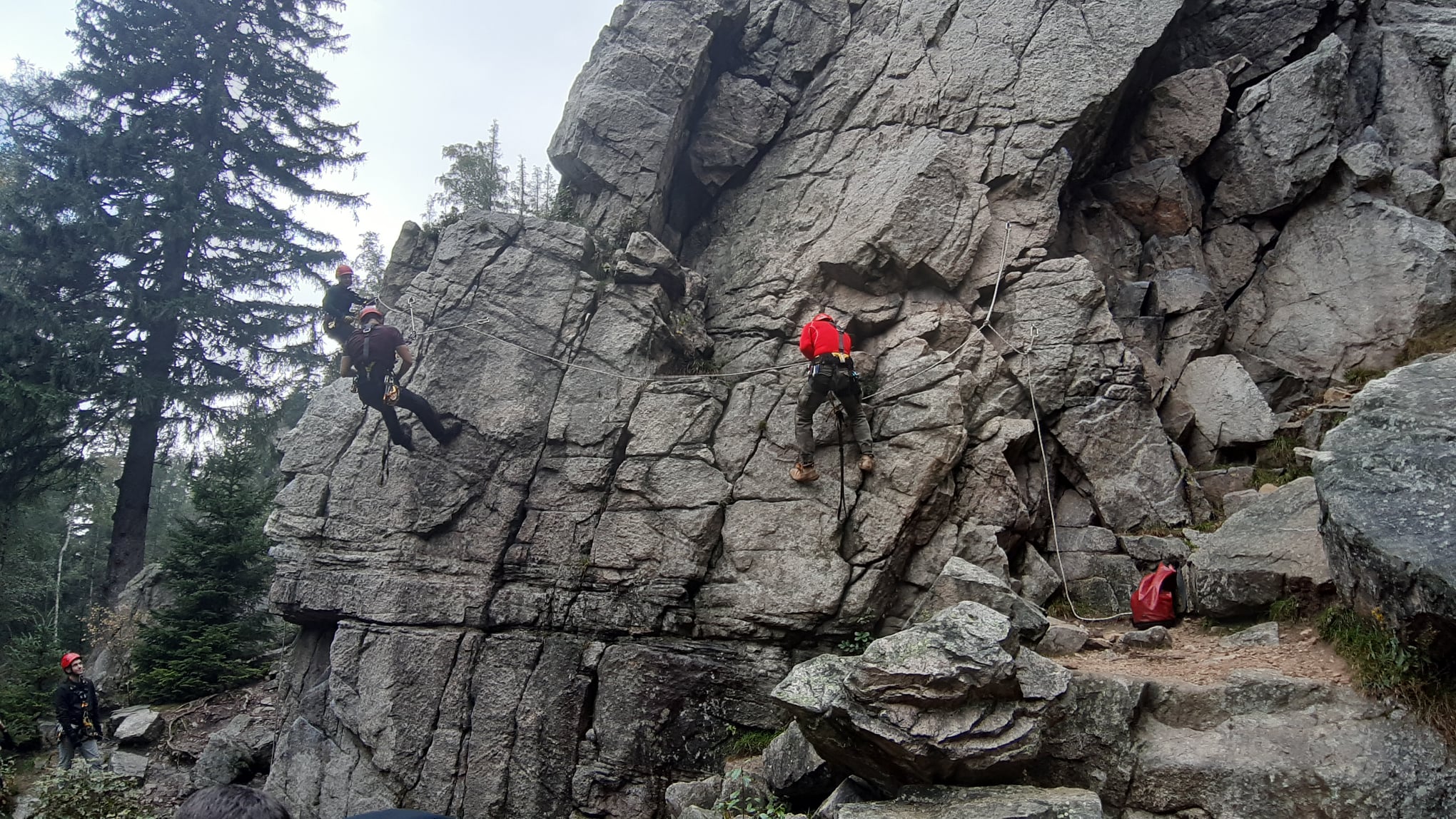 - doskonalenie pokonywania trawersów ścian skalnych w technice linowej,