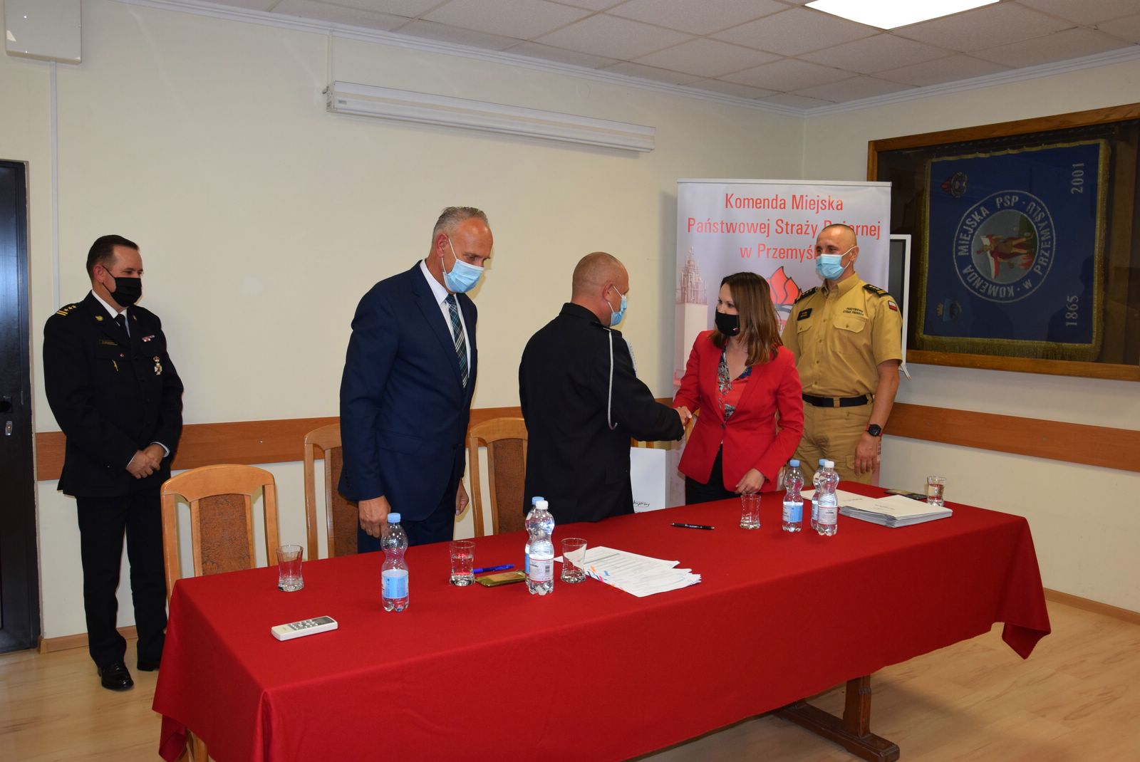 30 sierpnia 2021 r. w Komendzie Miejskiej Państwowej Straży Pożarnej w Przemyślu zostały podpisane i przekazane umowy na zakup sprzętu i wyposażenia dla jednostek Ochotniczych Straży Pożarnych w ramach programu „Mały Strażak”.
