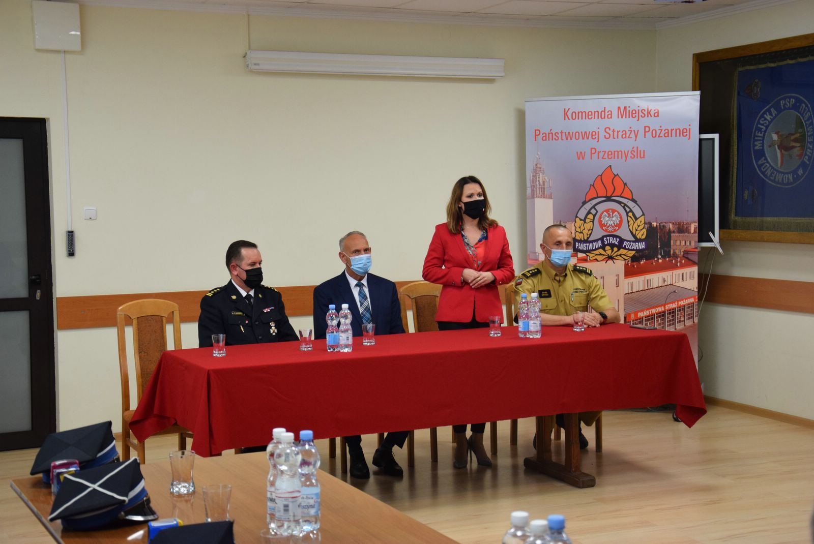 W uroczystym podpisaniu umów uczestniczyli: Pani Anna Schmidt Sekretarz Stanu w Ministerstwie Rodziny i Polityki Społecznej, poseł na sejm RP, st. bryg. Daniel Dryniak zastępca podkarpackiego komendanta wojewódzkiego PSP, Pan Adam Skiba Prezes Zarządu Wojewódzkiego Funduszu Ochrony Środowiska i Gospodarki Wodnej w Rzeszowie oraz st. bryg. Bogusław Szczurko komendant miejski PSP w Przemyślu.