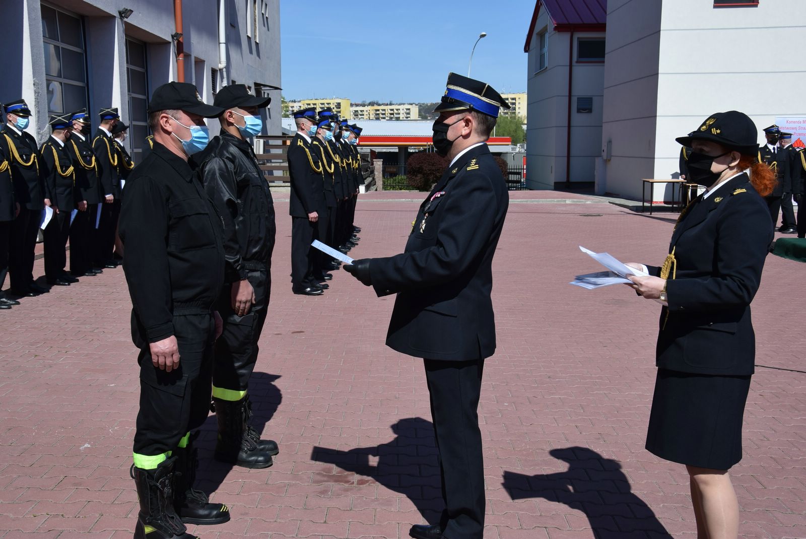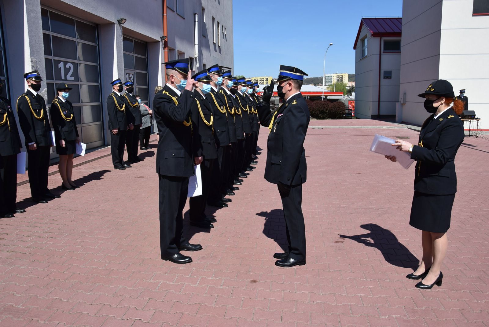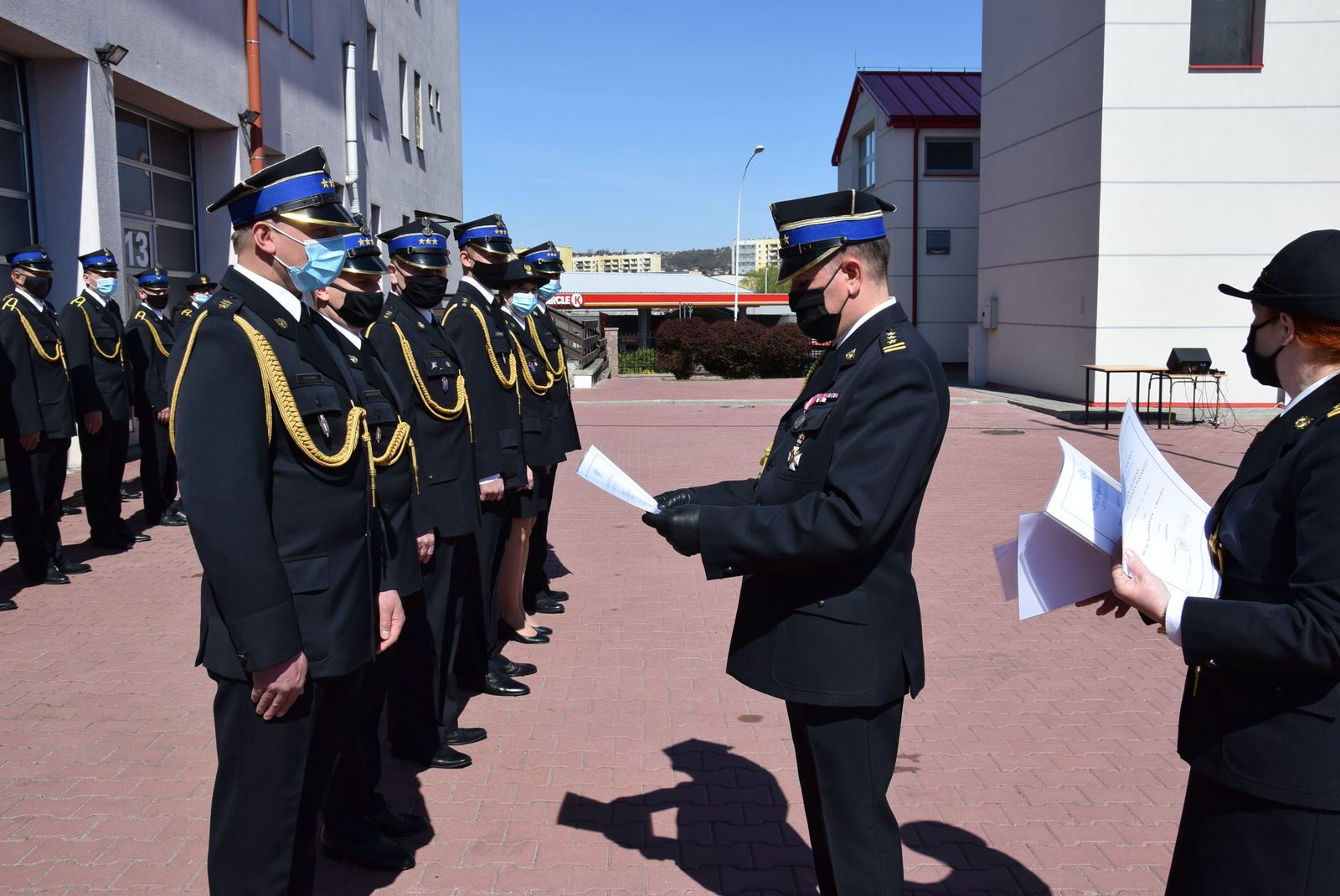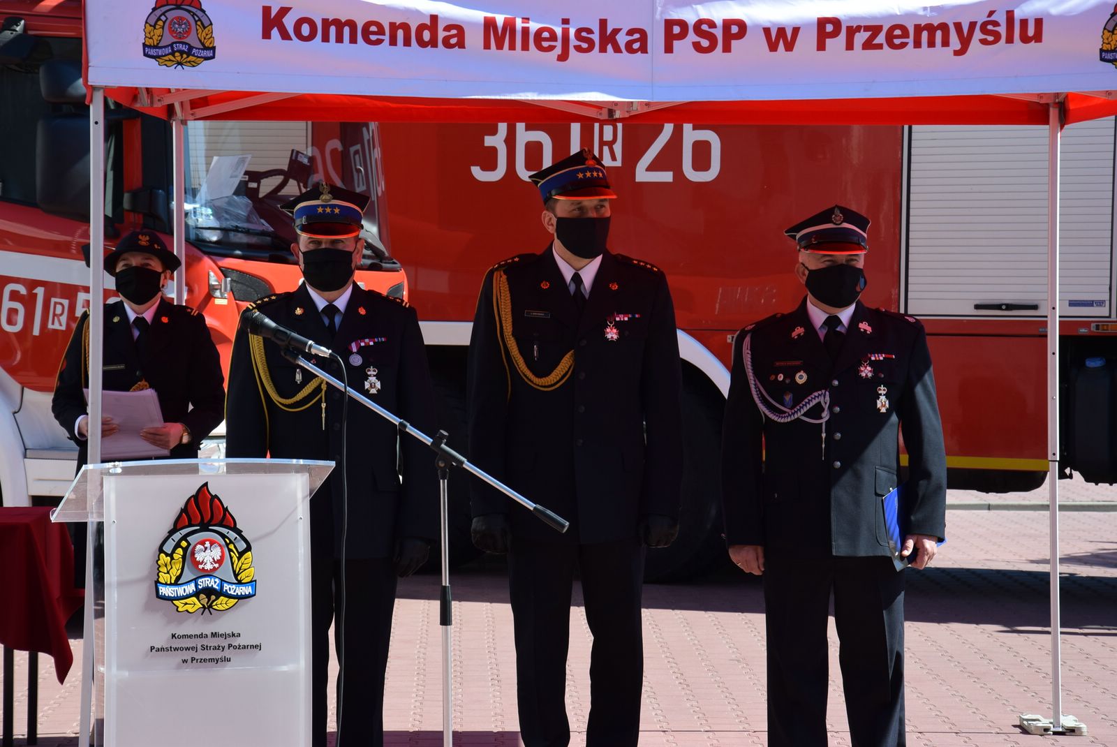 Podczas uroczystości zostały odczytane wyciągi z rozkazów personalnych o nadaniu wyższych stopni służbowych dla funkcjonariuszy z Komendy Miejskiej PSP w Przemyślu.